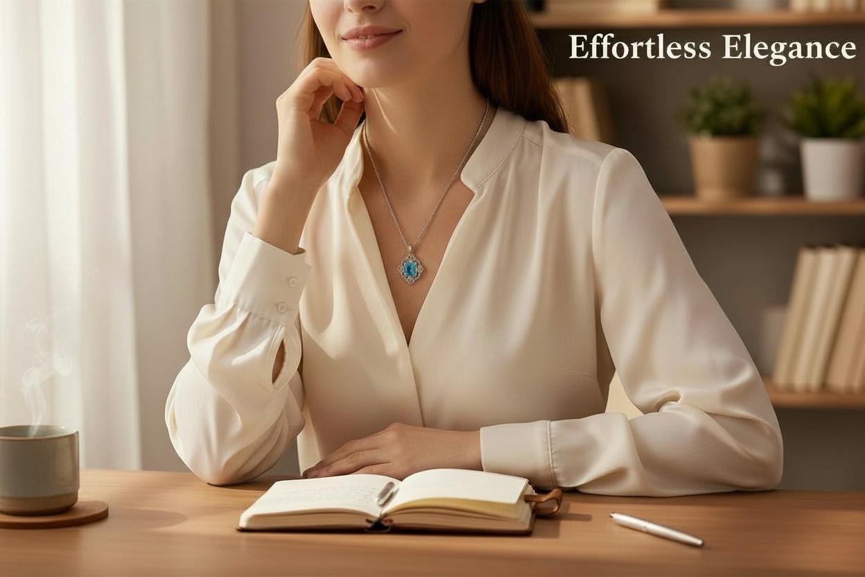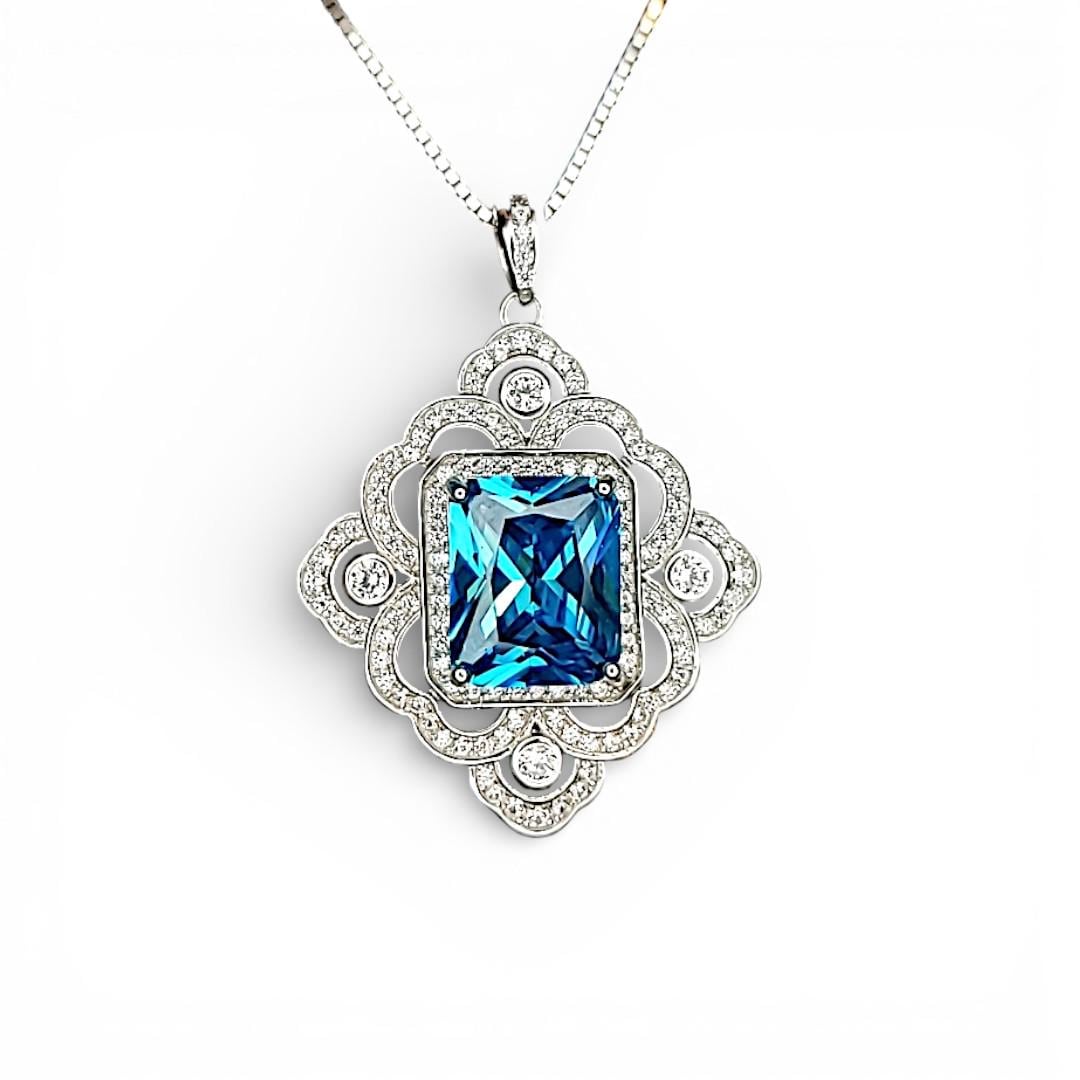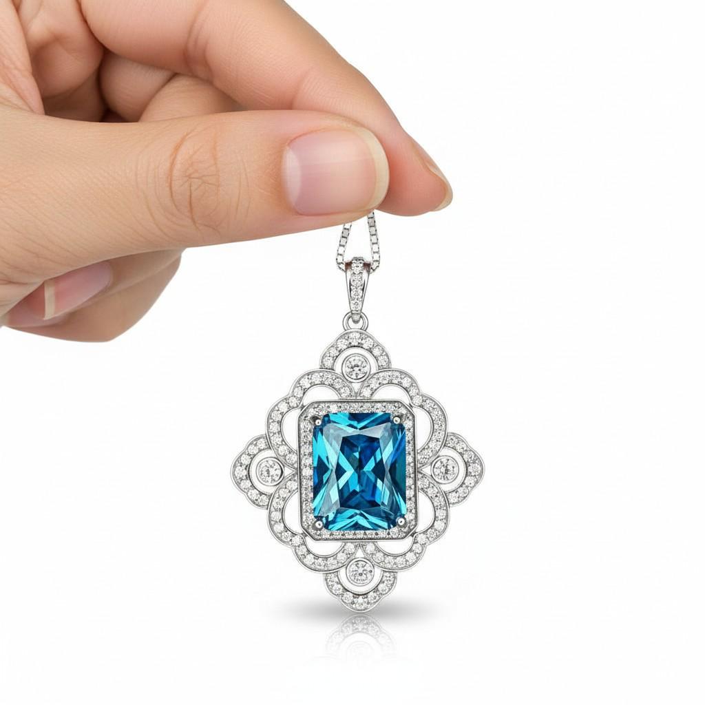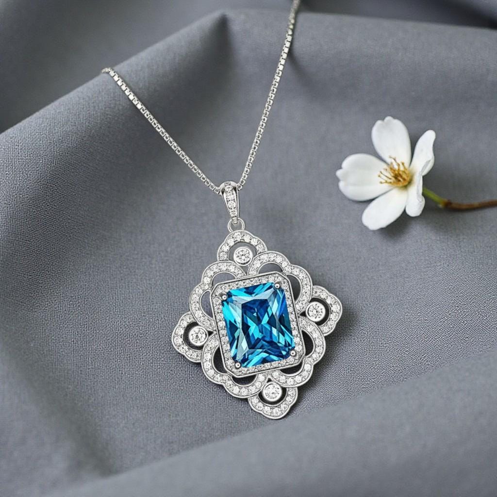 Swiss Blue Topaz necklace Flower of Prosperity Style