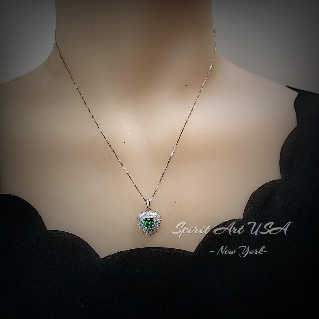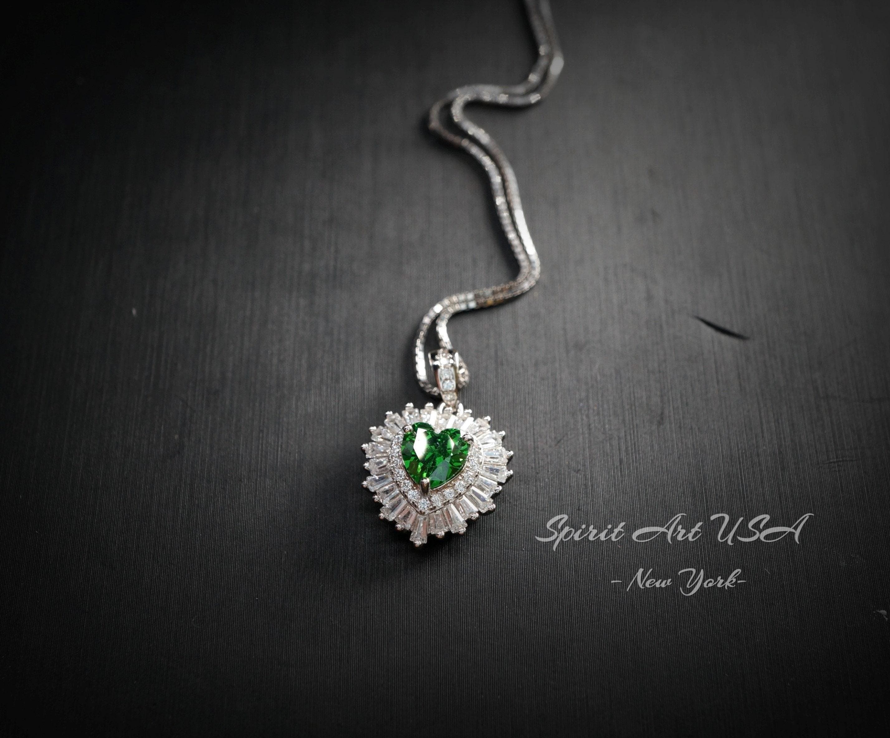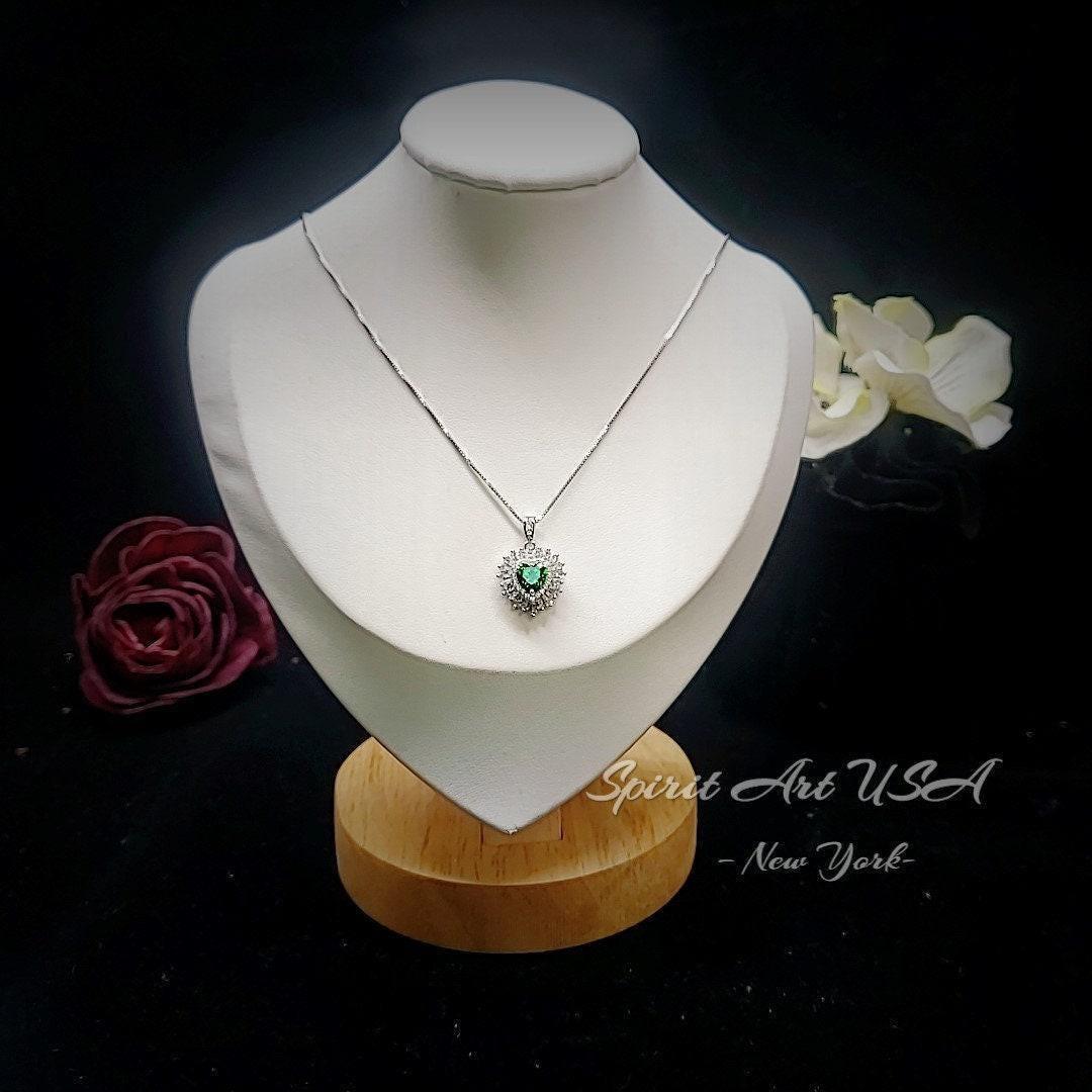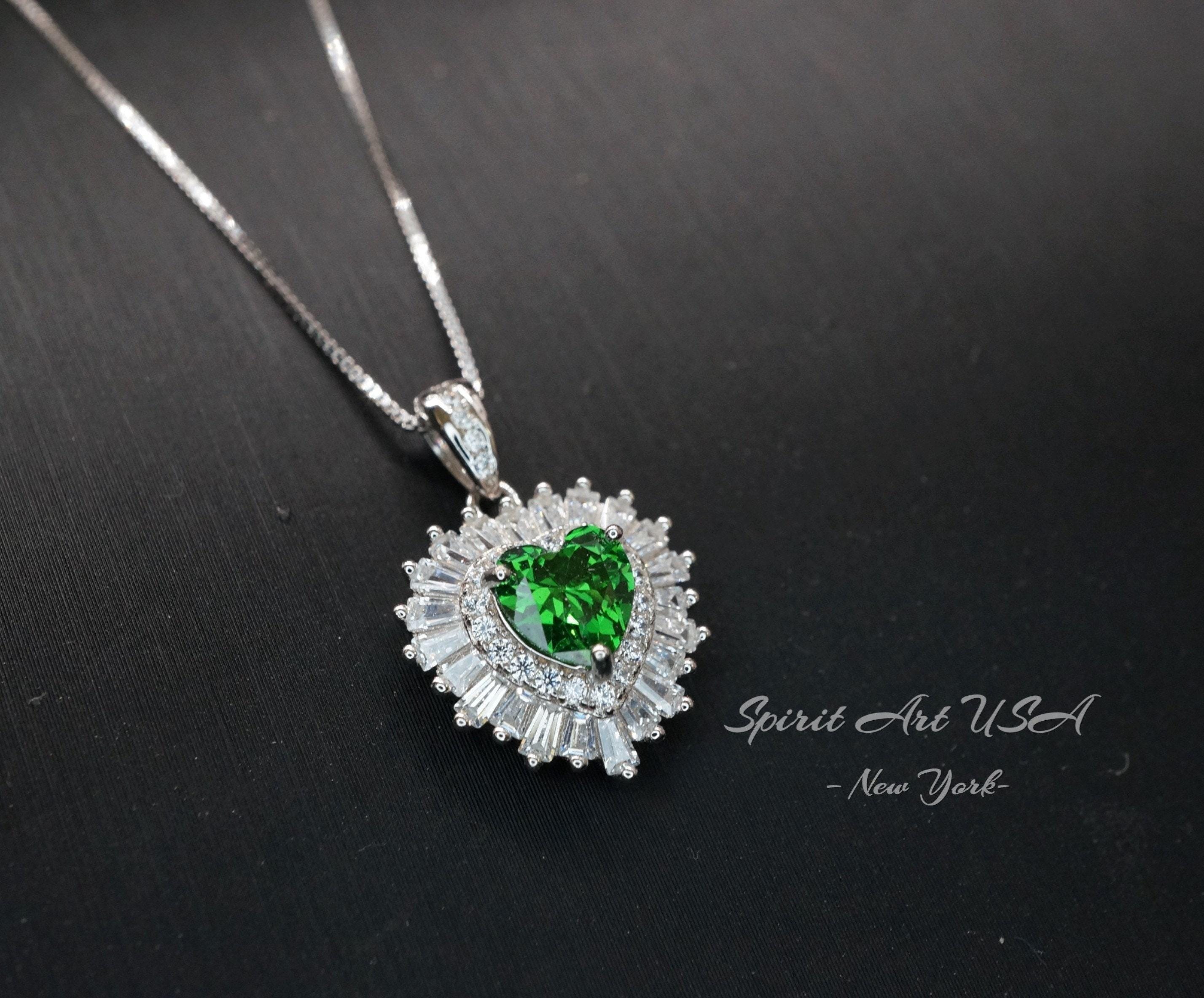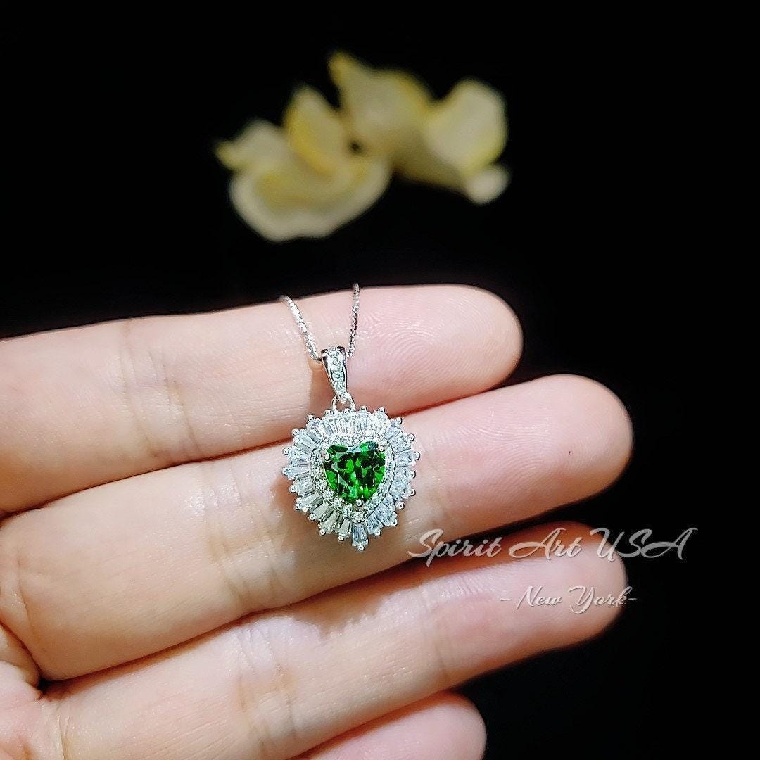 Dainty double Halo Heart Emerald Gemstone Jewelry