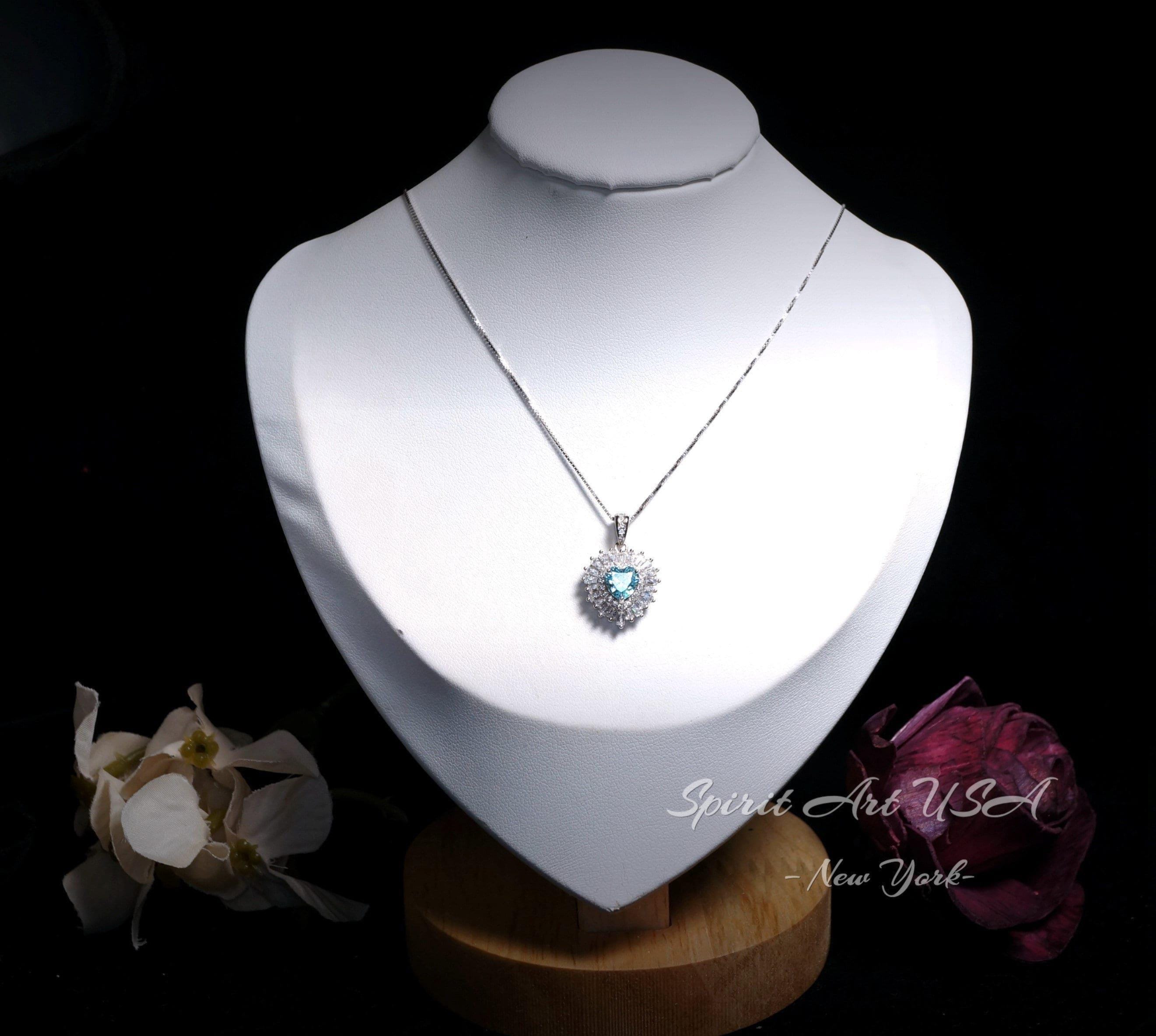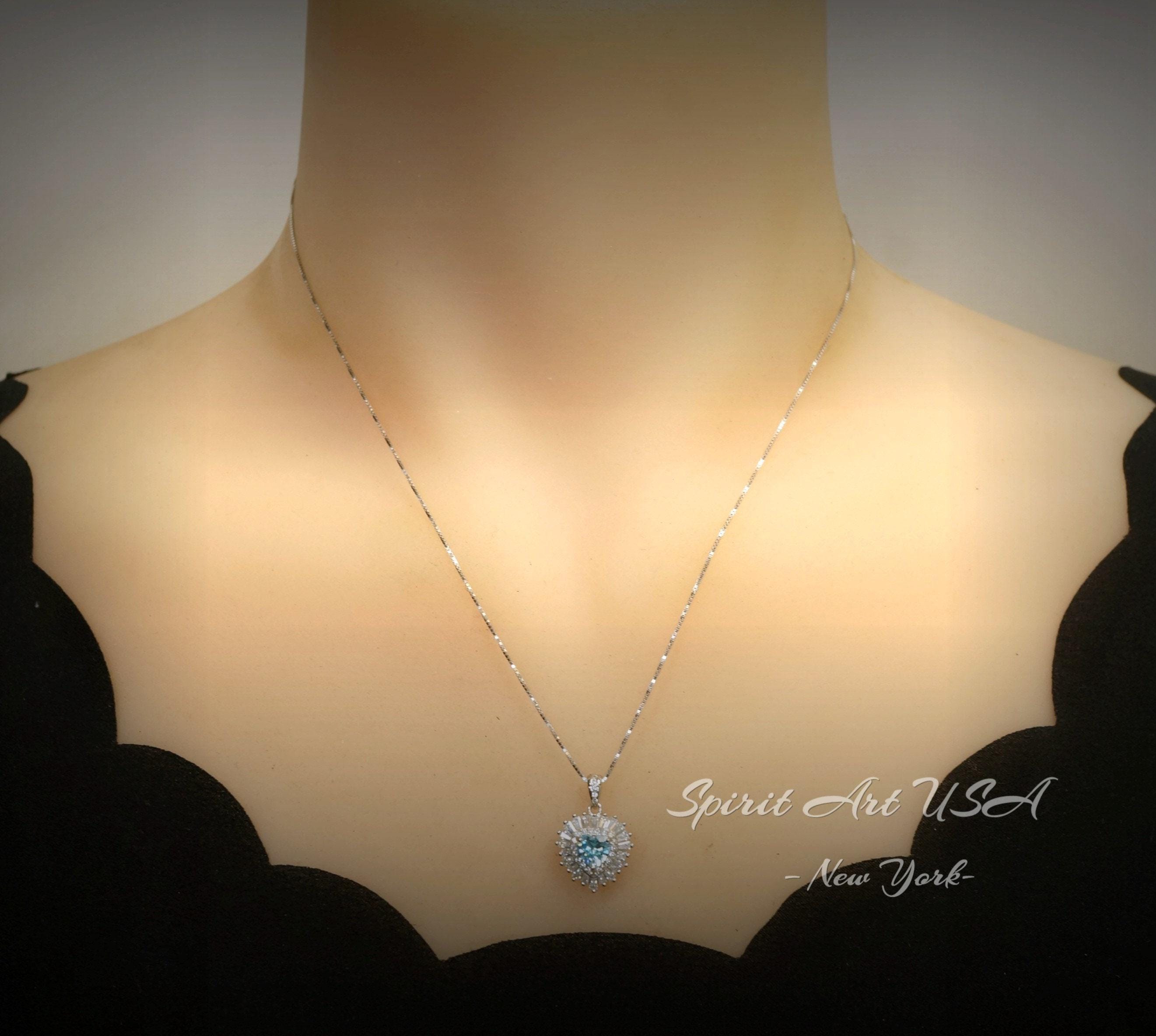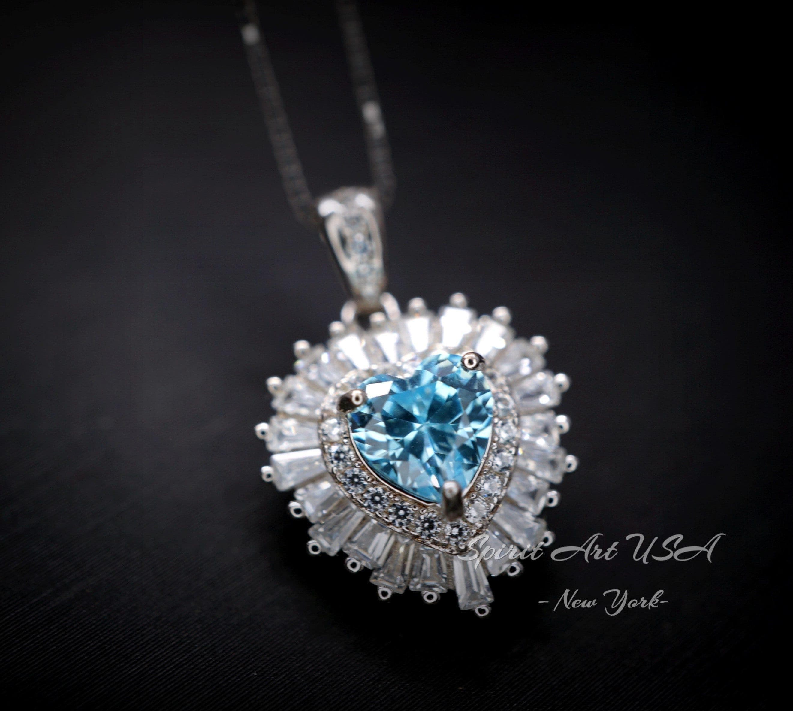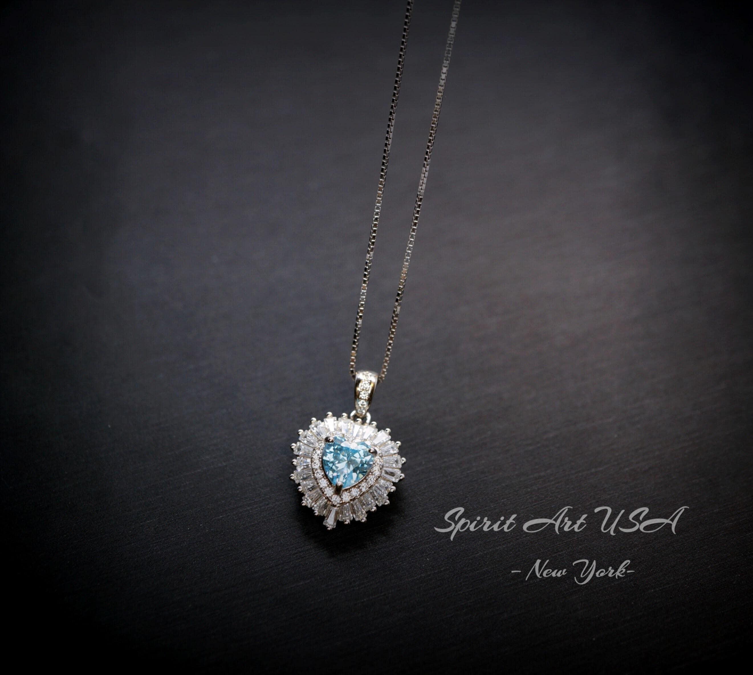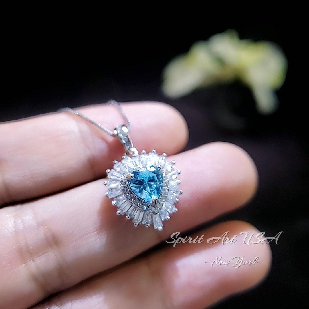 Tiny Shinning Halo Aquamarine Heart Necklace