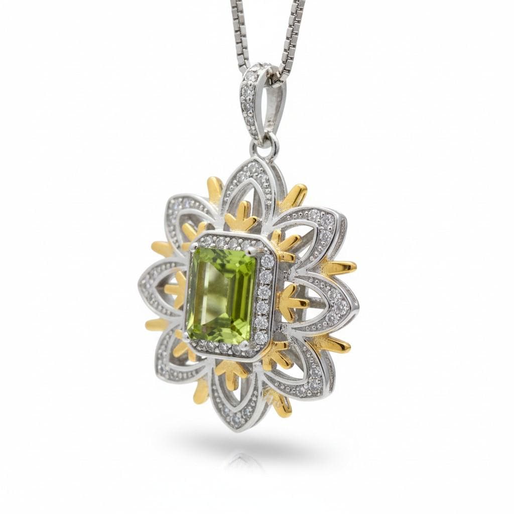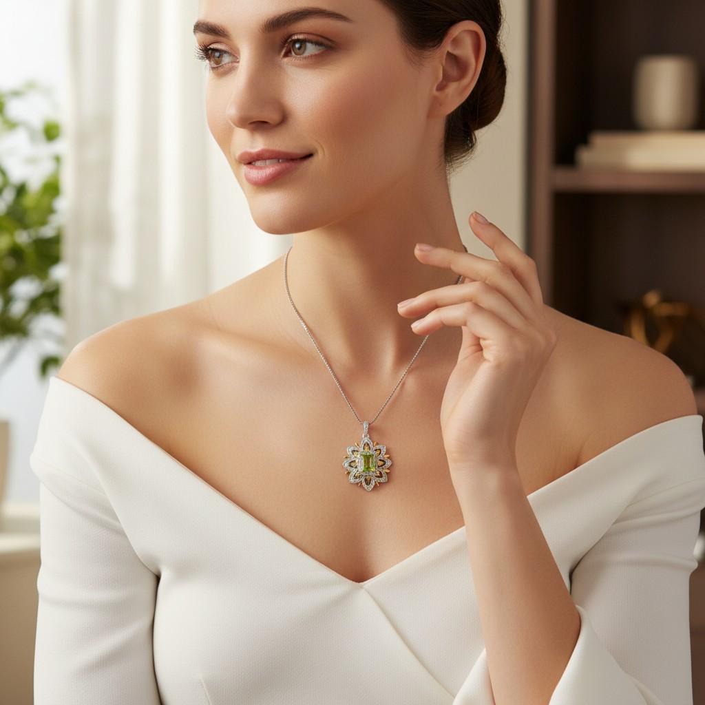 Natural Green Peridot Jewelry 8 Petal spirit flower Style
