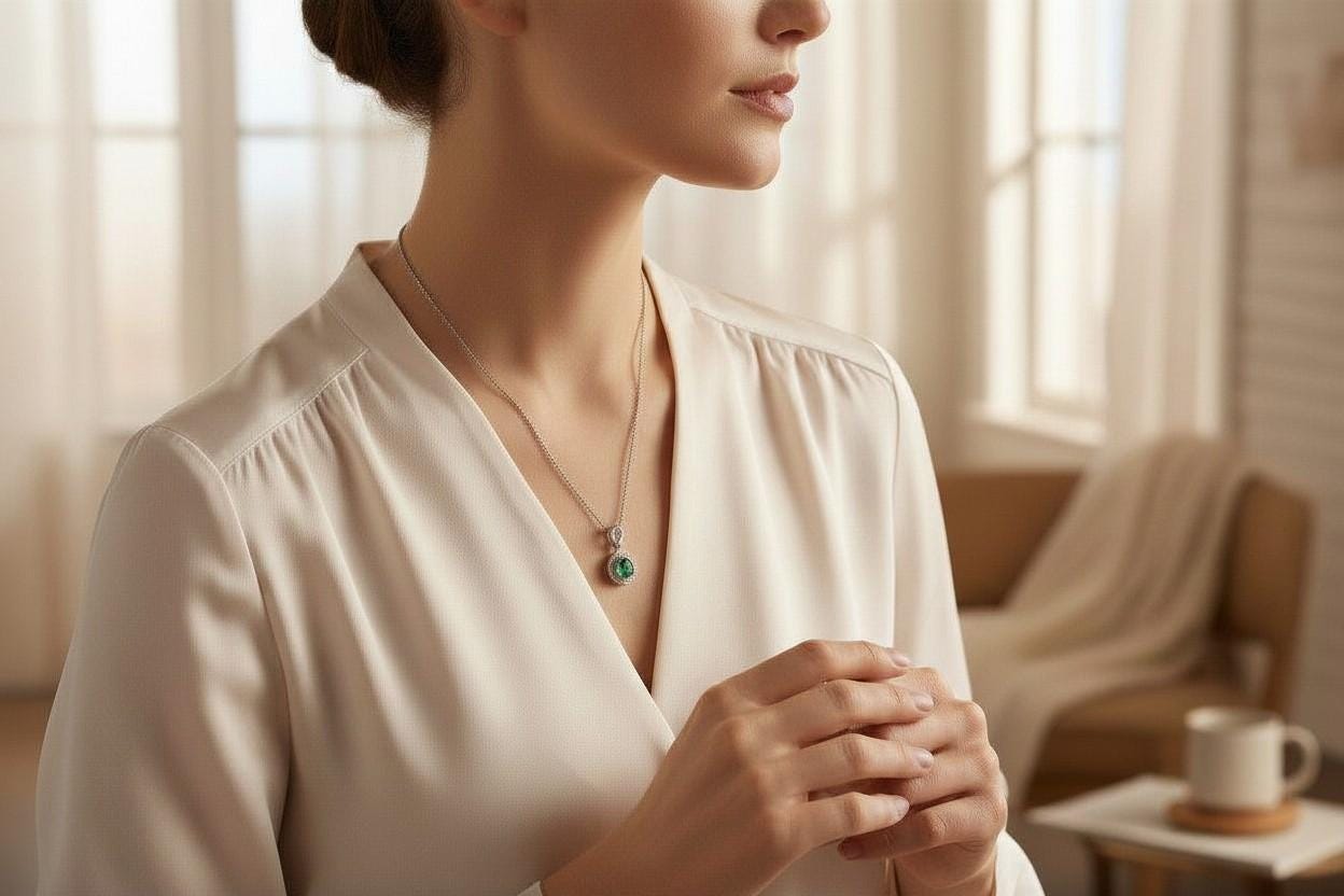 Main Stone: Lab created Green Diopside Emerald Gemstone Round Brilliant Cut