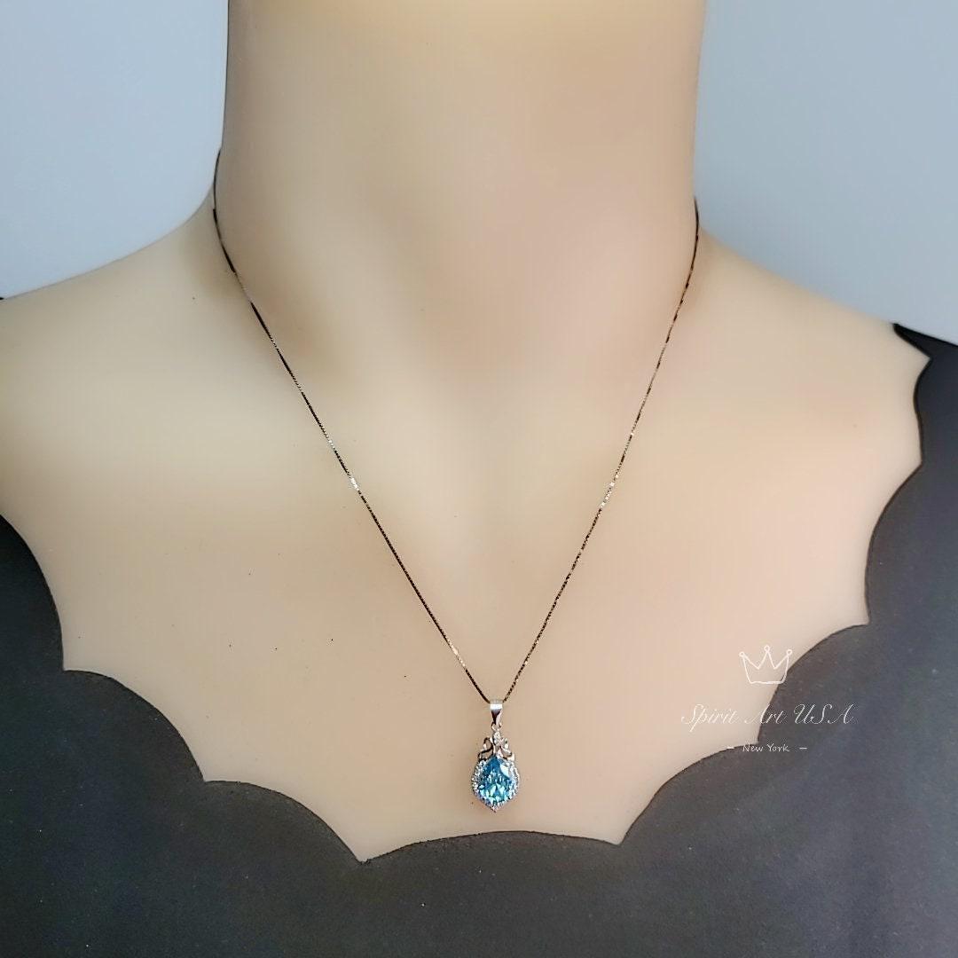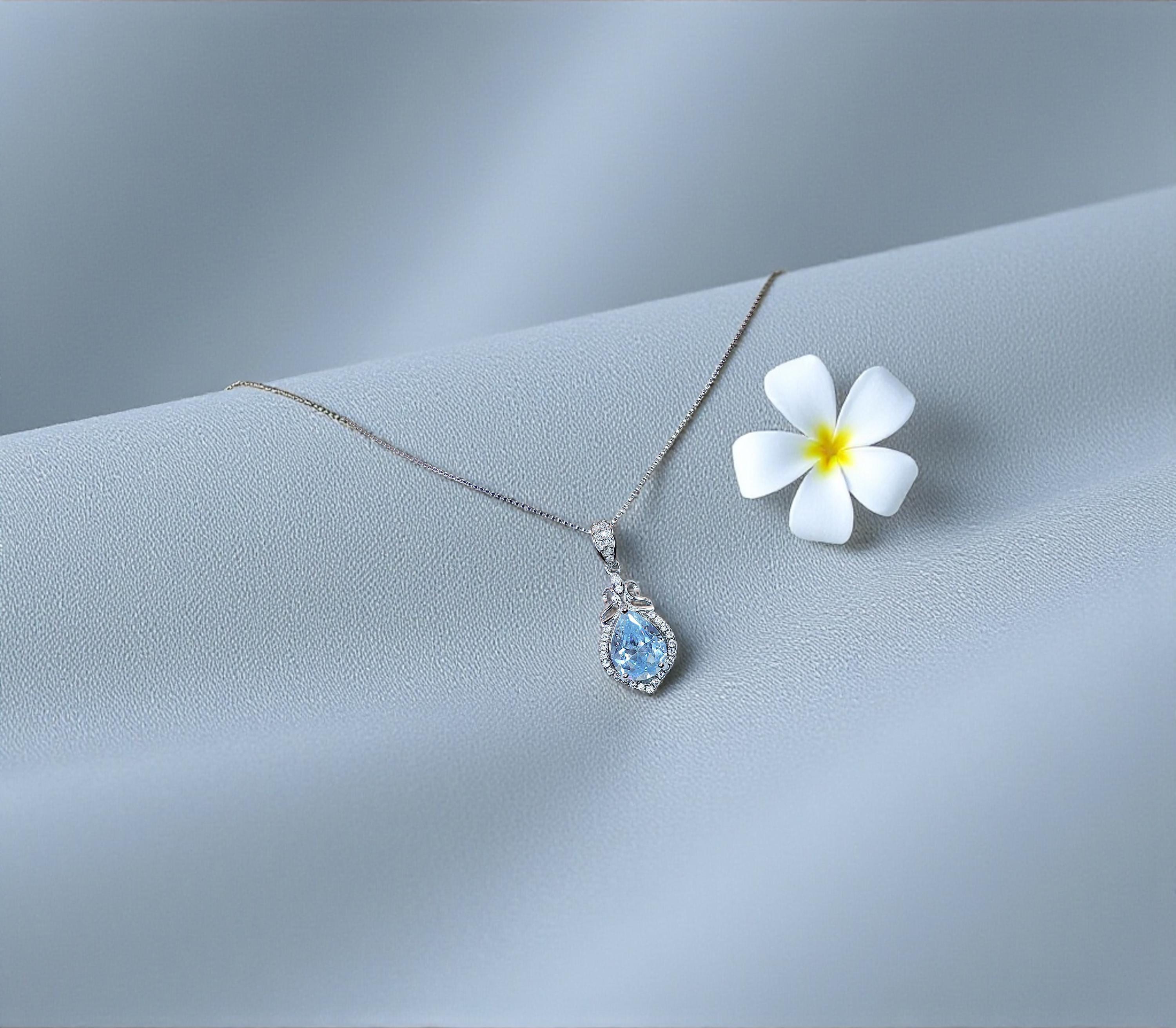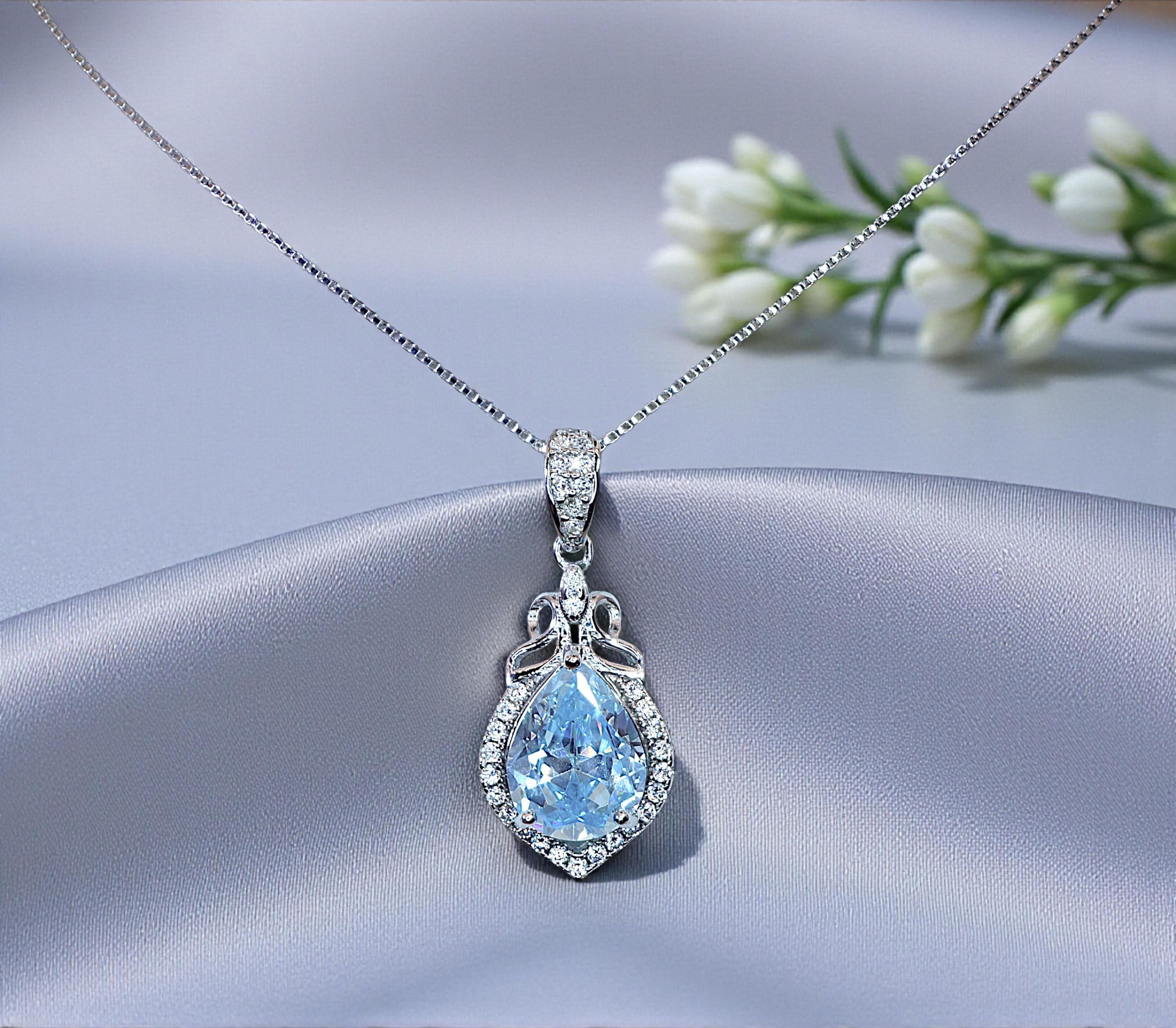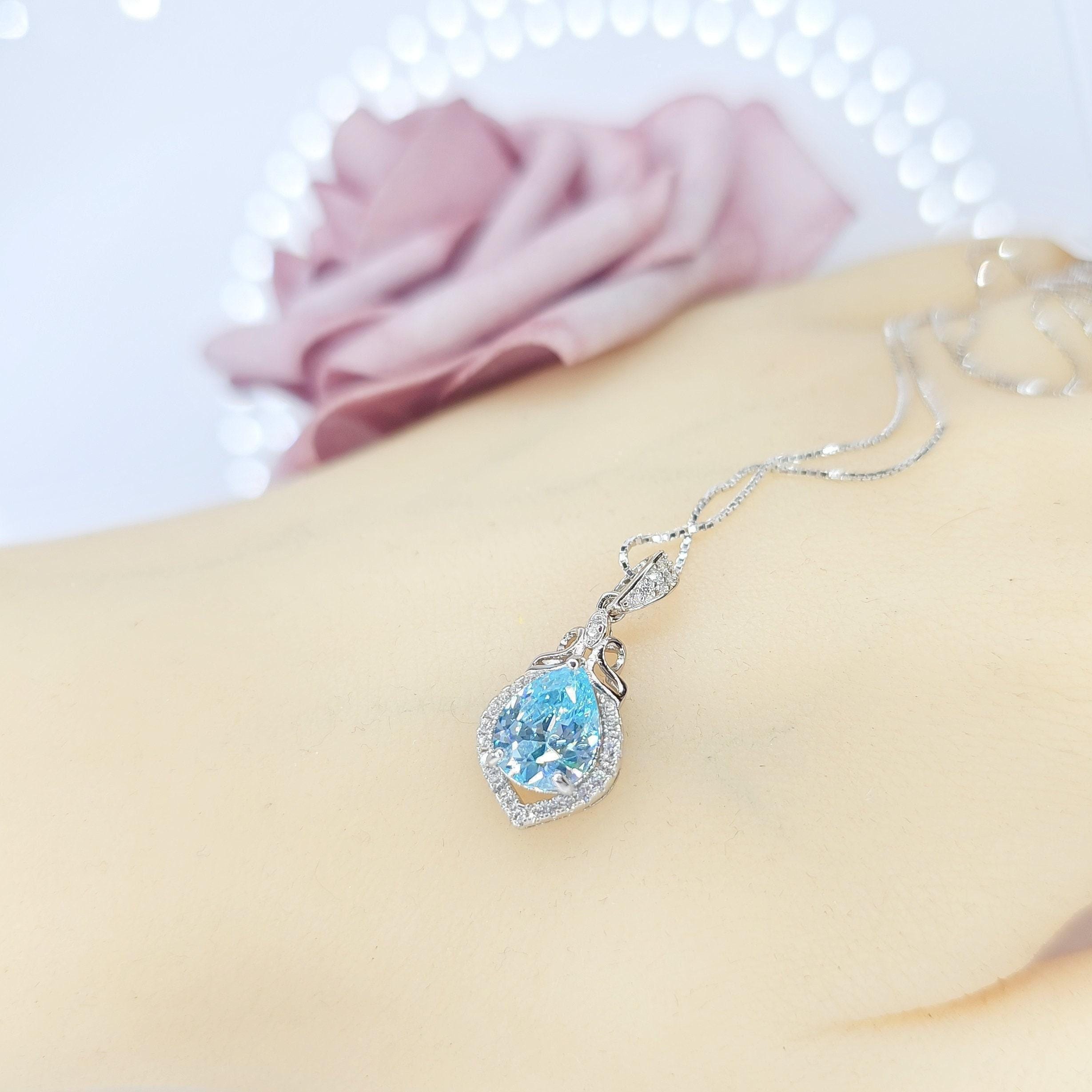 Aquamarine necklace Dainty sterling silver teardrop Style