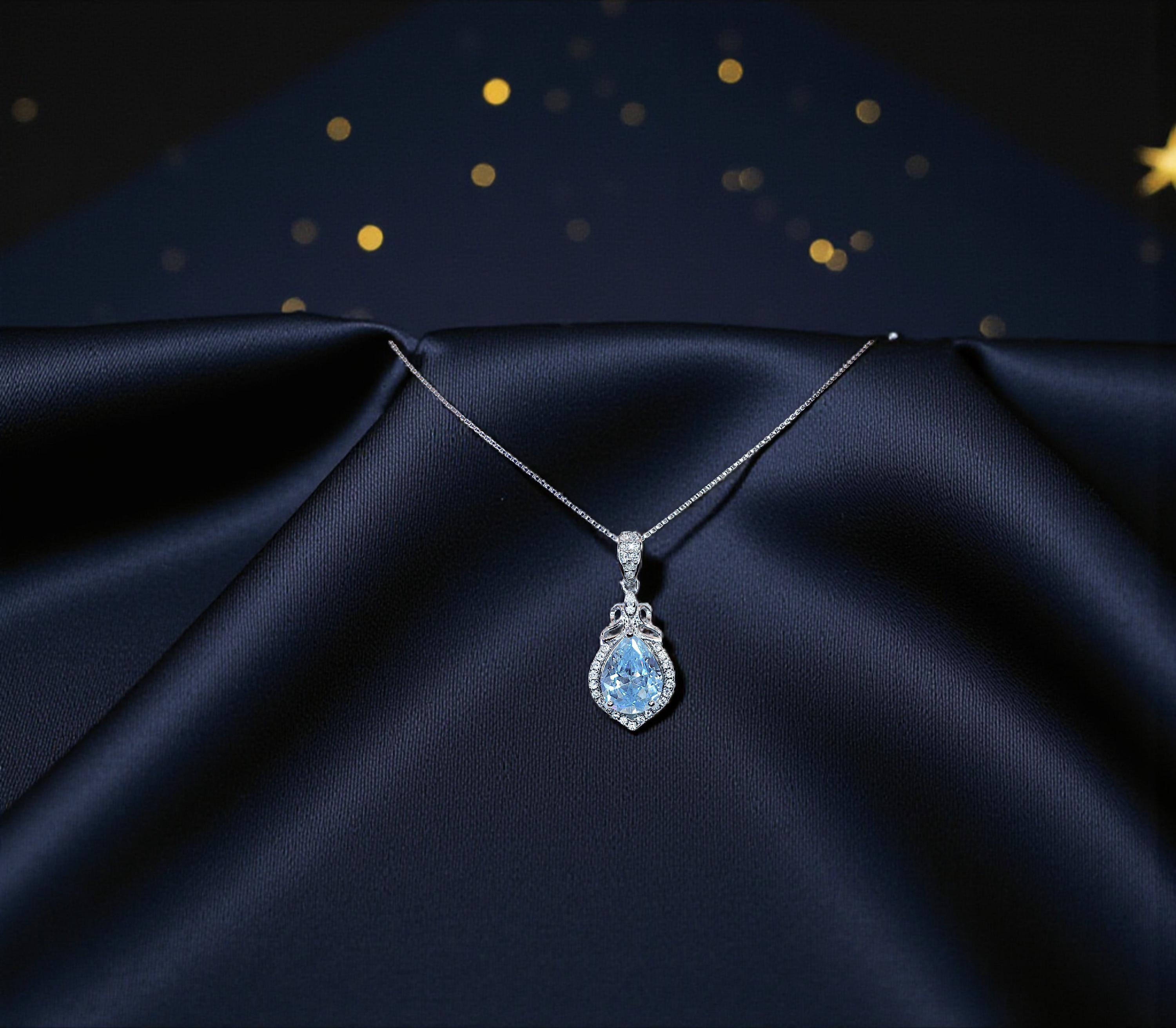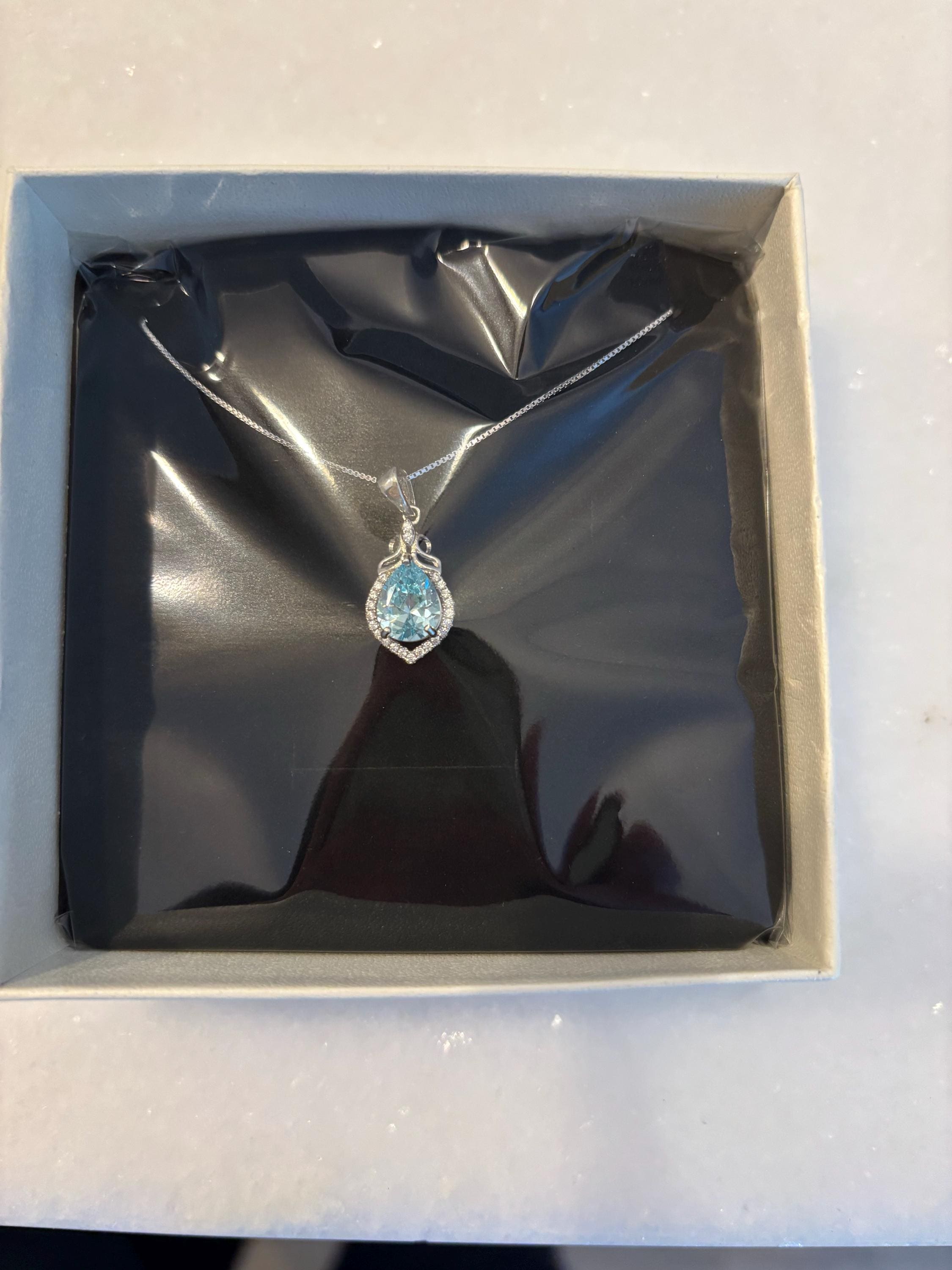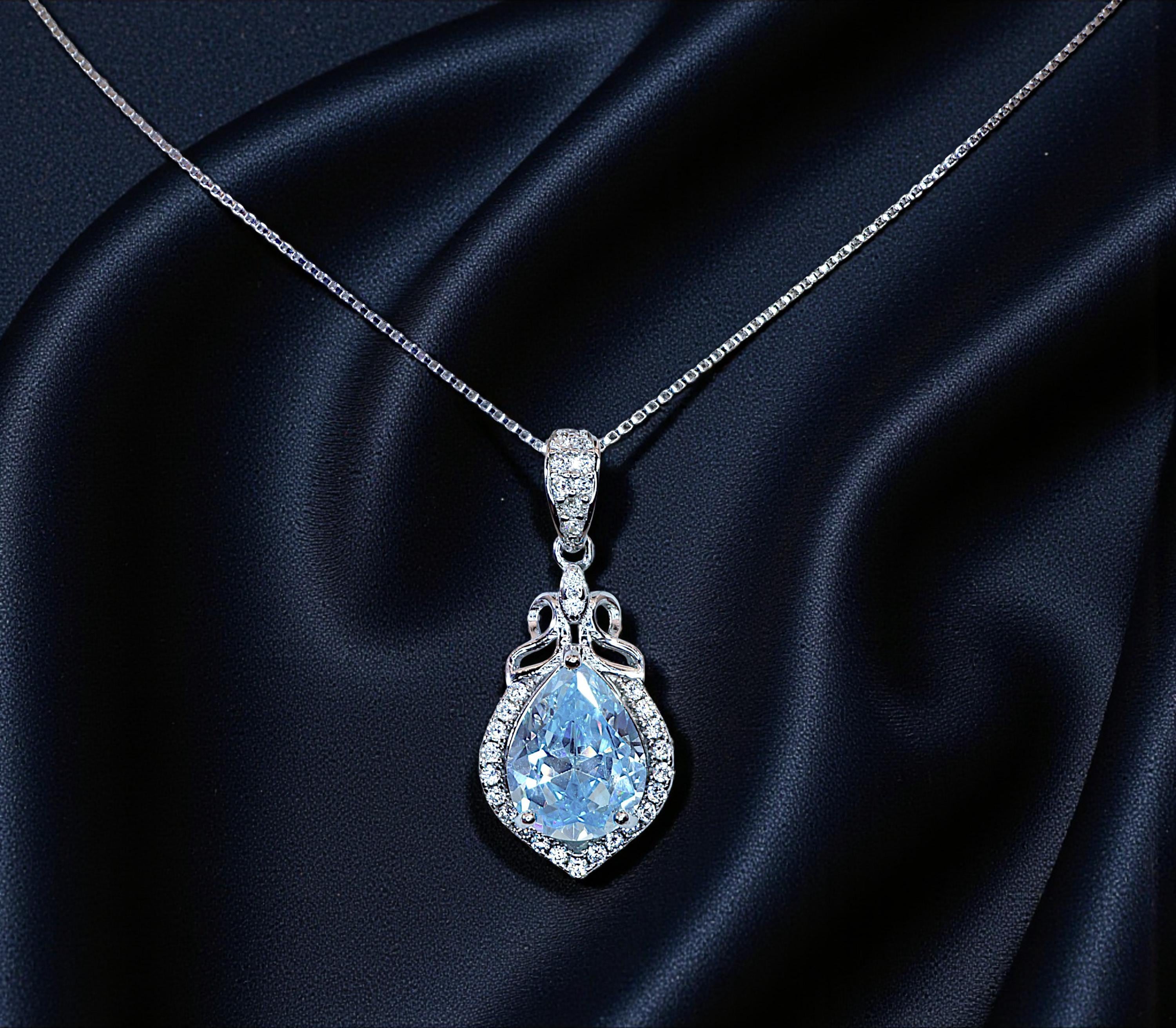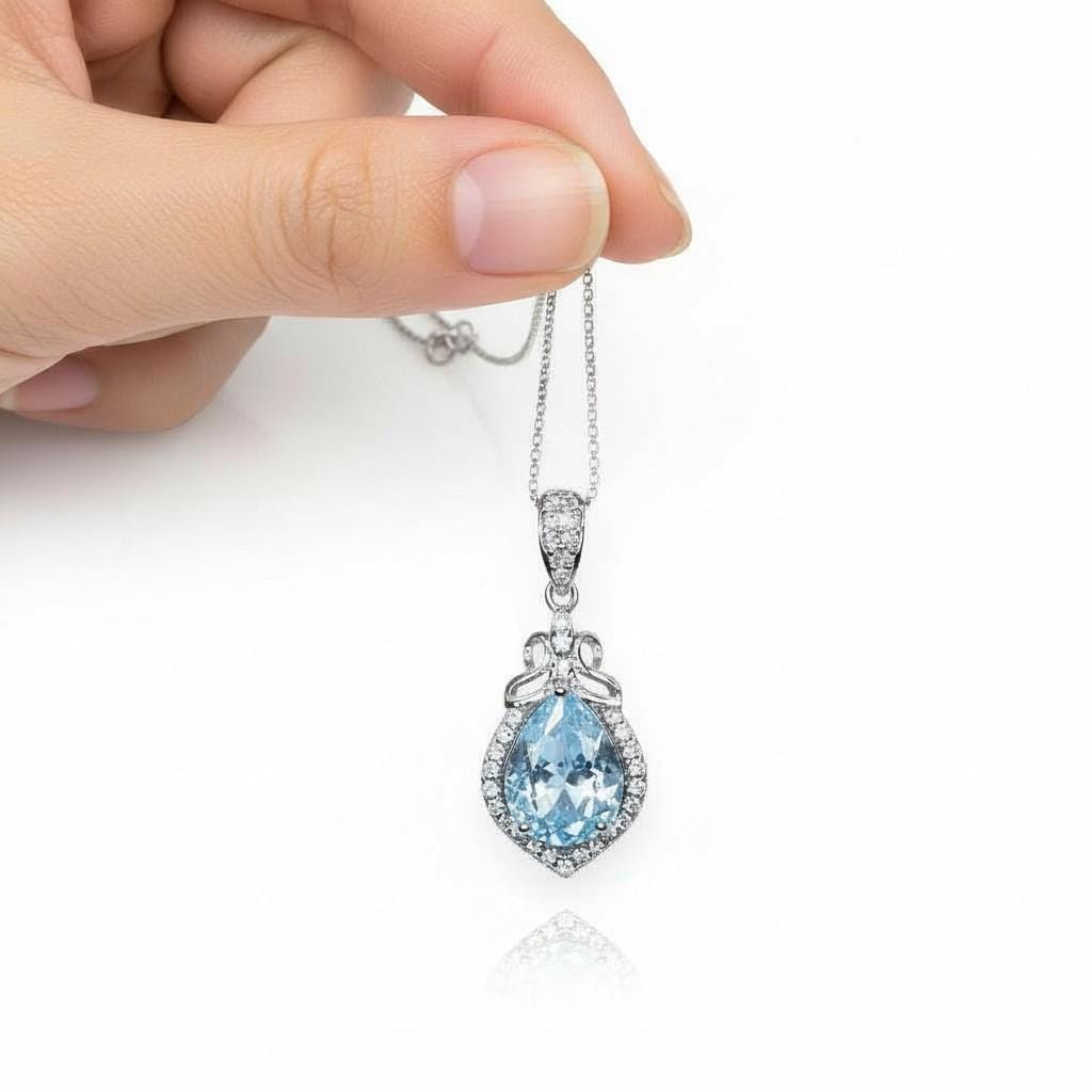 Aquamarine necklace Dainty sterling silver teardrop Style