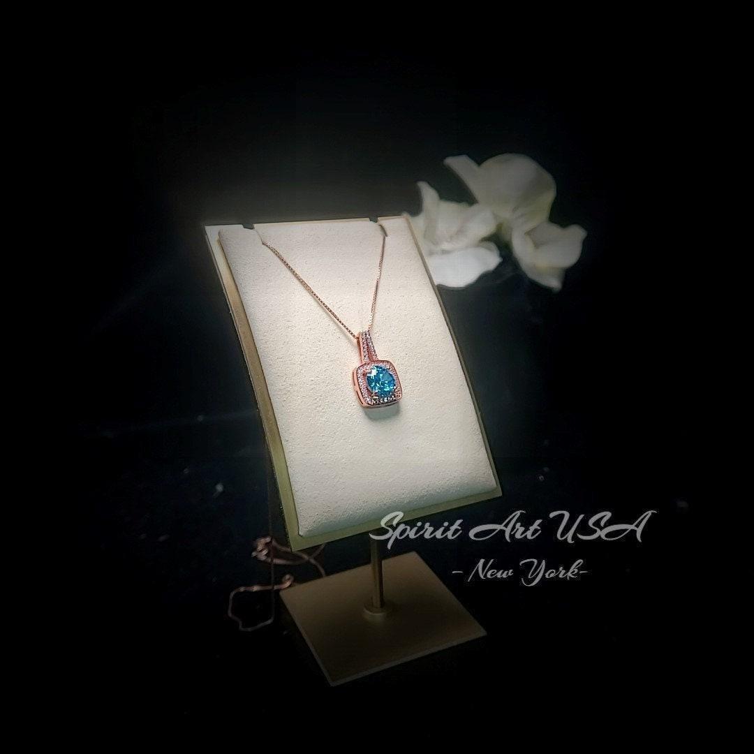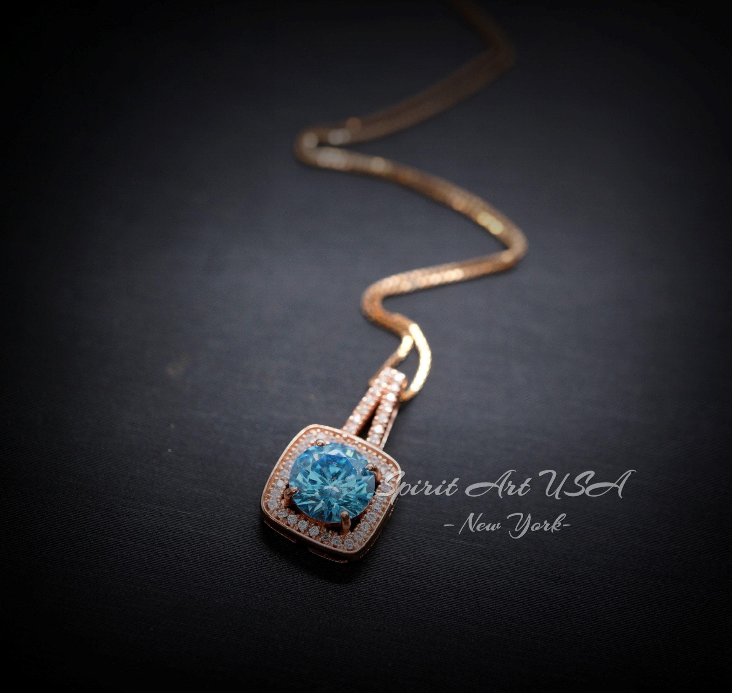 Blue Topaz Jewelry unique Artisan design Rose gold coated sterling silver made