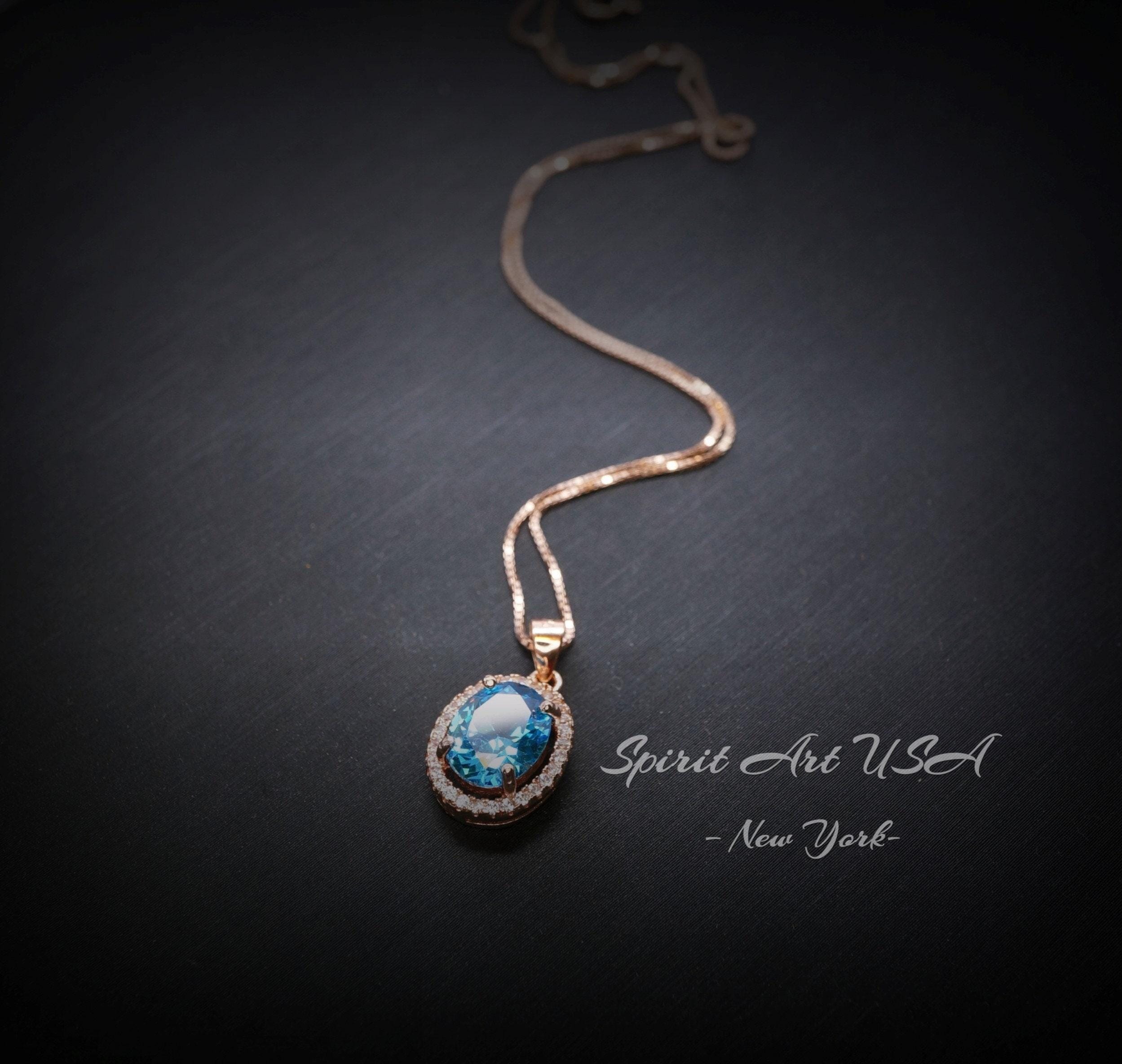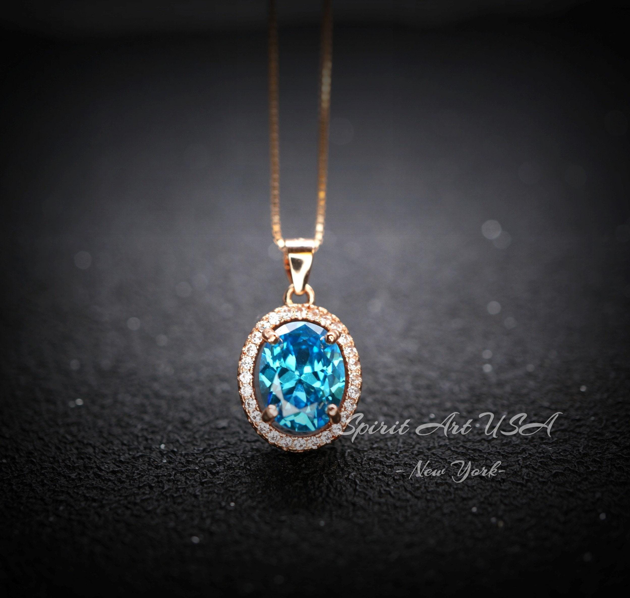 Dainty Blue topaz oval halo Style with Rose gold coated