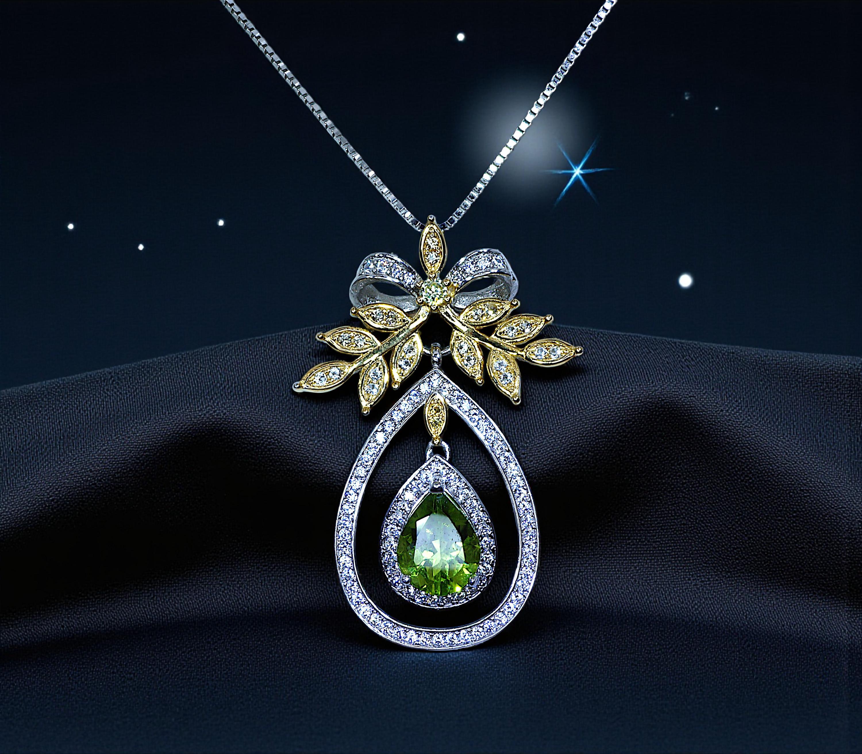 Main Stone: Genuine Peridot Gemstone Hand cut Teardrop 2.5 CT