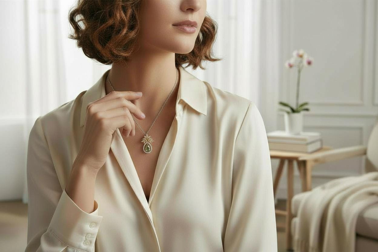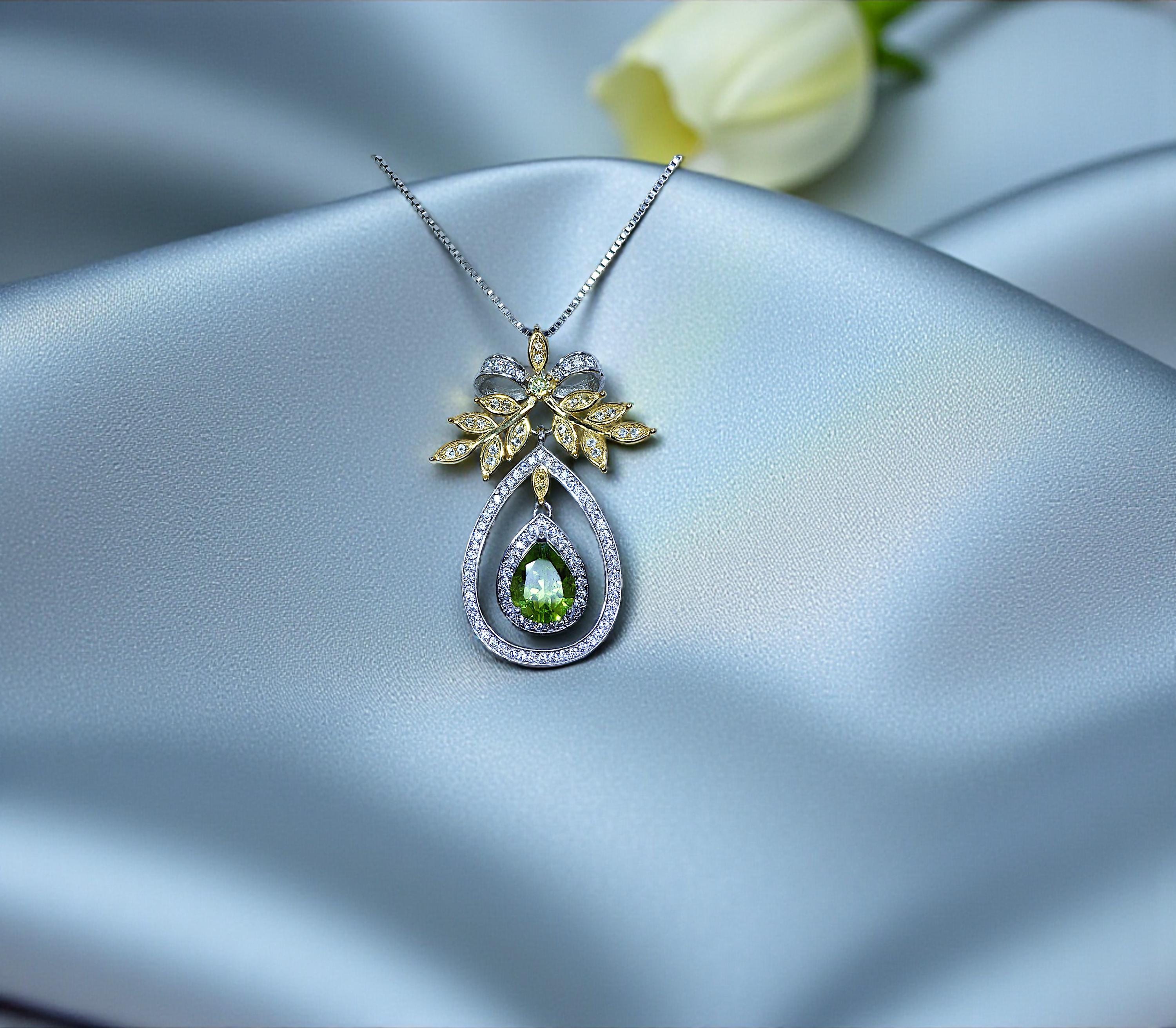 Large Genuine Green Peridot Necklace Teardrop Cut Gold tree of life Style