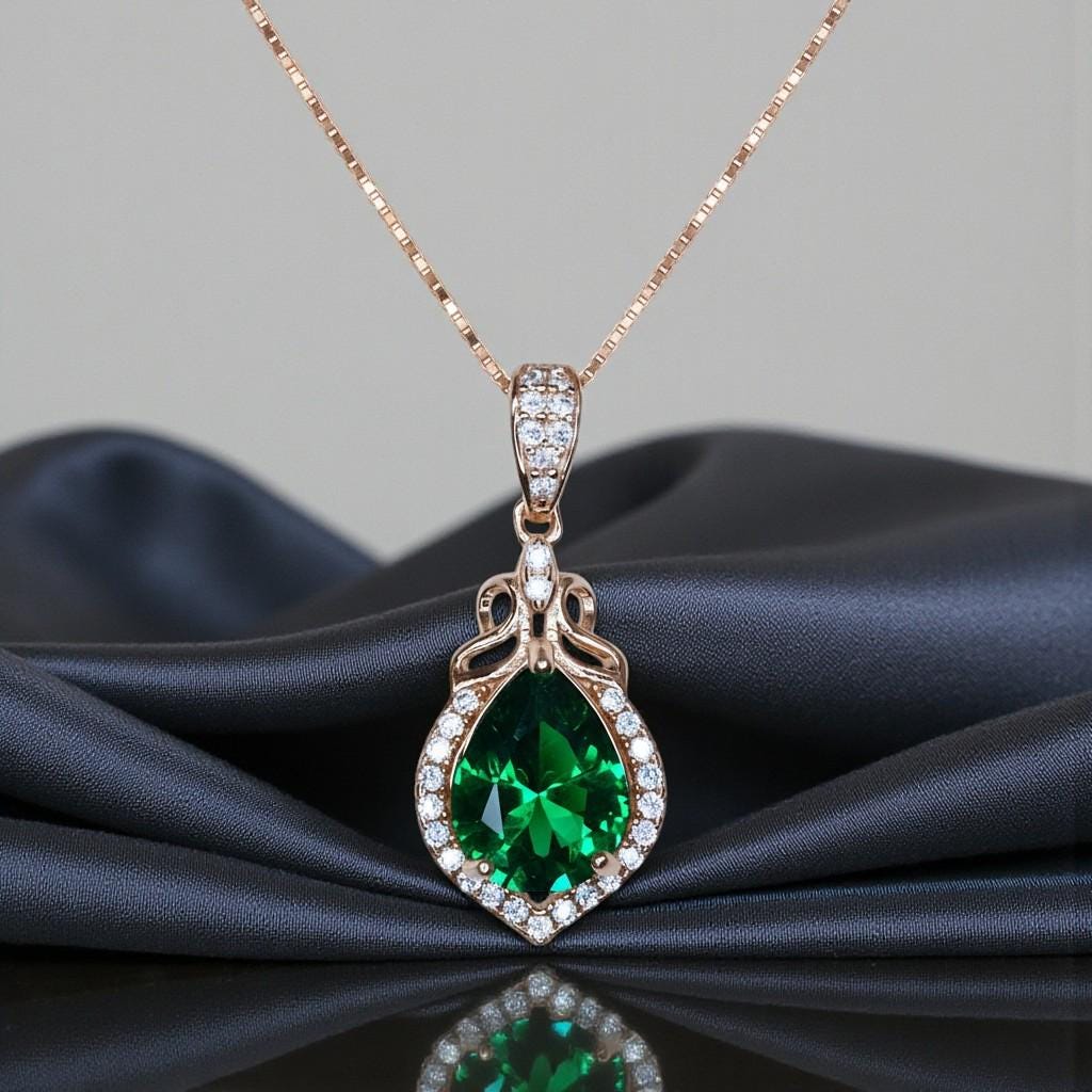 Main Stone: Lab created Green Emerald Gemstone with 2.5 CT