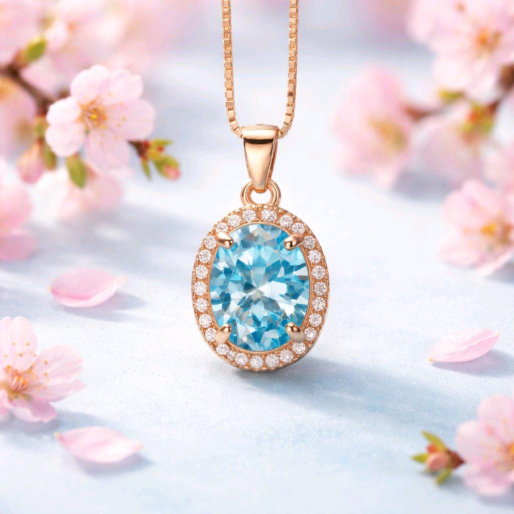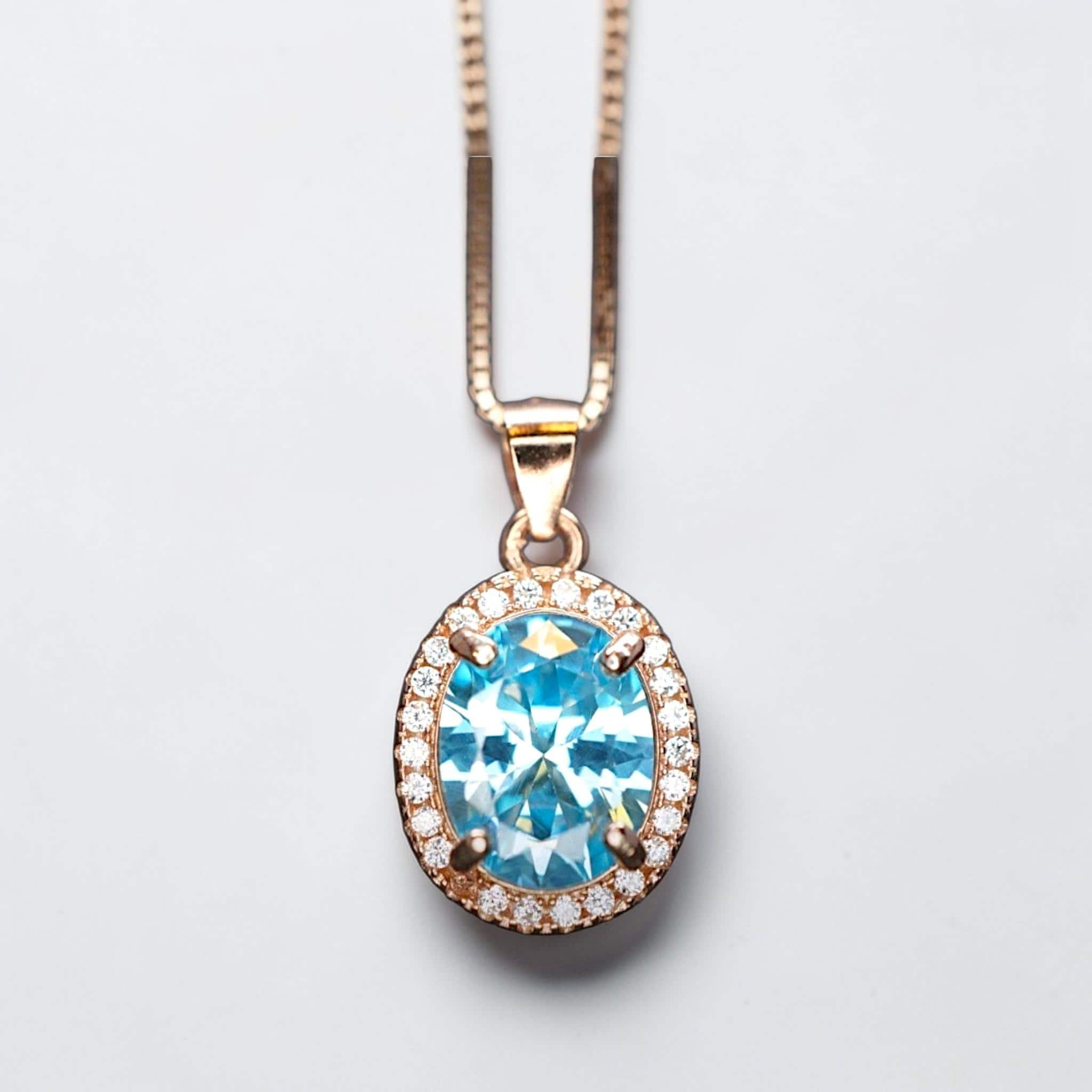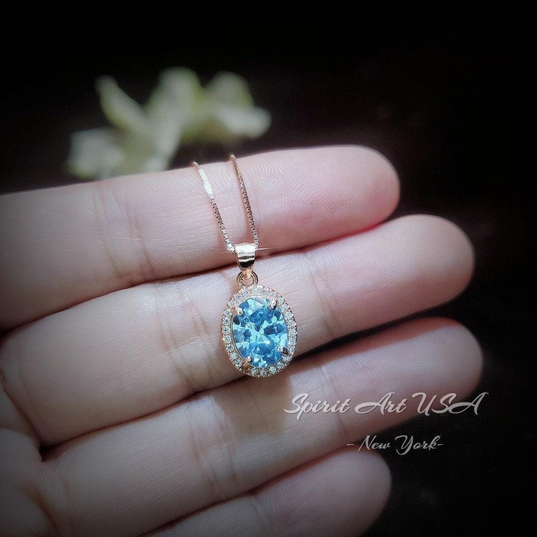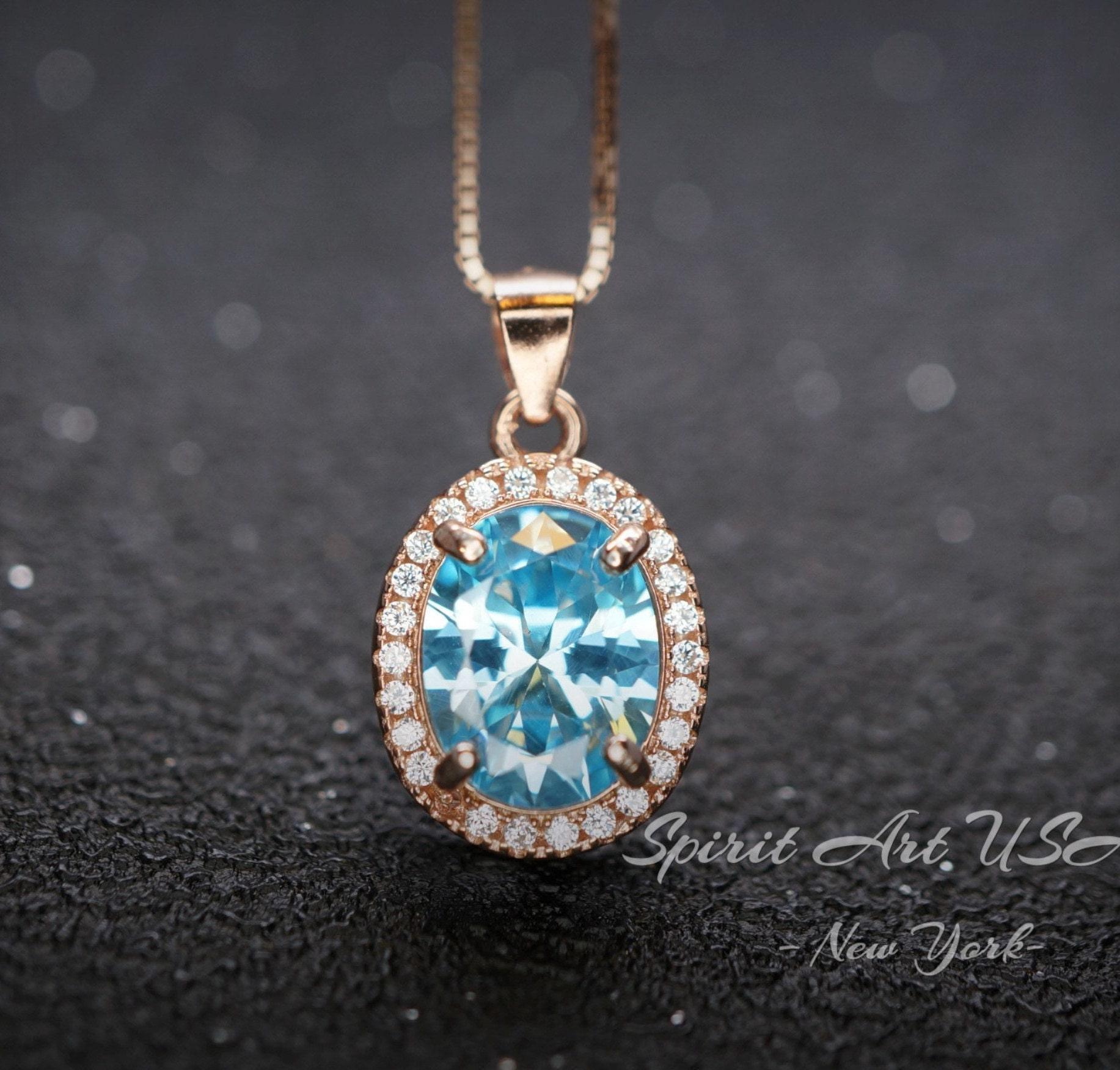 Dainty blue aquamarine Jewelry Rose gold halo style oval cut