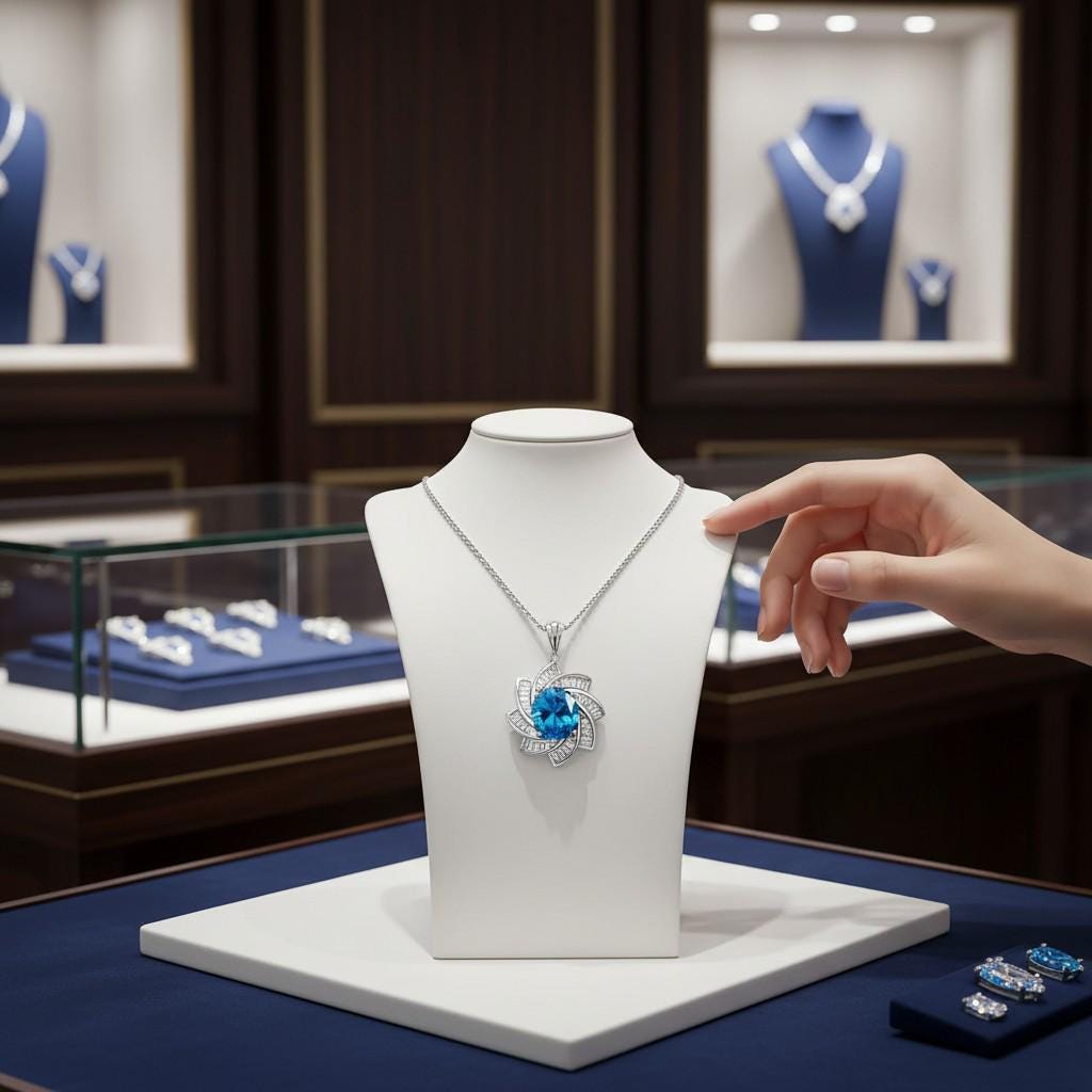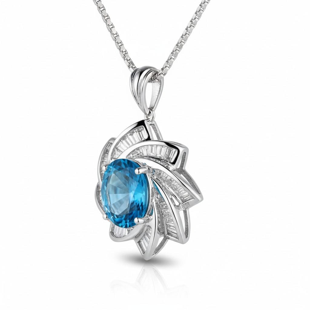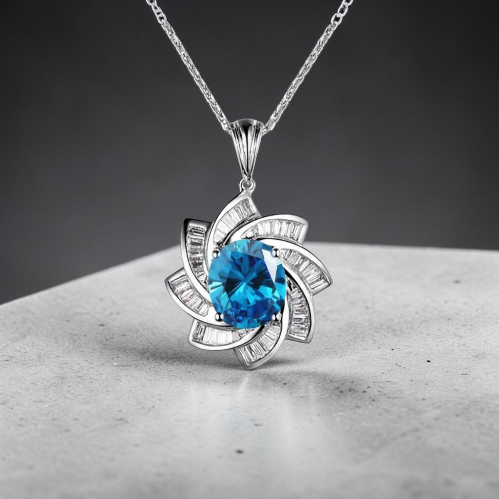 Blue Topaz Necklace - Diamond Milky Way Spiral Pendant - 18KGP White Gold Sterling Silver - 3 CT Galaxy Energy Vortexes Windmill Jewelry