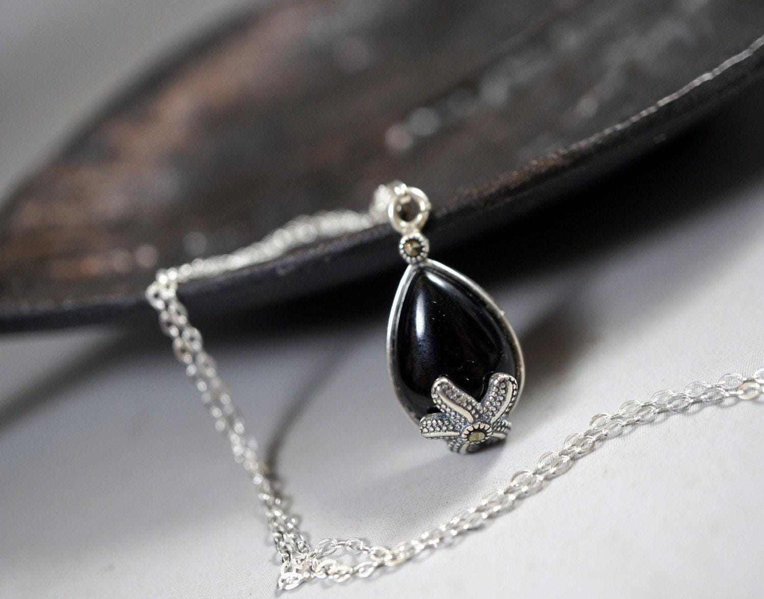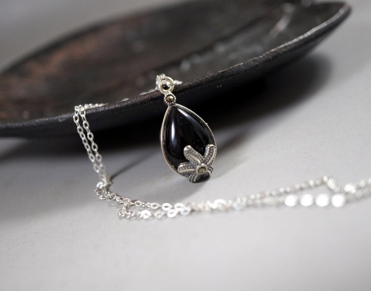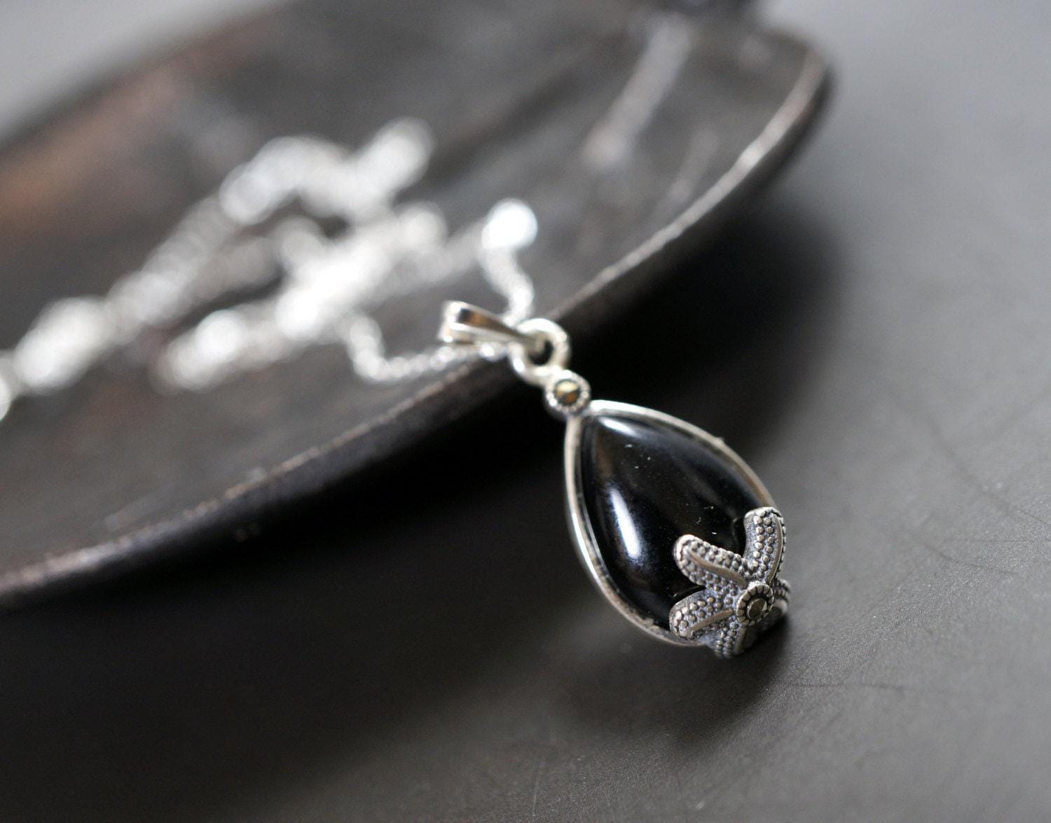 ** Pendant: Natural black onyx decorated with 925 sterling silver bezel.
