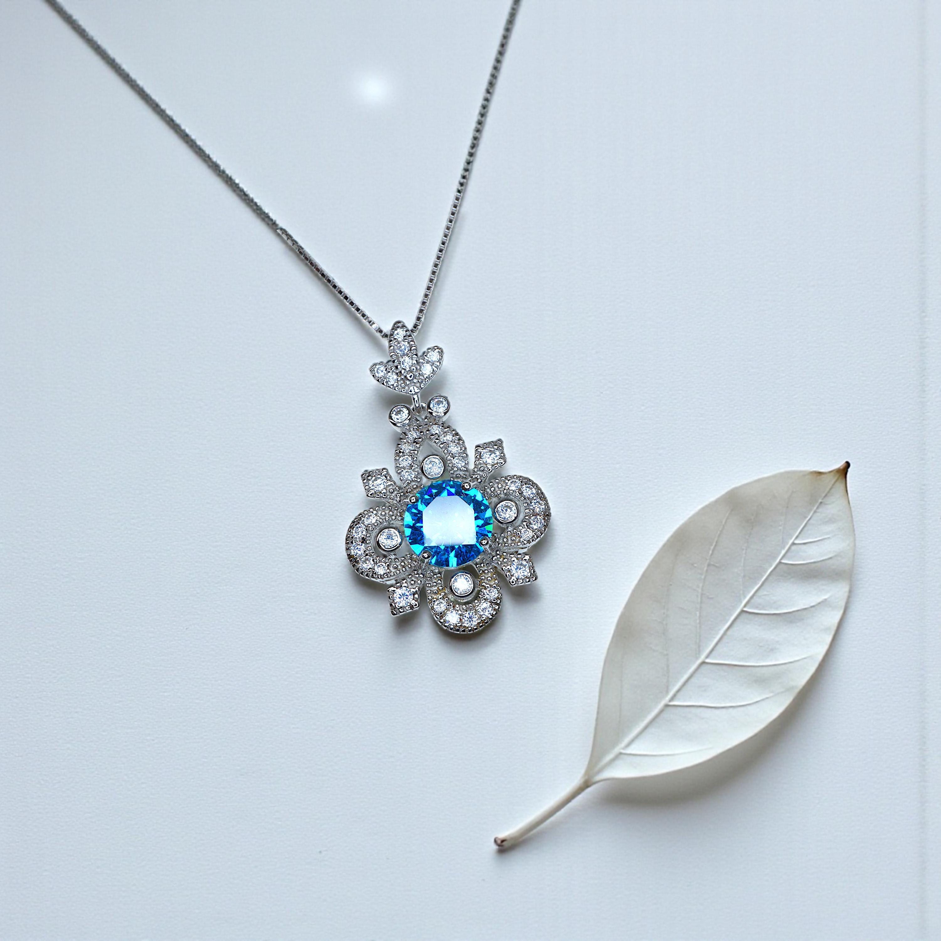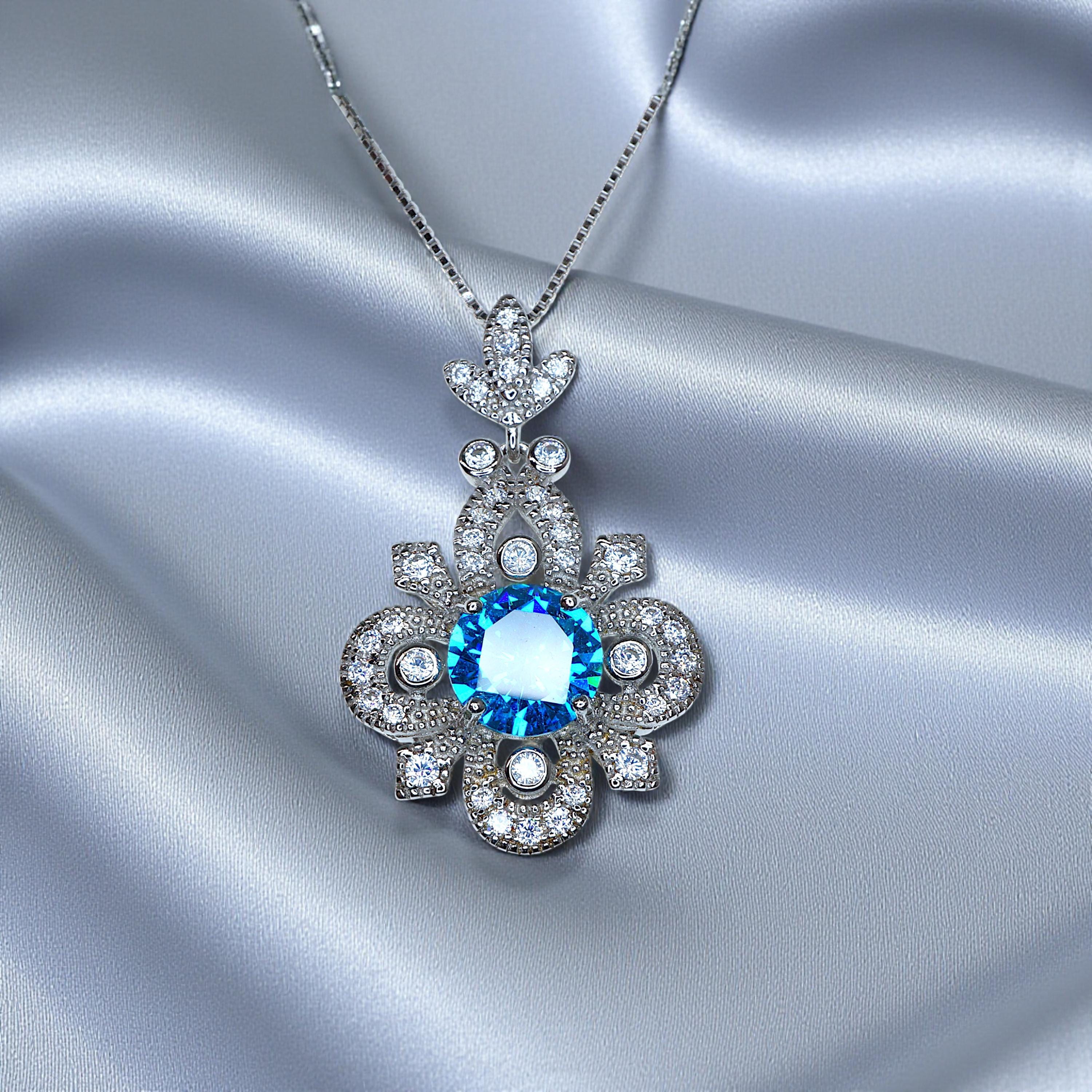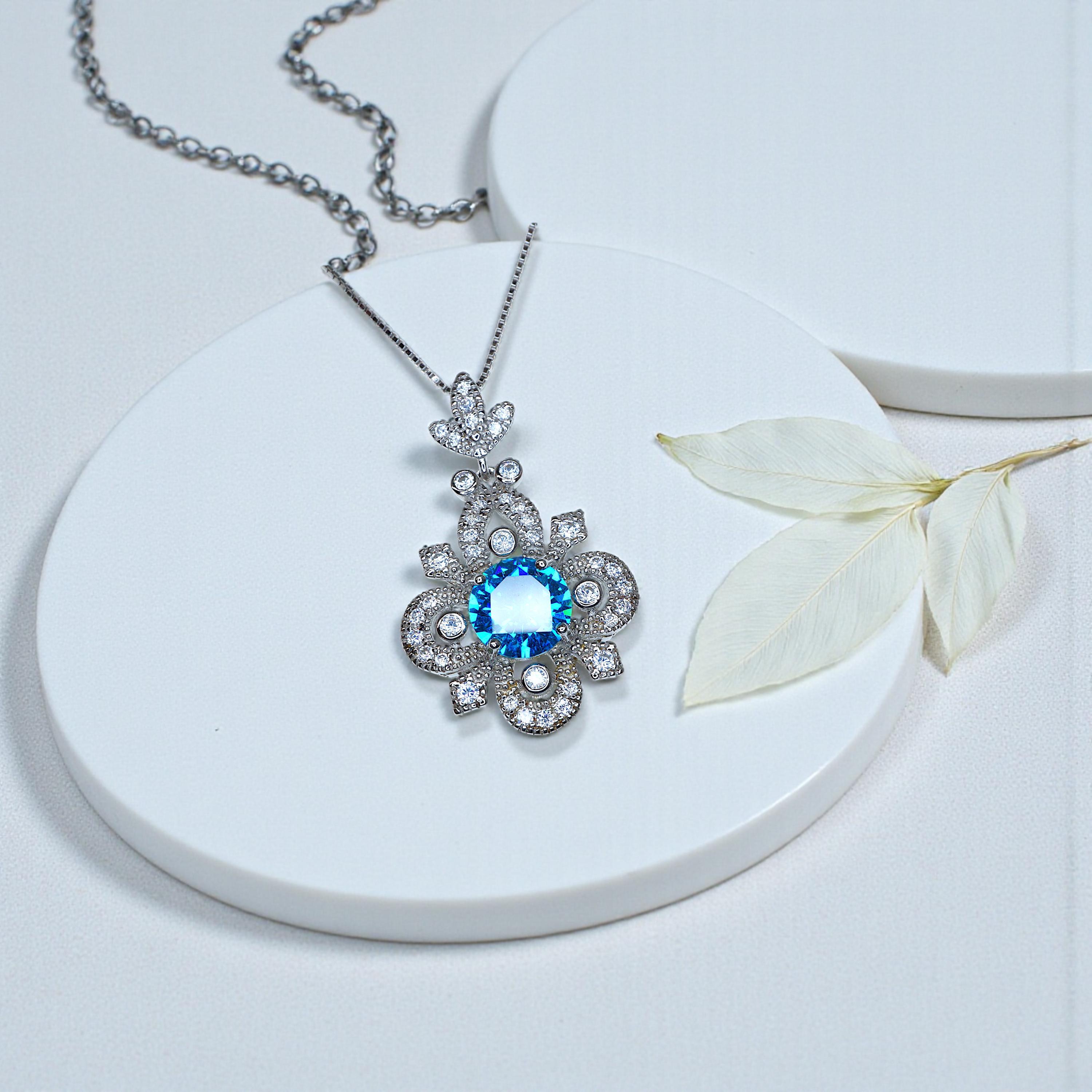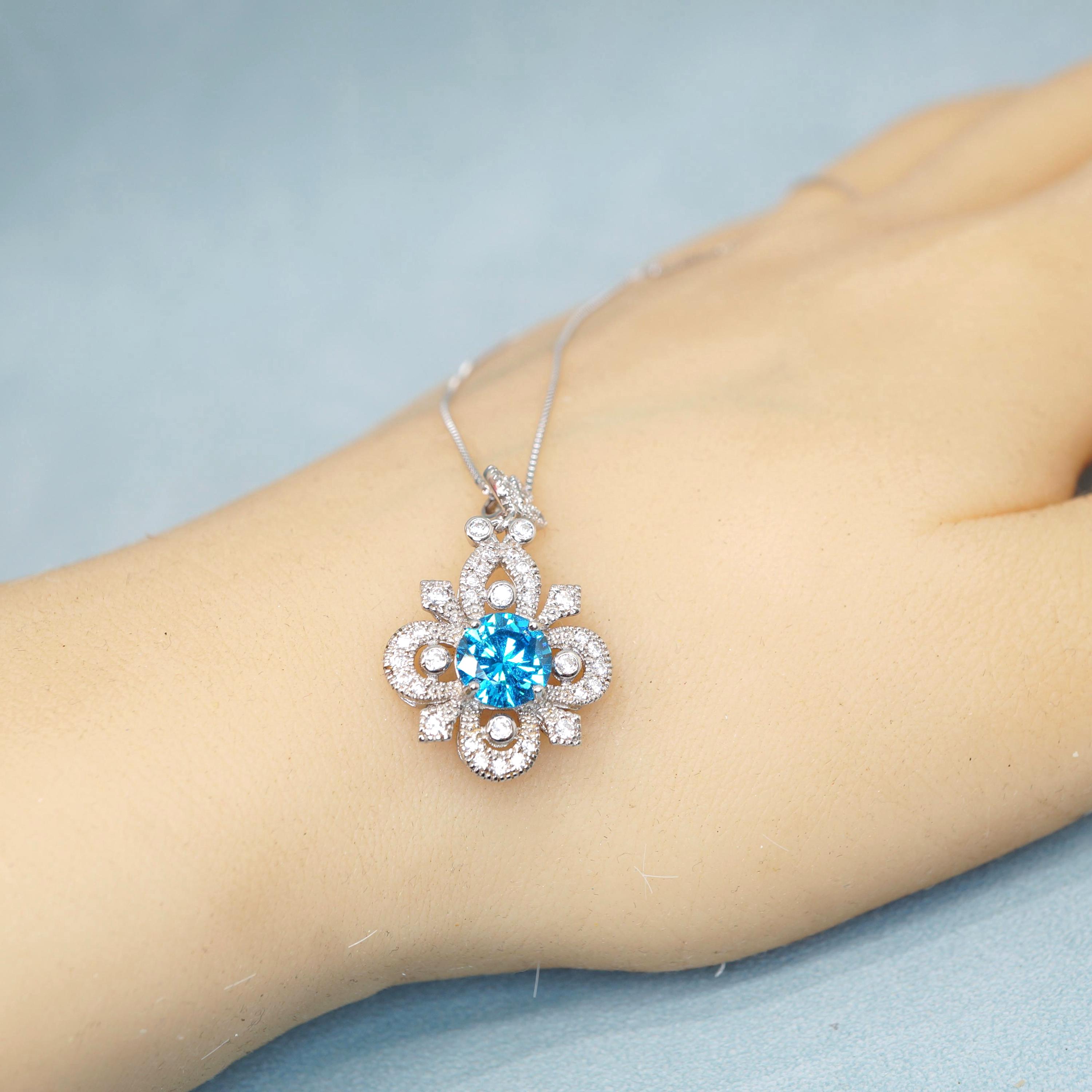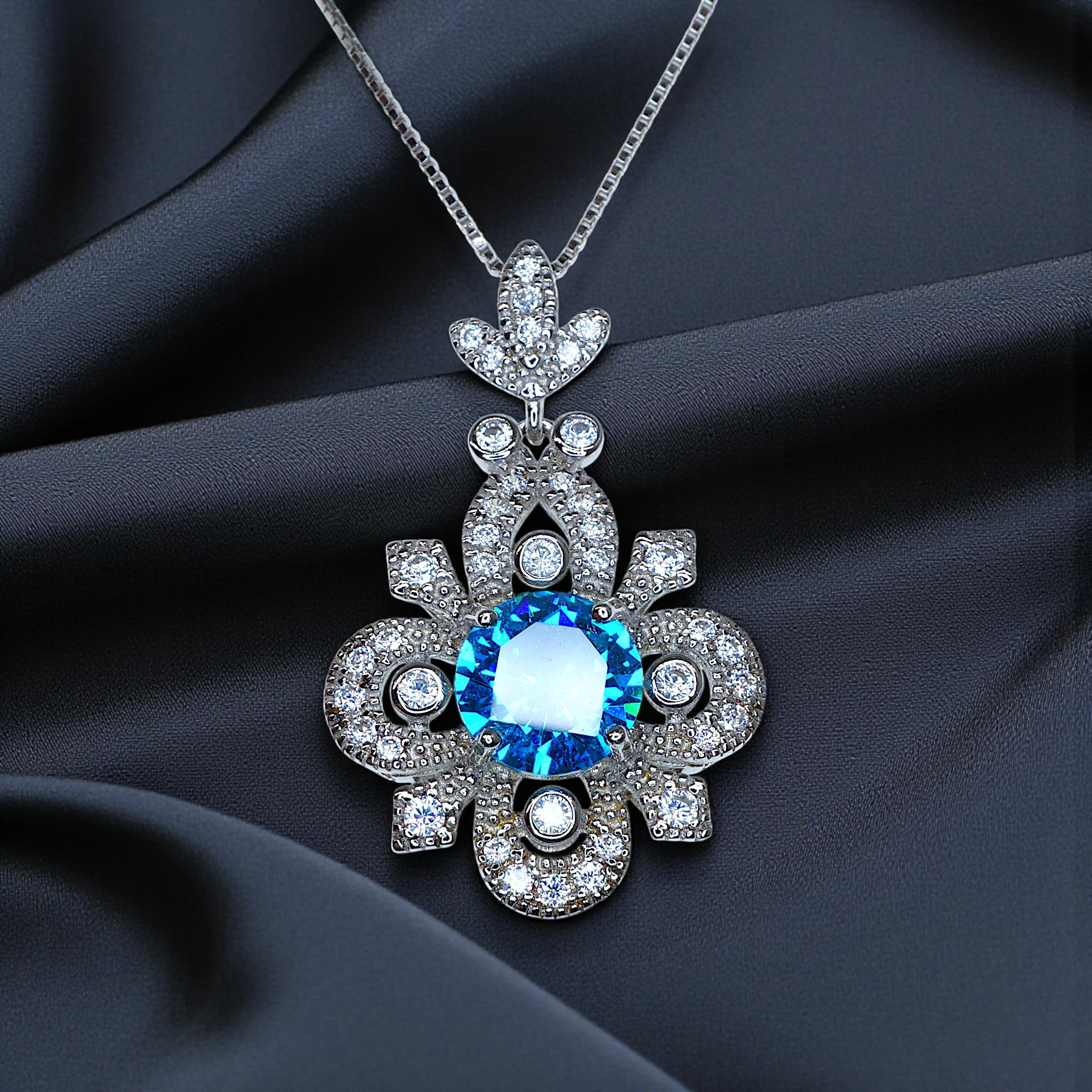 💍 Dazzling Diamond-Simulant Halo: The central gemstone is encircled and topped with sparkling, clear CZ accent stones (simulating diamonds), which catch the light beautifully, adding a luxurious and eye-catching shimmer to the overall pendant design.