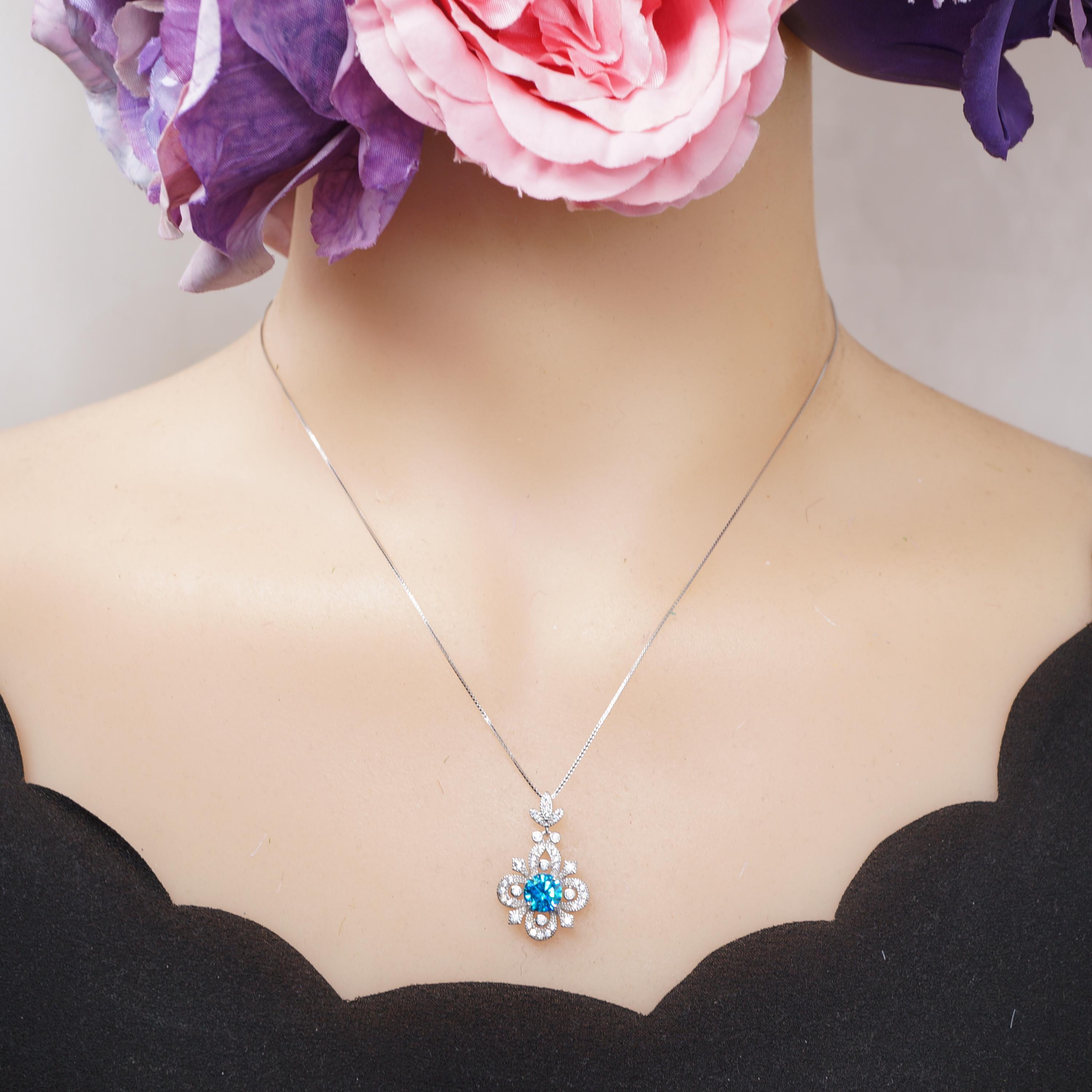✨ Exquisite Blue Topaz Centerpiece: Featuring a vibrant, brilliant-cut Swiss Blue Topaz (based on color and common jewelry practices), beautifully framed in a clover or floral-inspired design (approximately 1.3 cm in length/width based on the image). This statement gemstone provides a striking pop of color and natural elegance.