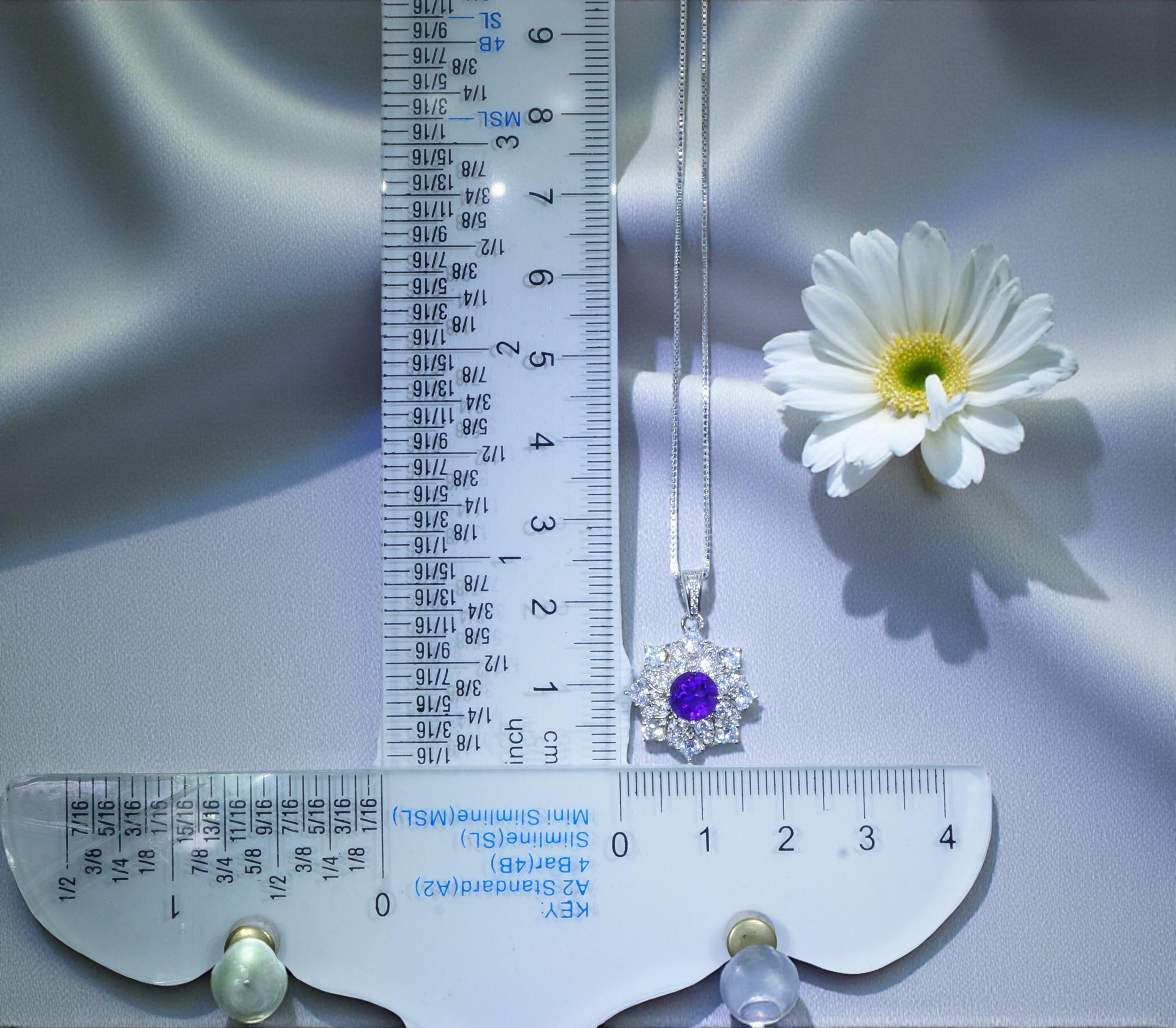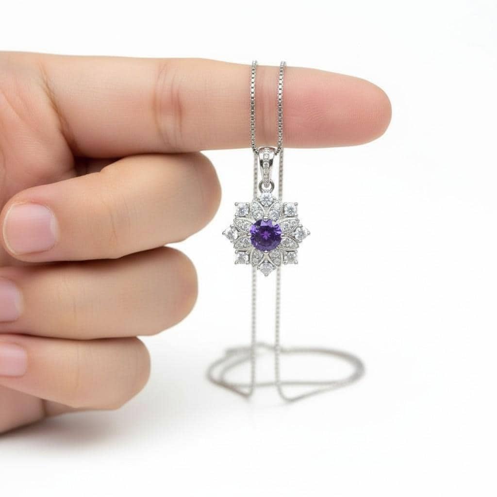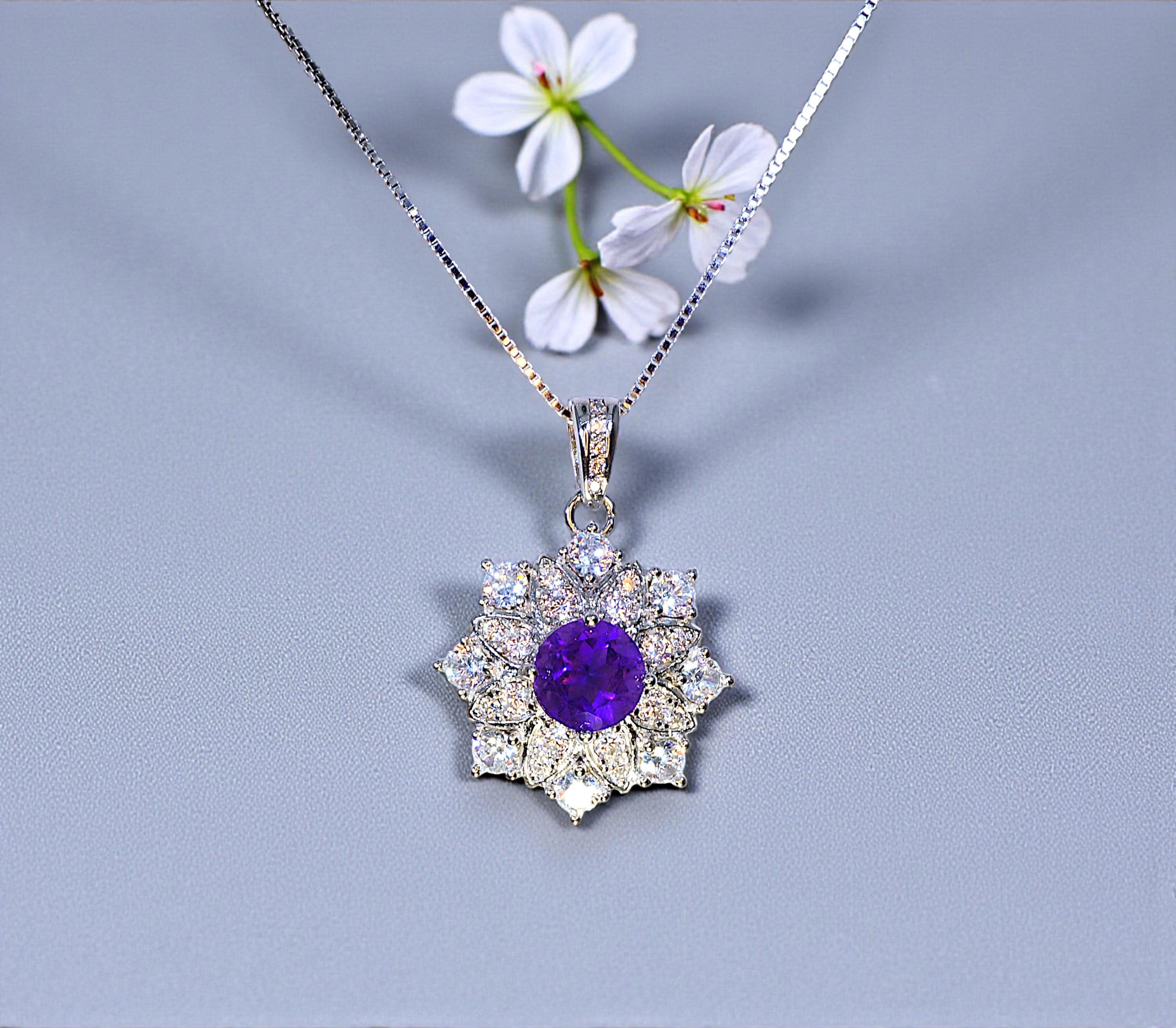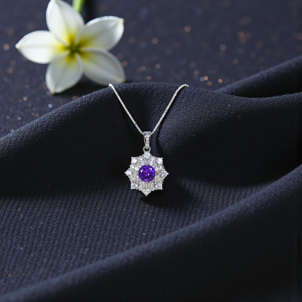 Genuine Amethyst Necklace Gypsophila Natural Amethyst Pendant 18kgp@ Sterling Silver Purple Gemstone Jewelry February Birthstone