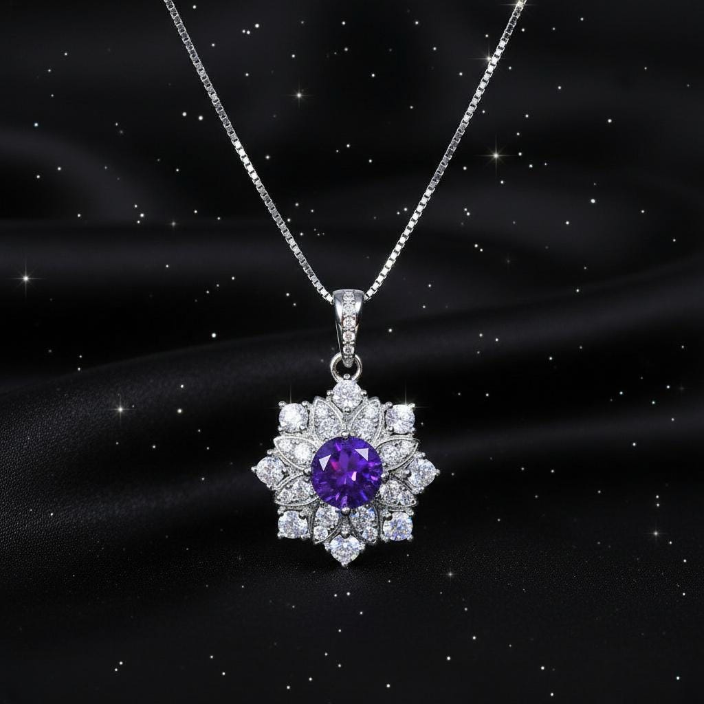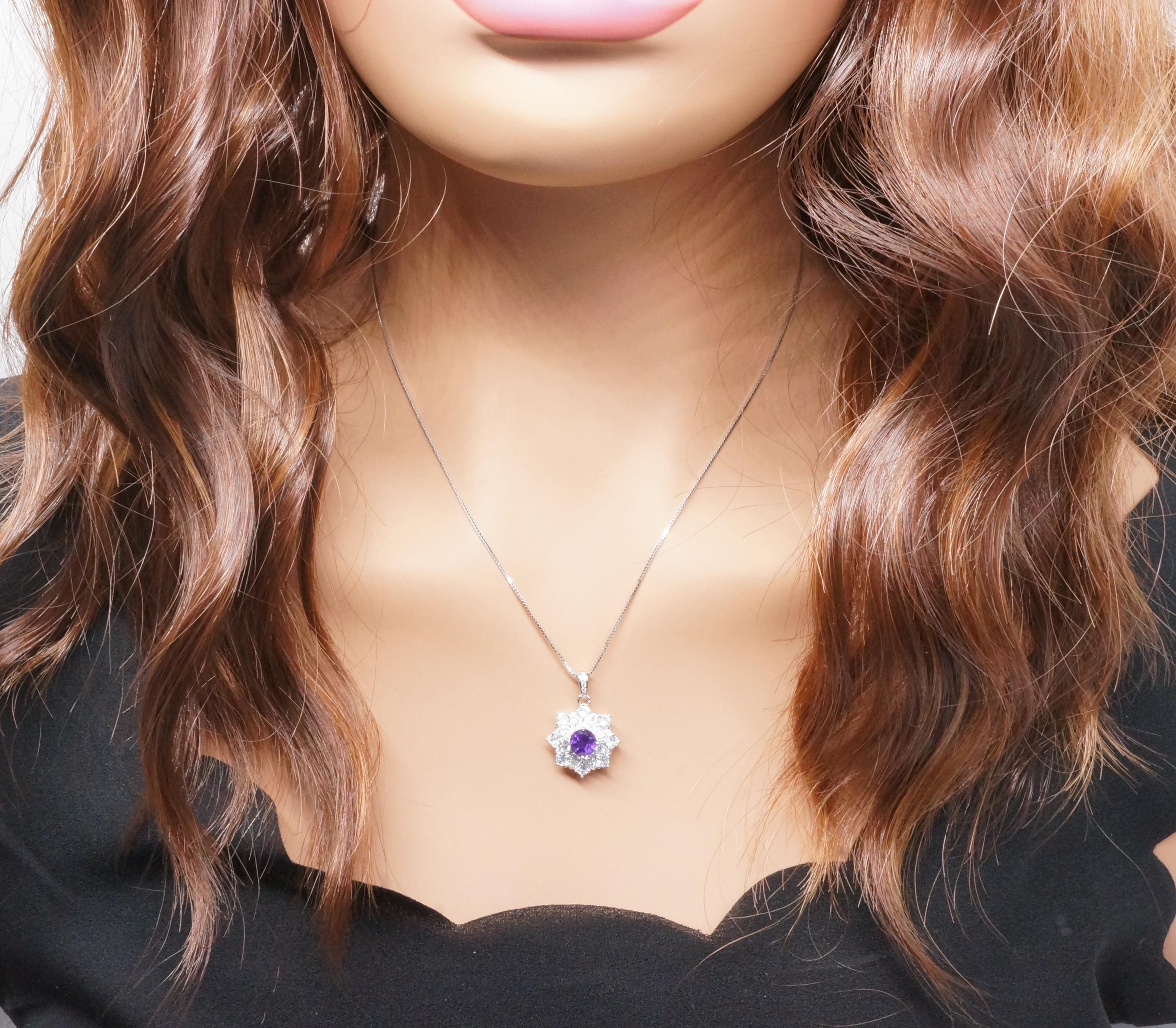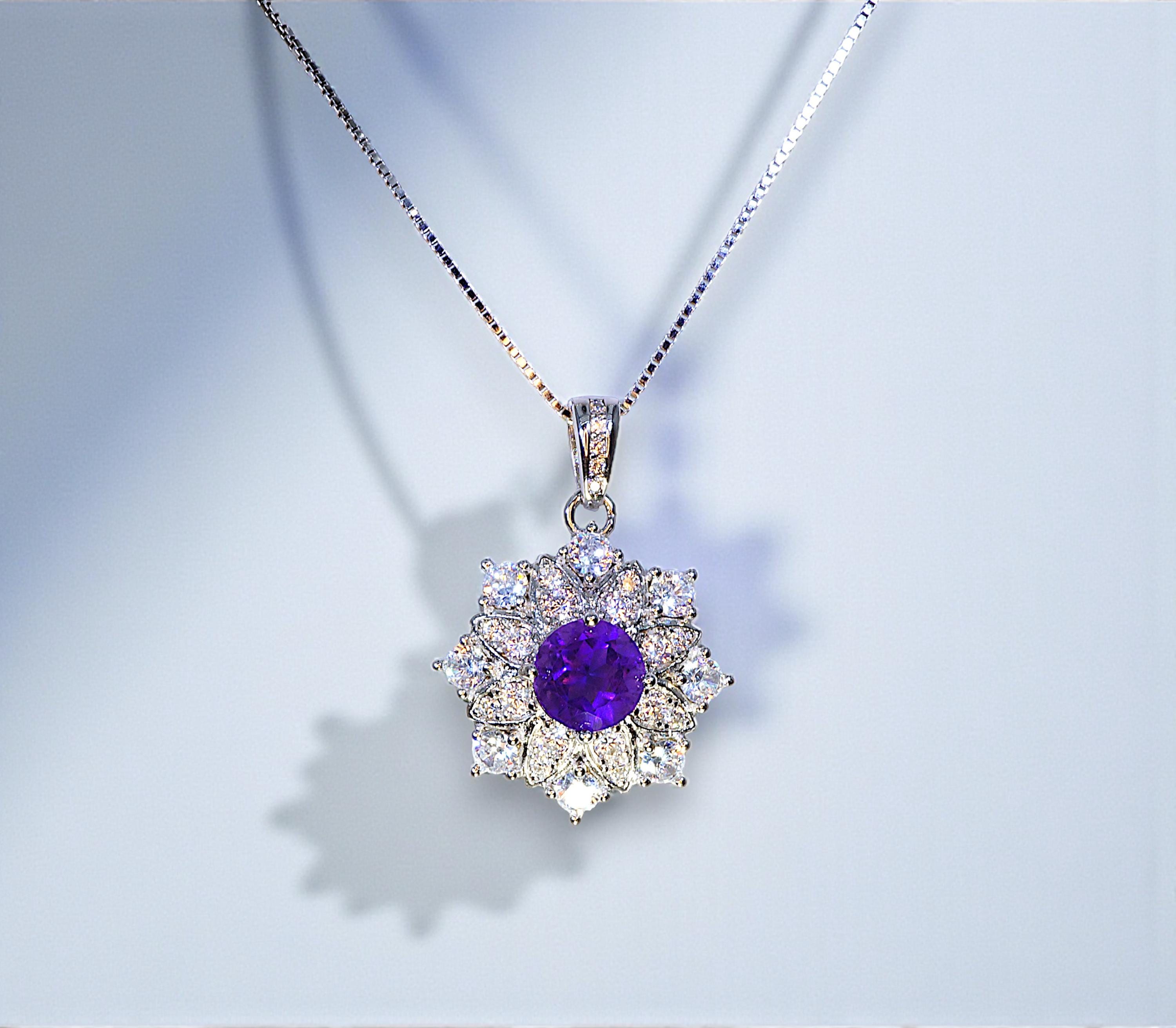 Genuine Amethyst Necklace Gypsophila Natural Amethyst Pendant 18kgp@ Sterling Silver Purple Gemstone Jewelry February Birthstone