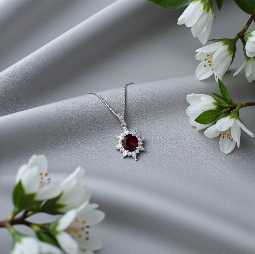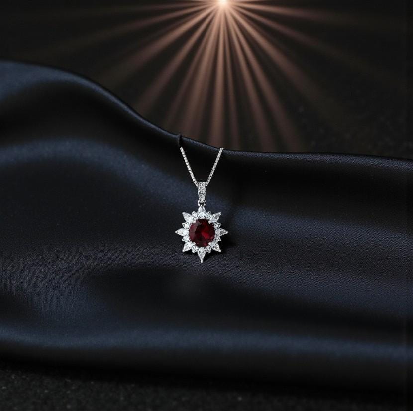 Solitaire Ruby Sunshine necklace, sterling silver made Gemstone Necklace, Handmade Jewelry