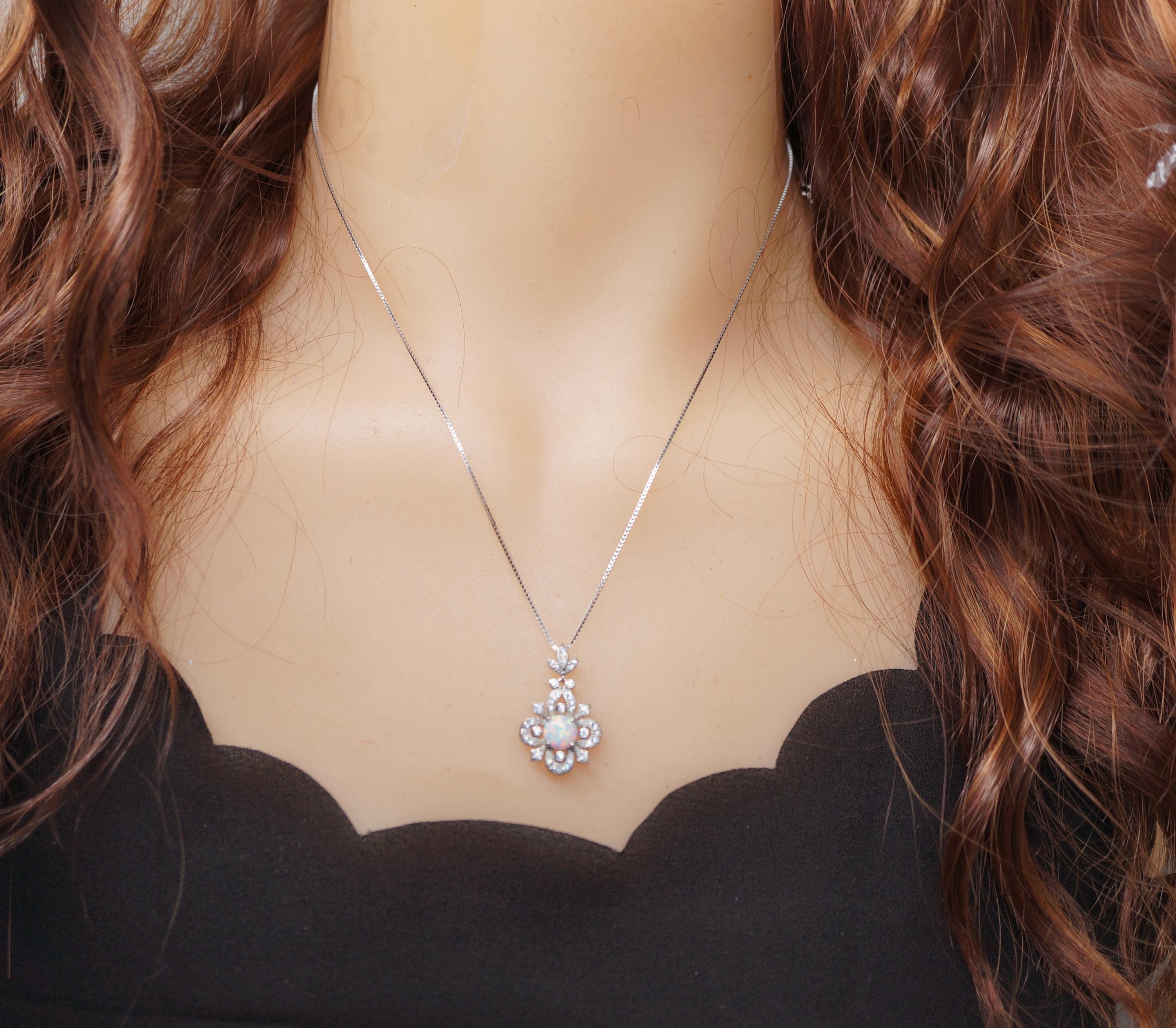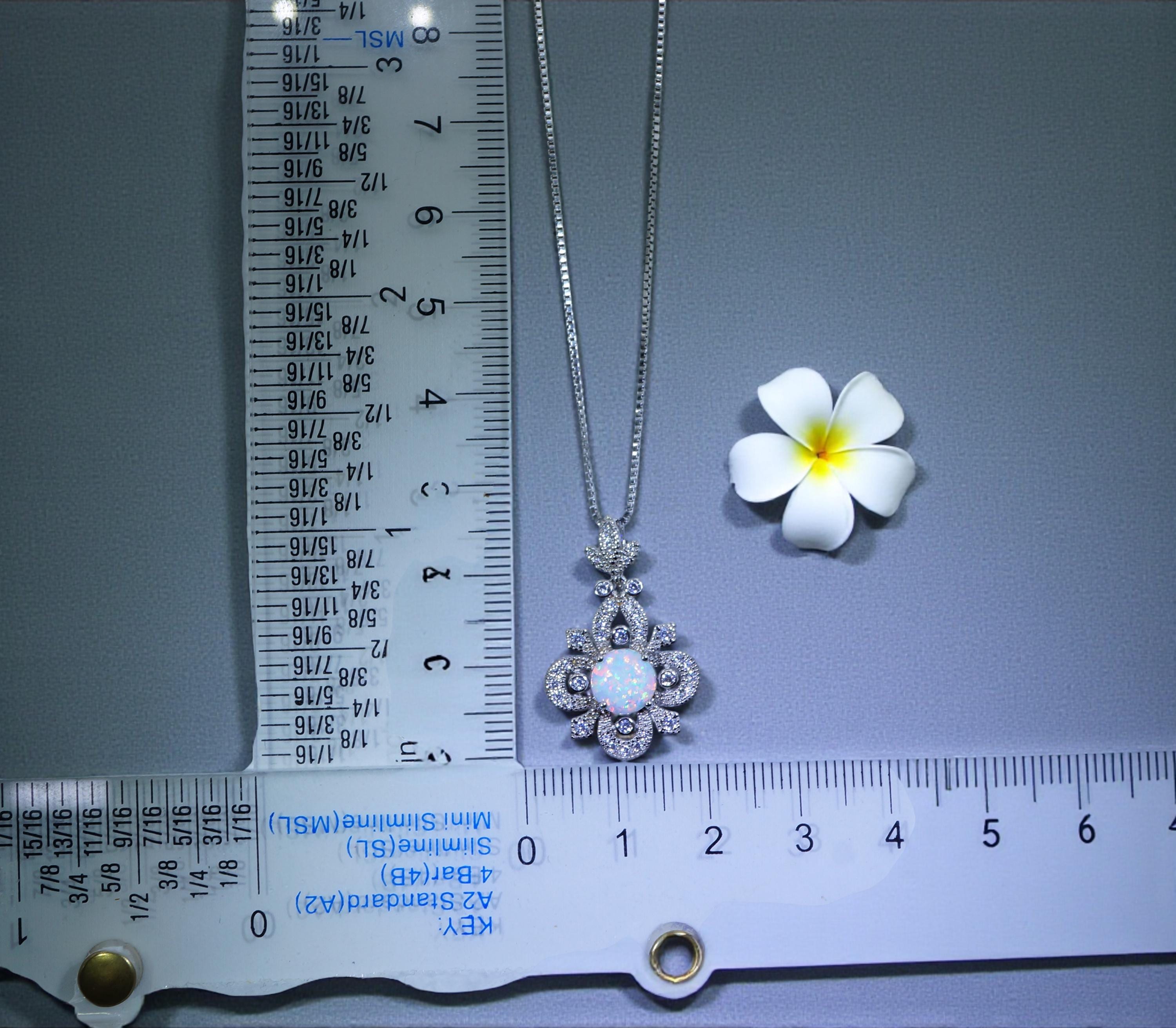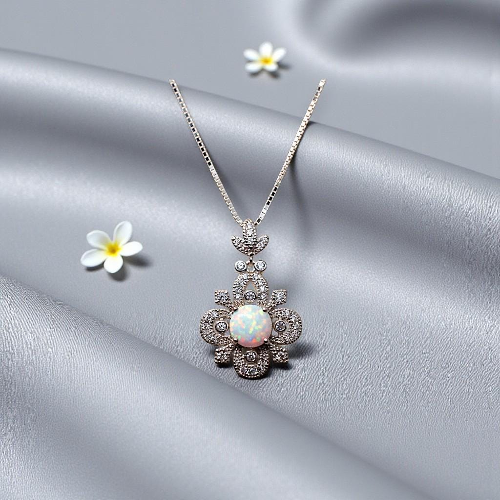 Timeless Floral Design: This pendant features a brilliant 8mm lab-created white opal set in a handcrafted vintage-style floral filigree, symbolizing hope and purity.