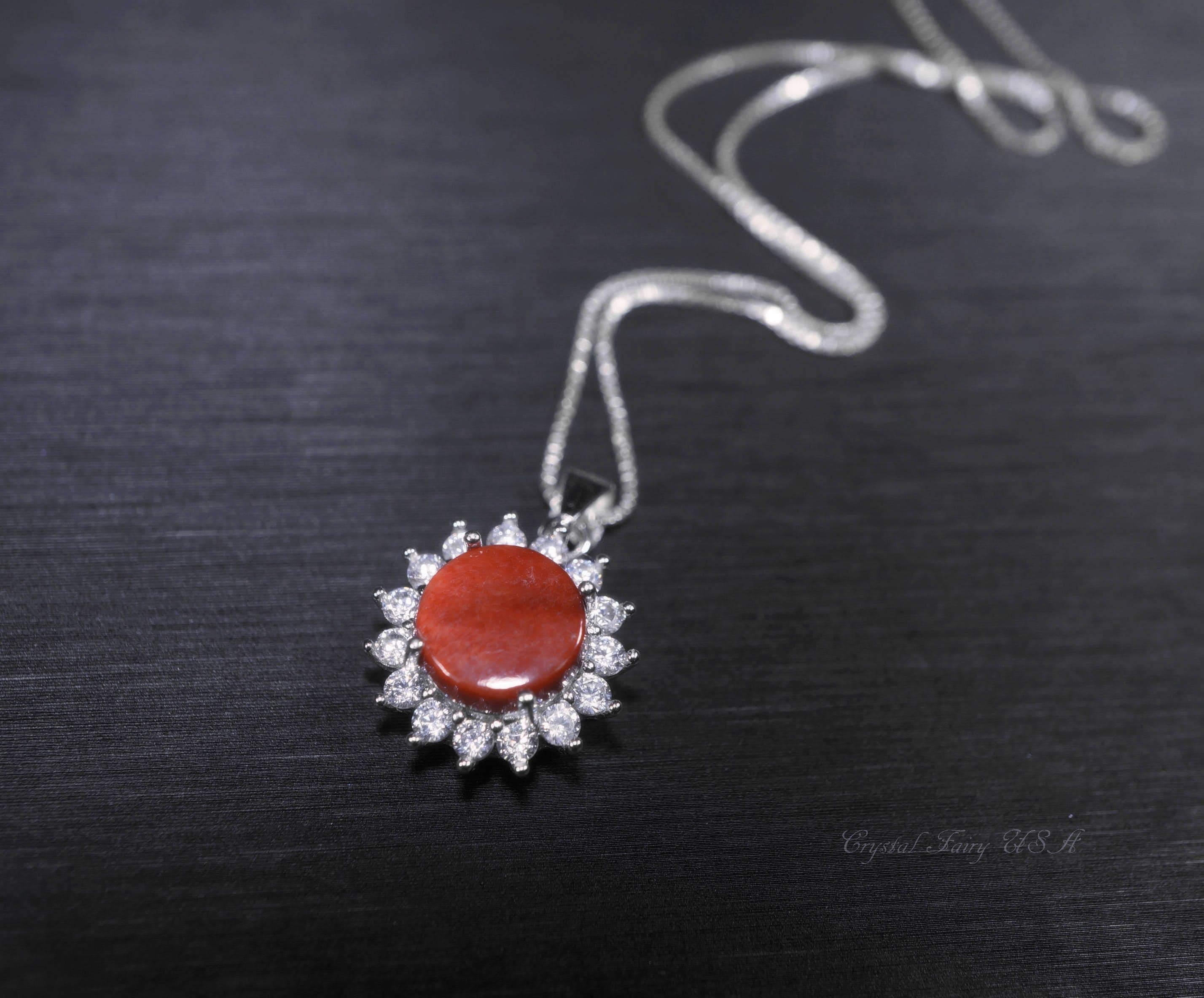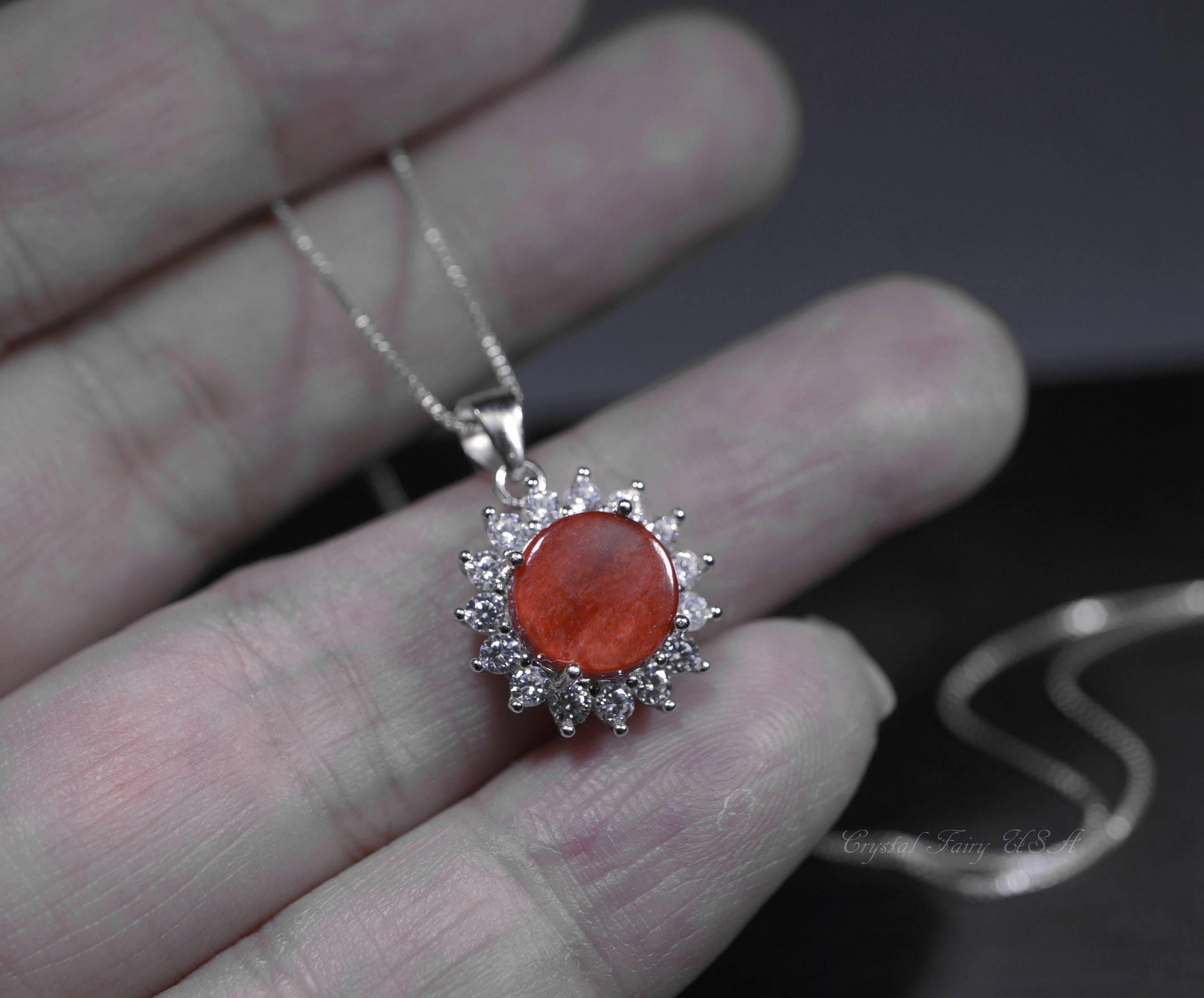 Genuine tiny Spiny Oyster Necklace with sterling silver made.