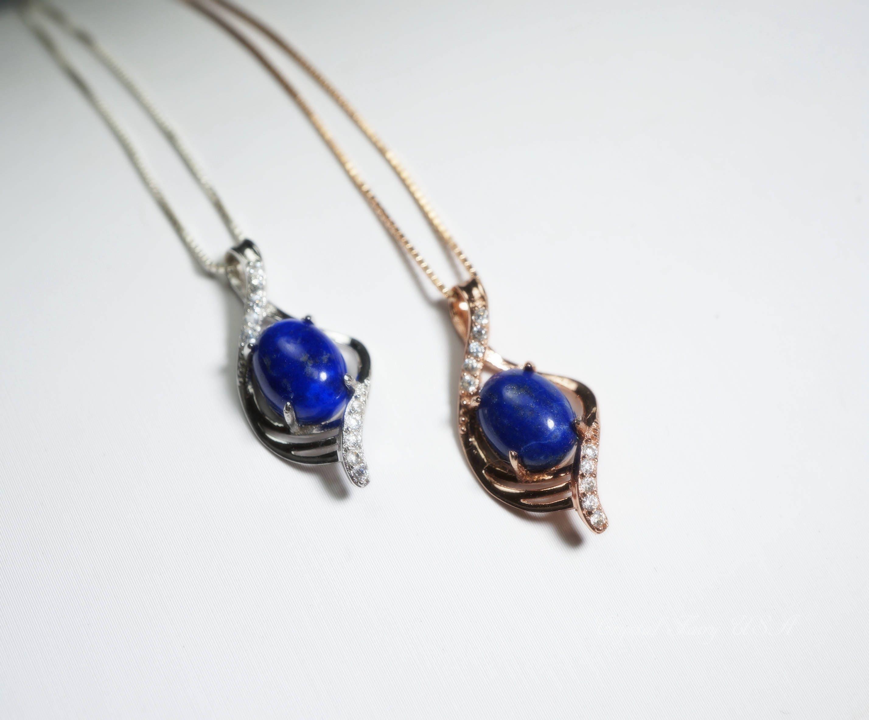 Genuine Lapis Lazuli Necklace with sterling silver made.