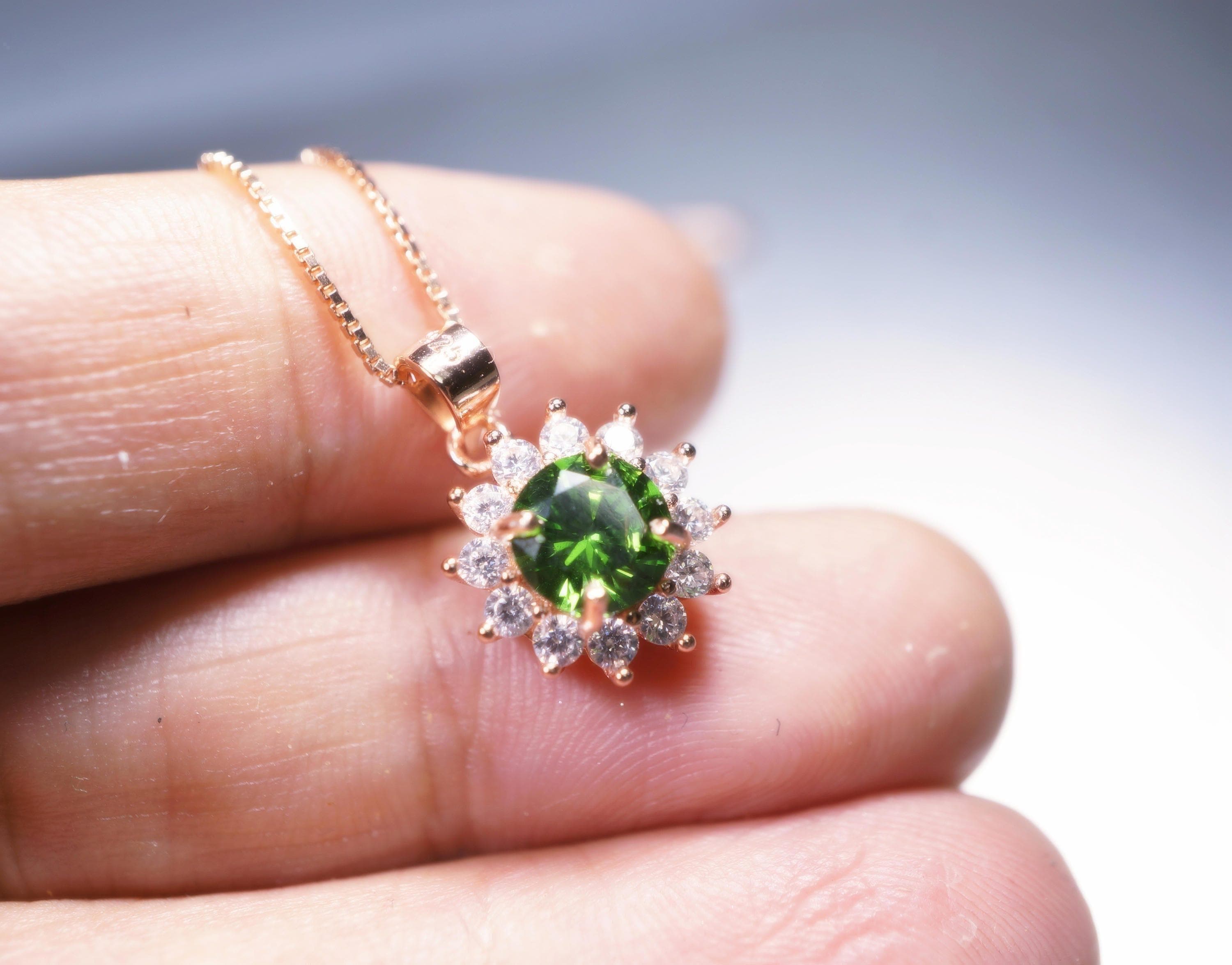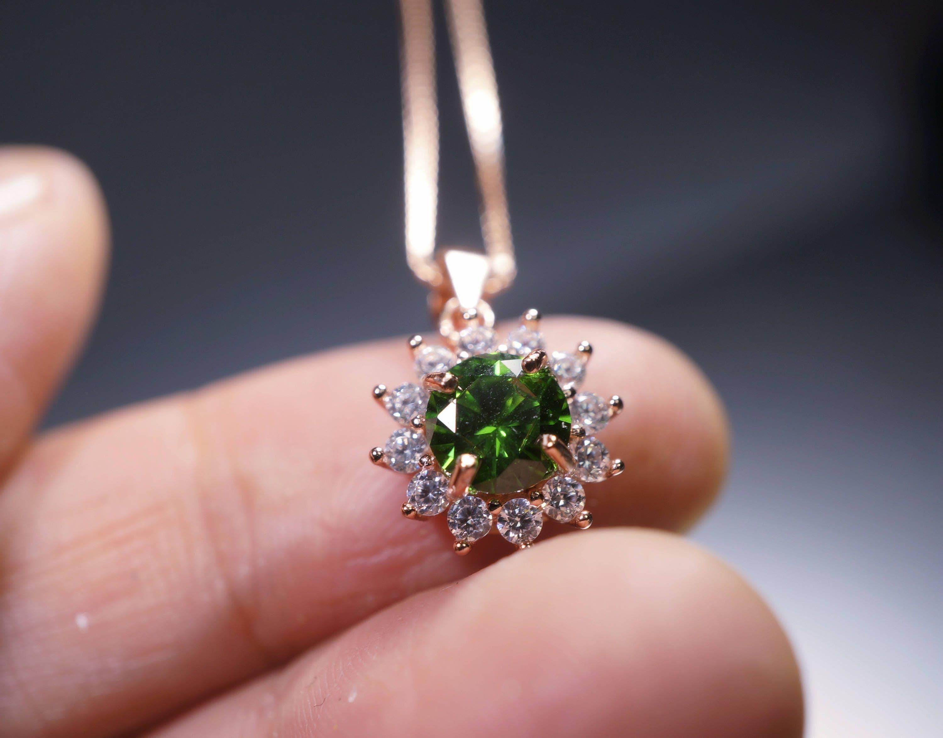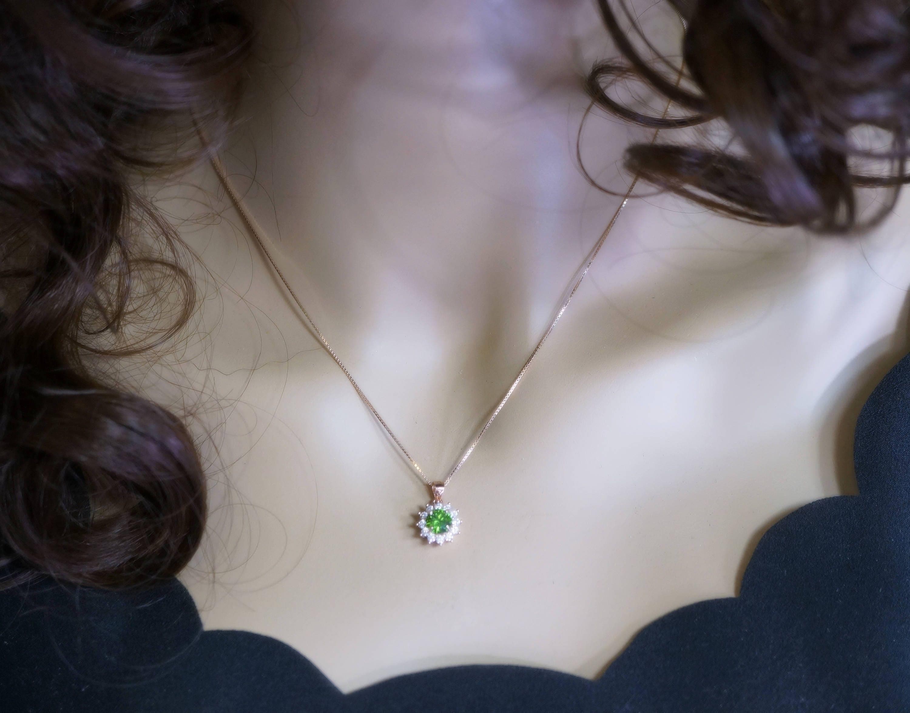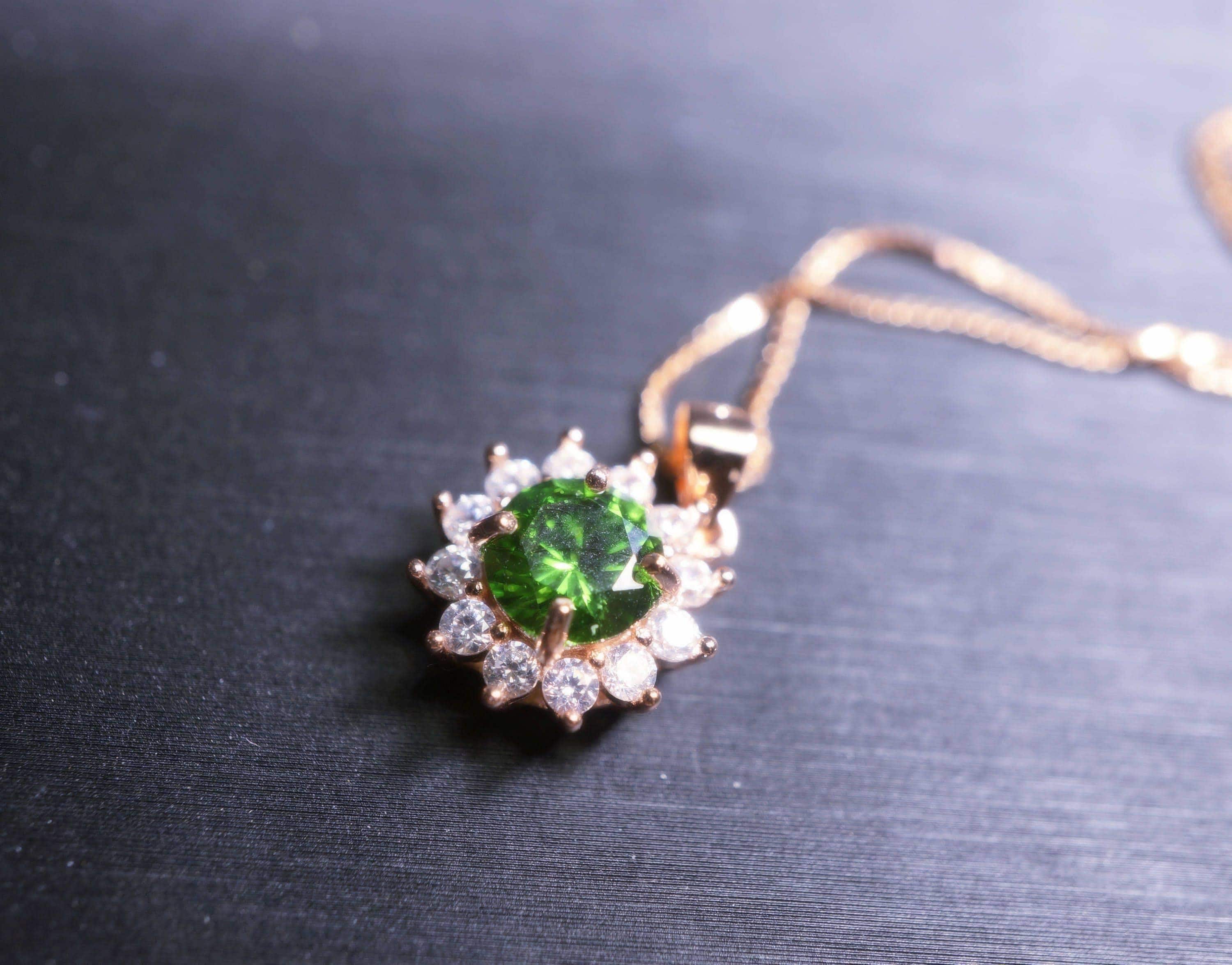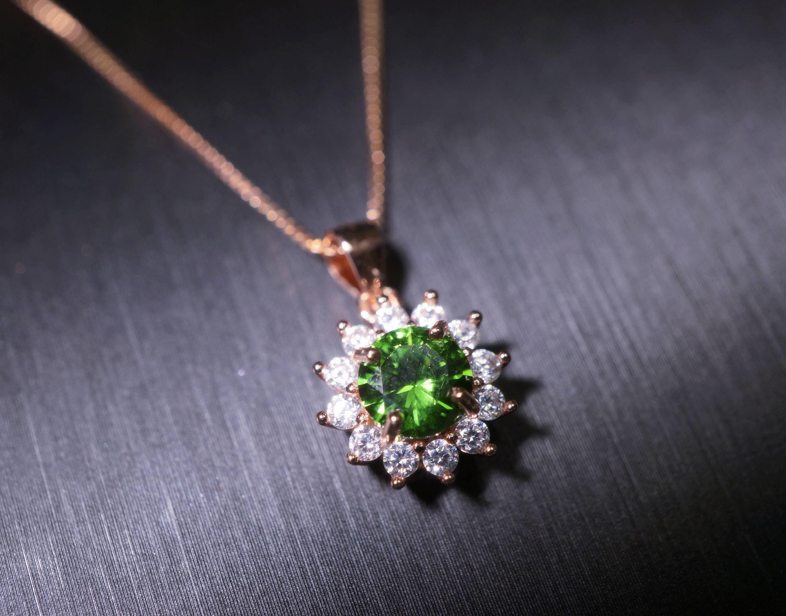Super high quality Diopsid necklace with rose gold over sterling silver made.