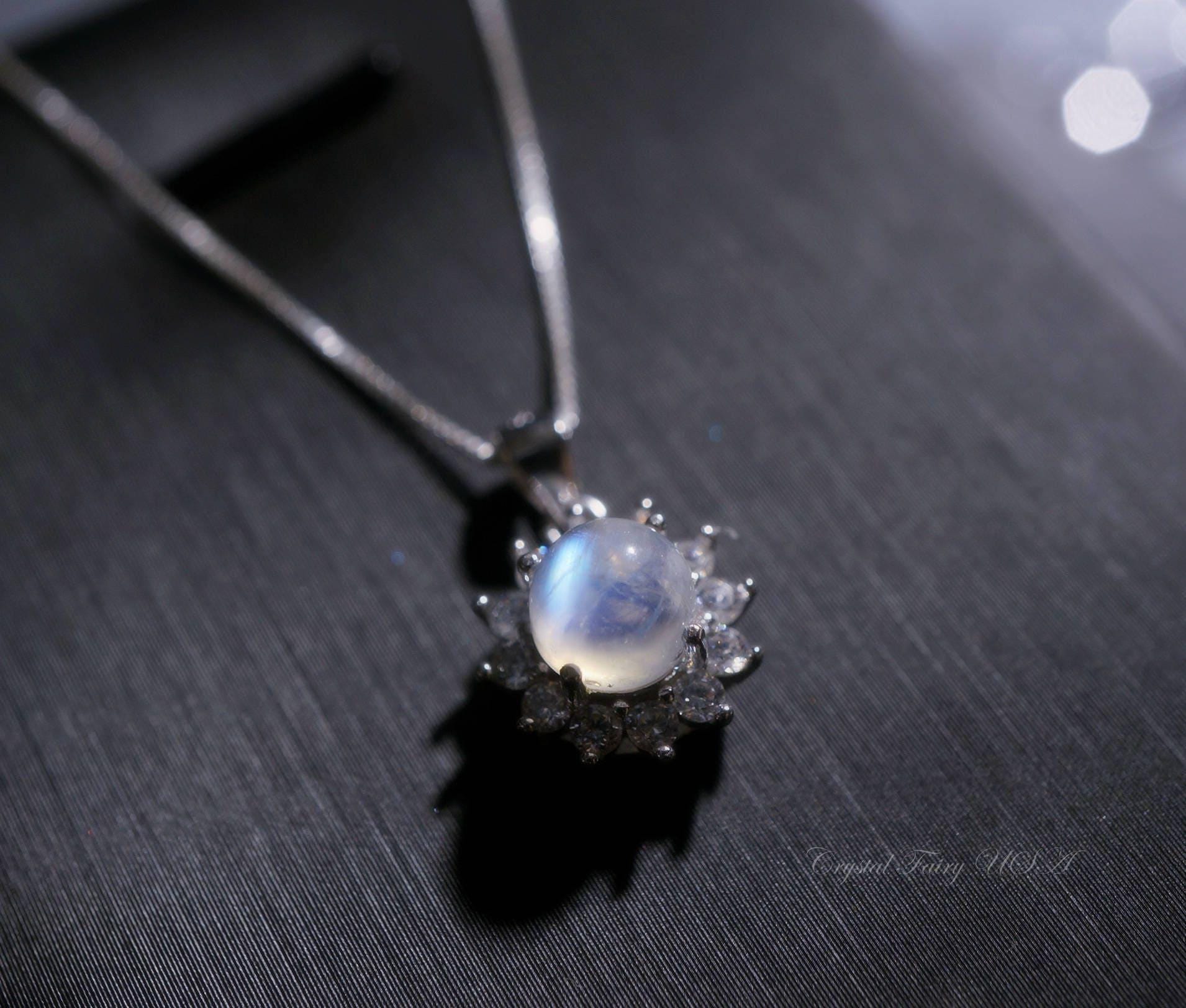 Moonstone necklace, Genuine tiny Sterling Silver Moonstone jewelry, Delicate natural Gemstone rhodium box chain