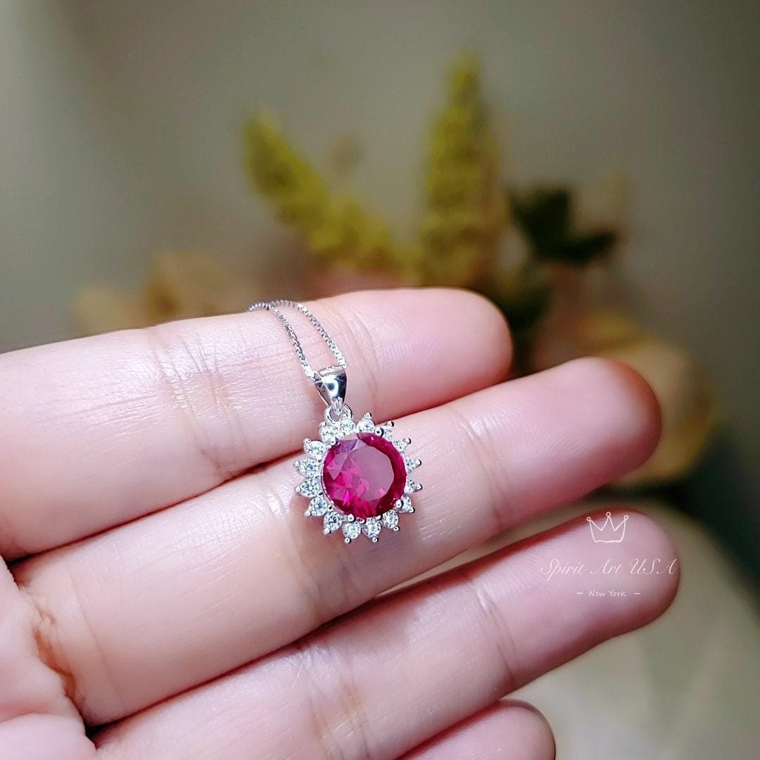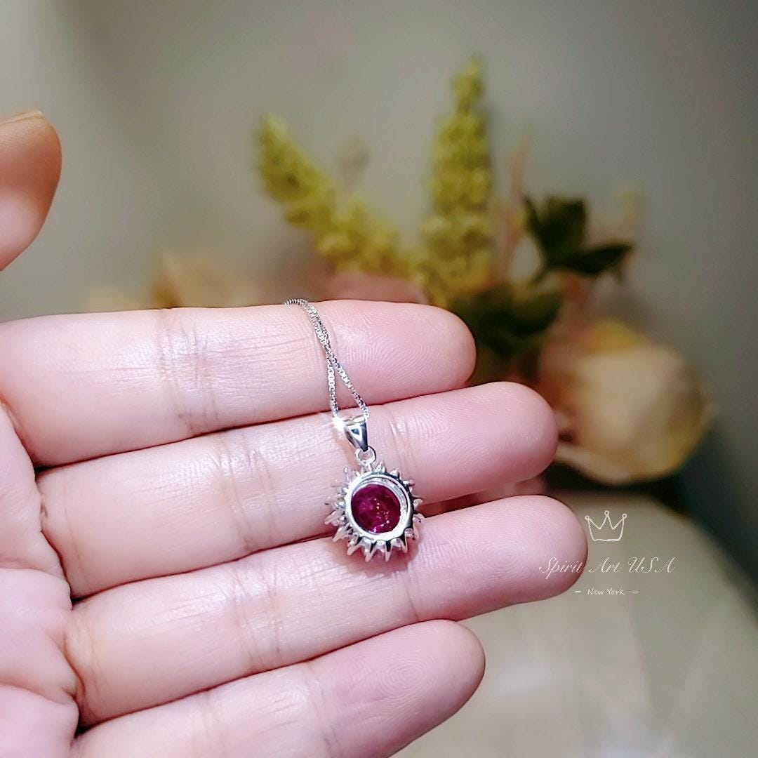 Delicate ruby Solitaire necklace classic princess sunflower style