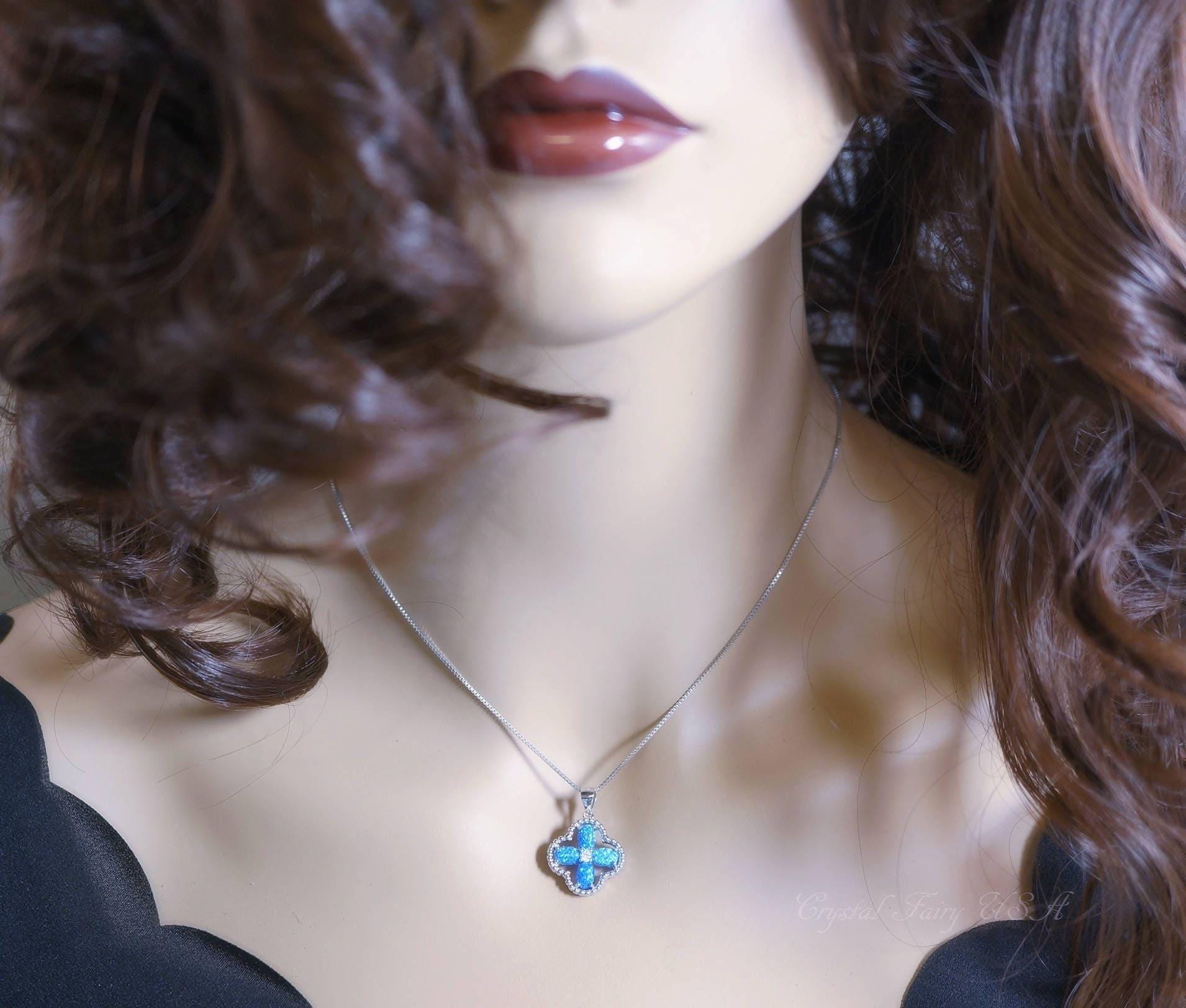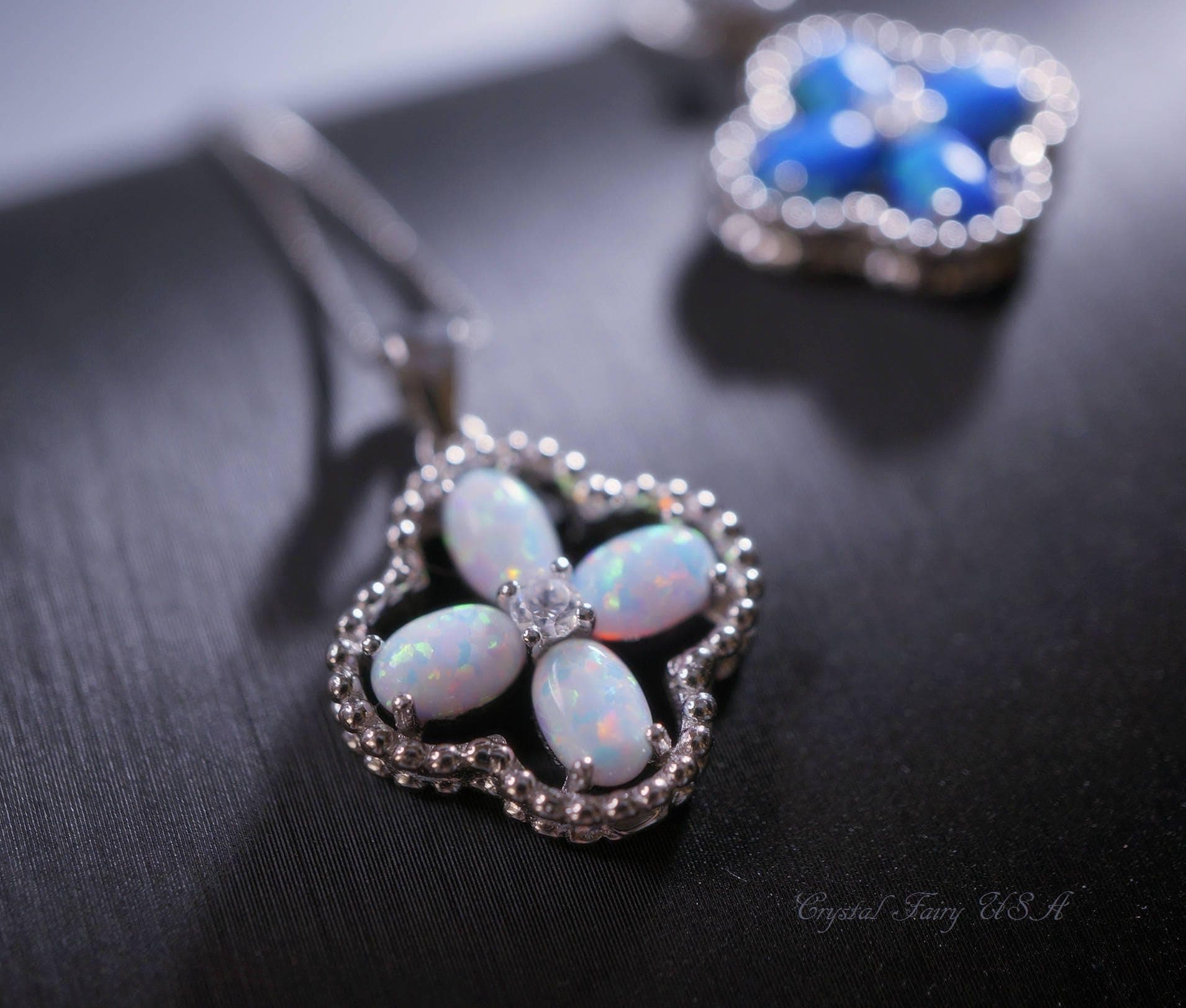 Delicate Opal Four Leaf Clover Necklace, High quality full sterling silver Opal jewelry
