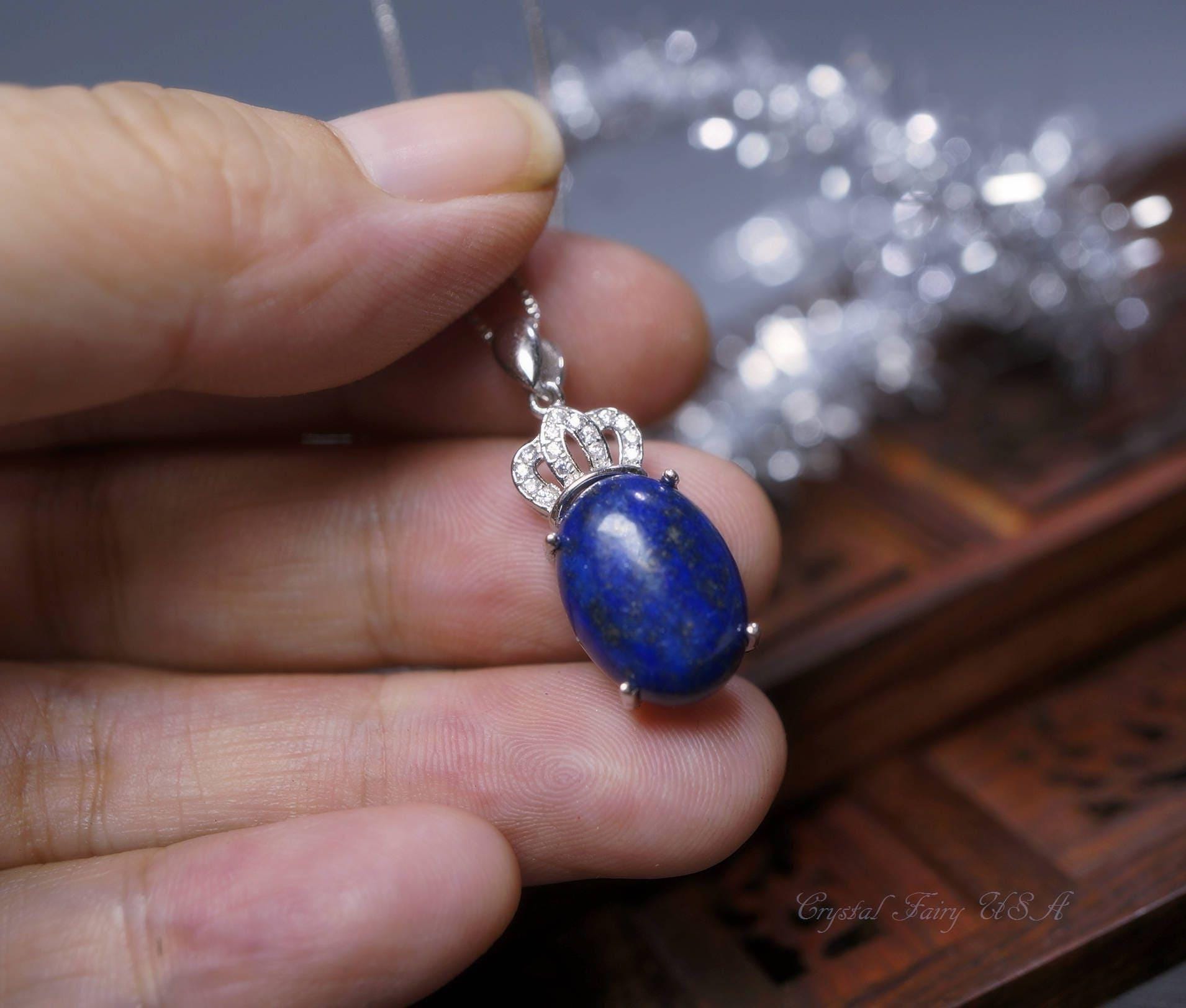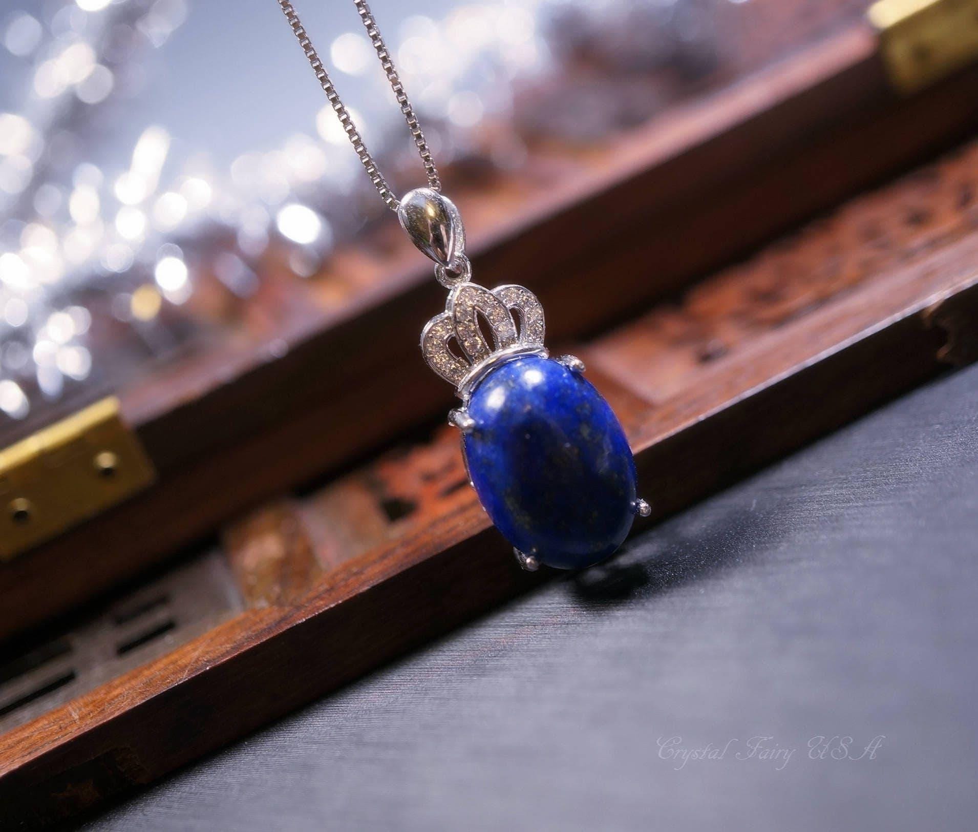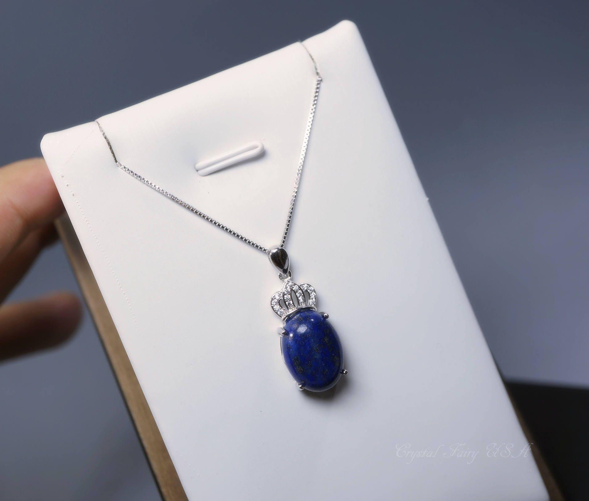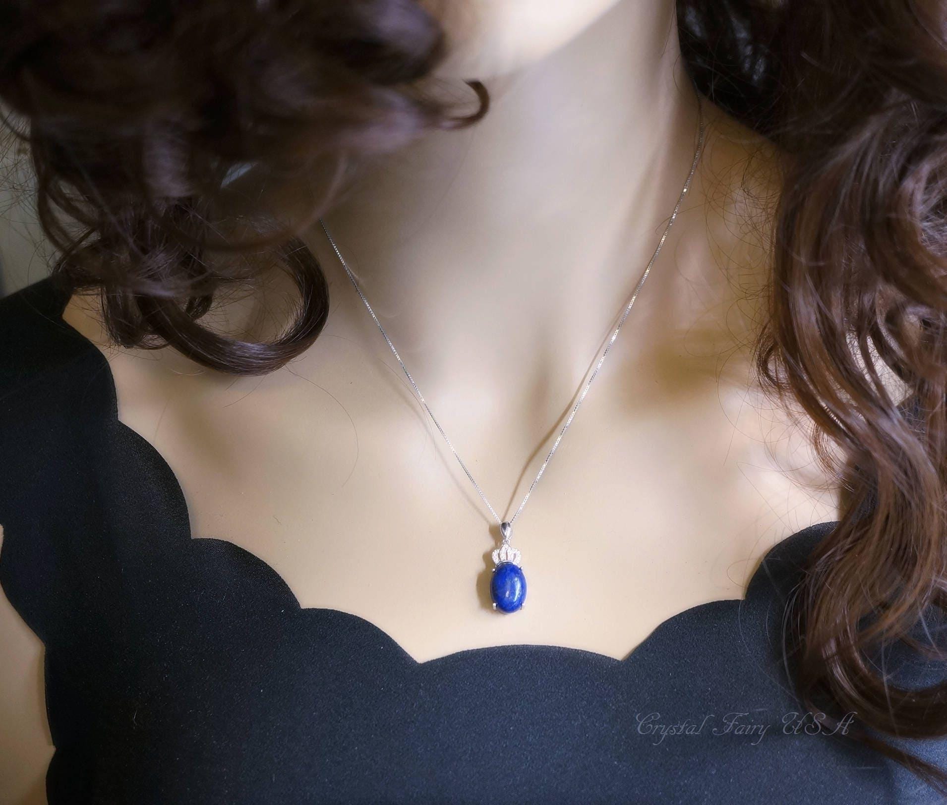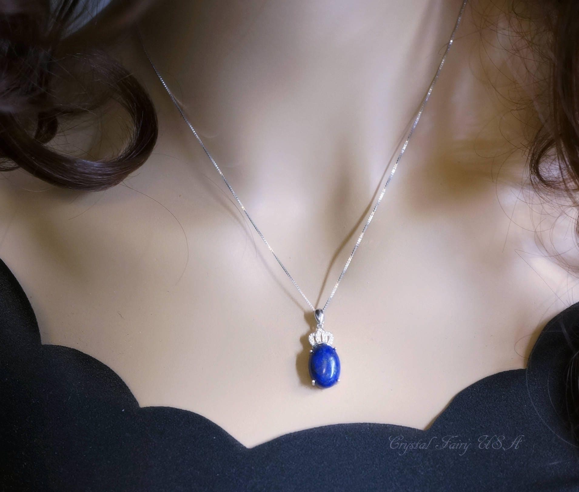 Genuine lapis lazuli CZ Crown Sterling silver necklace