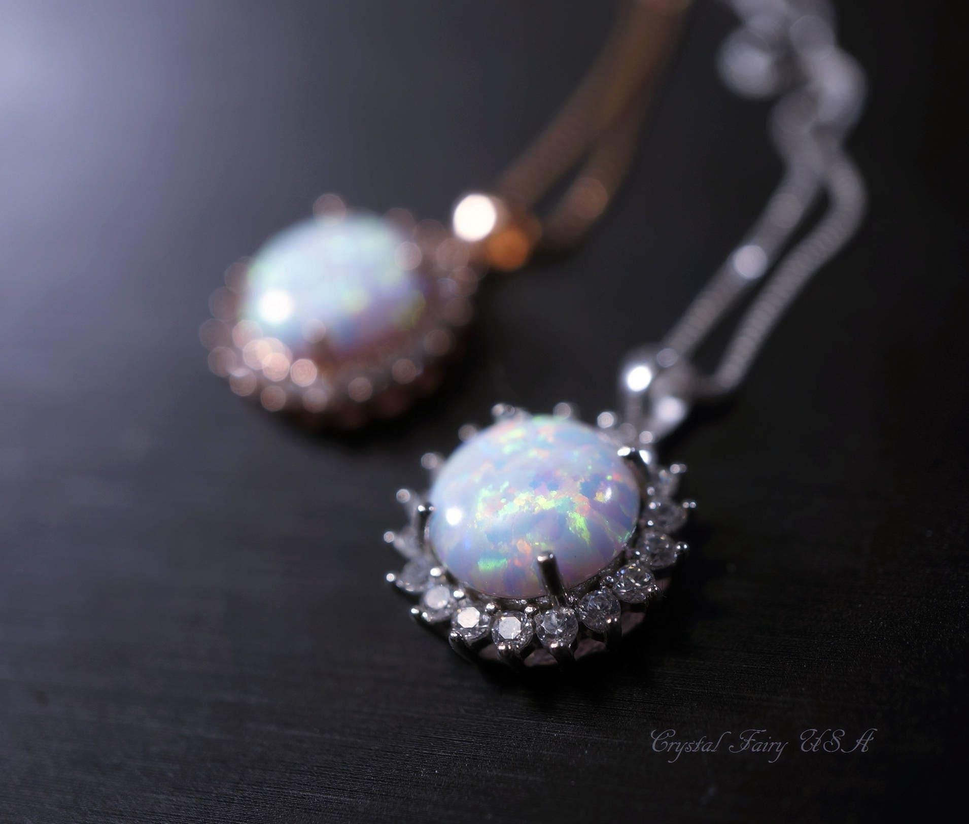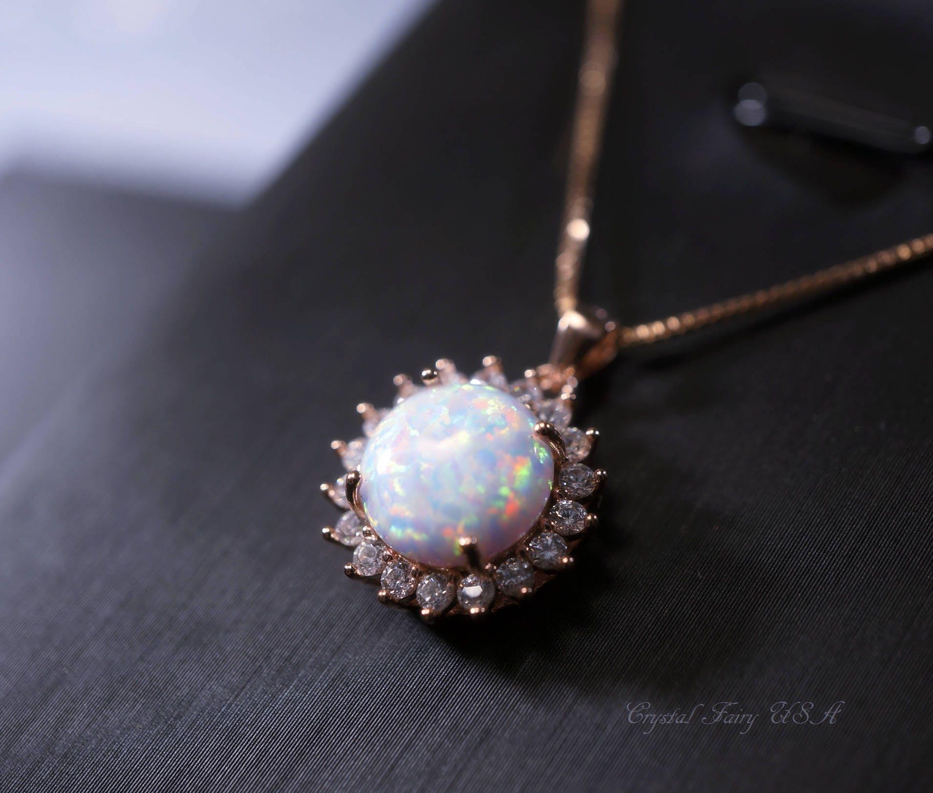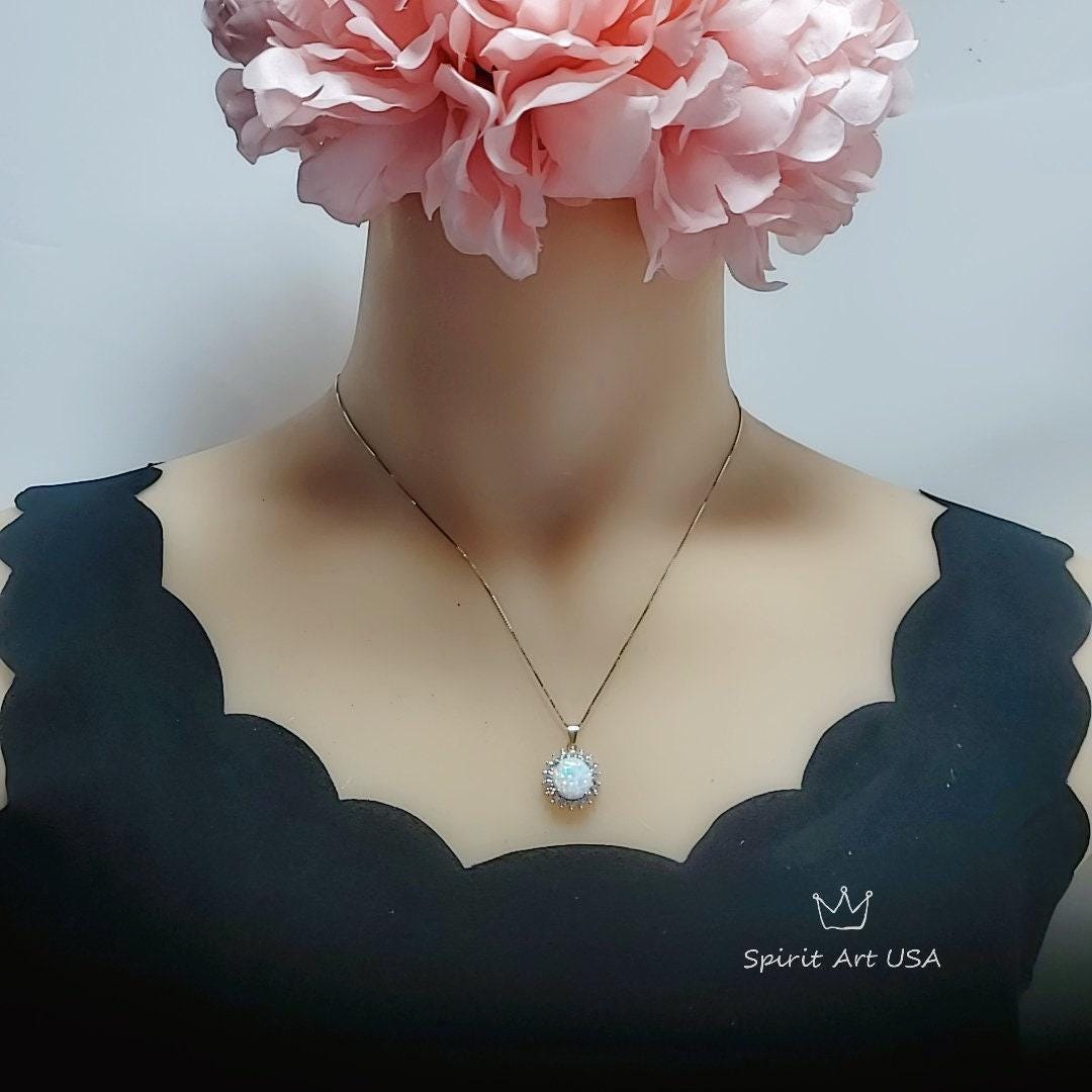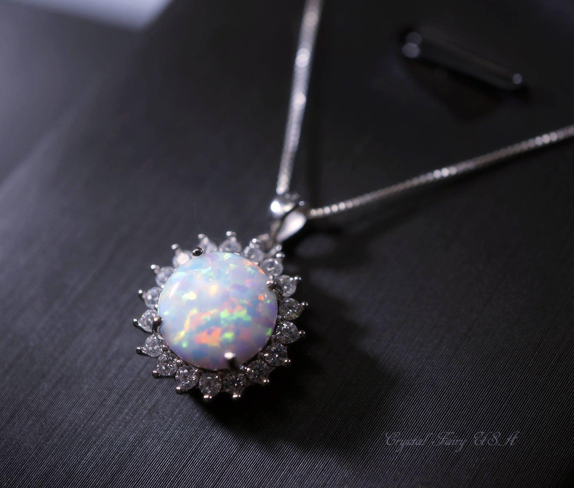10mm White opal necklace with sterling silver made.