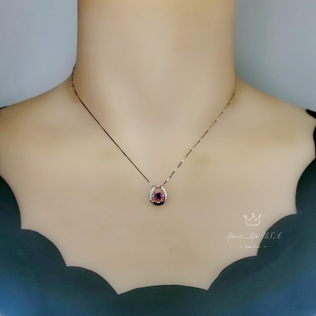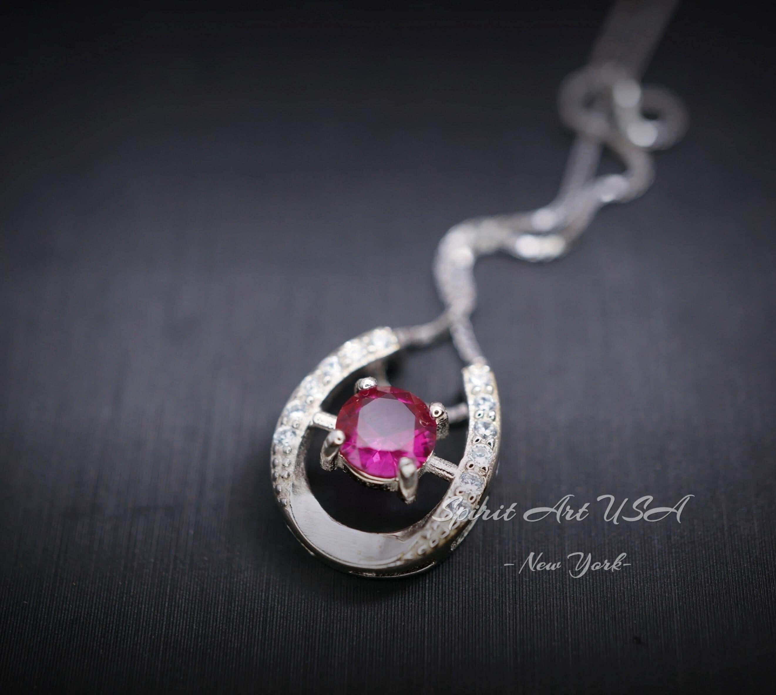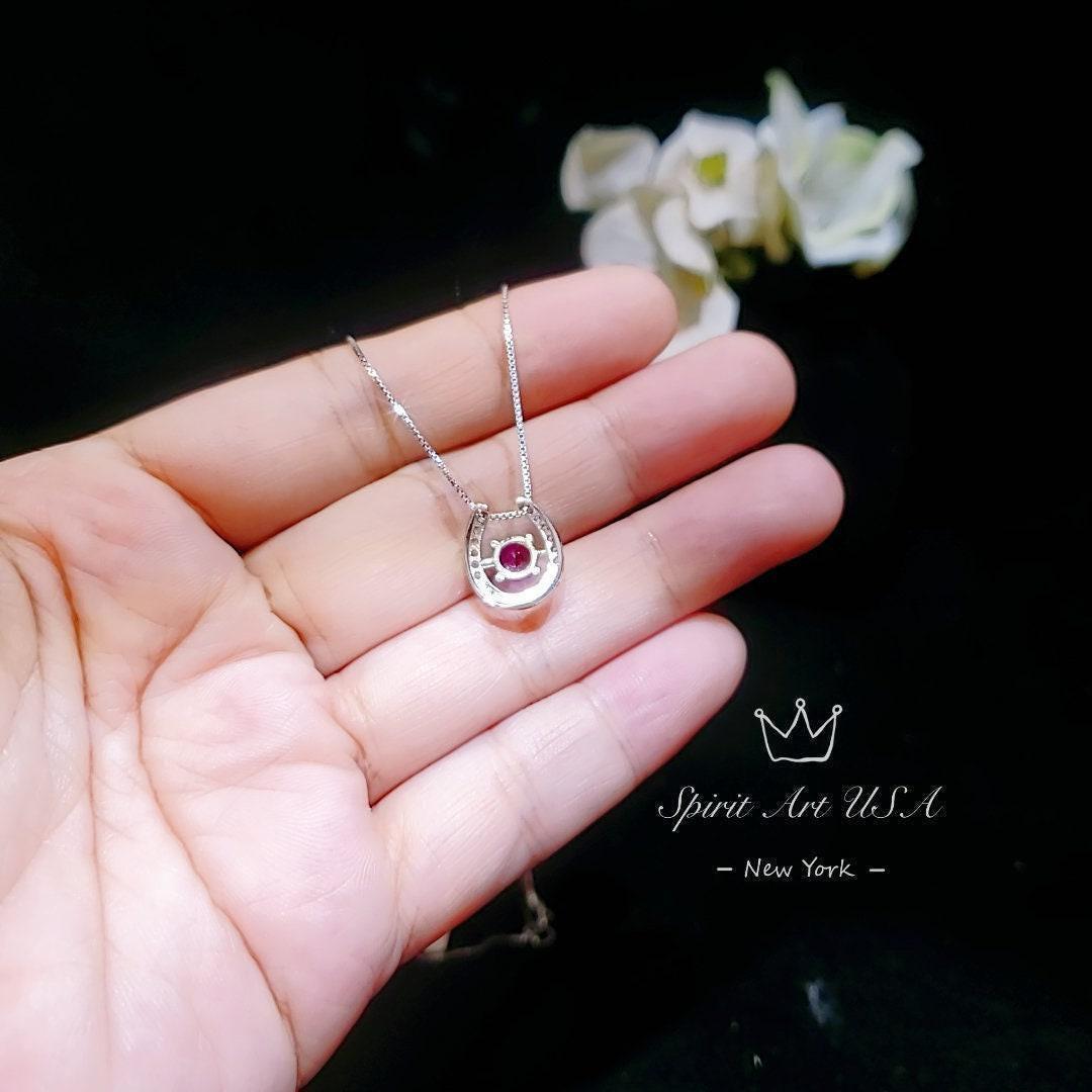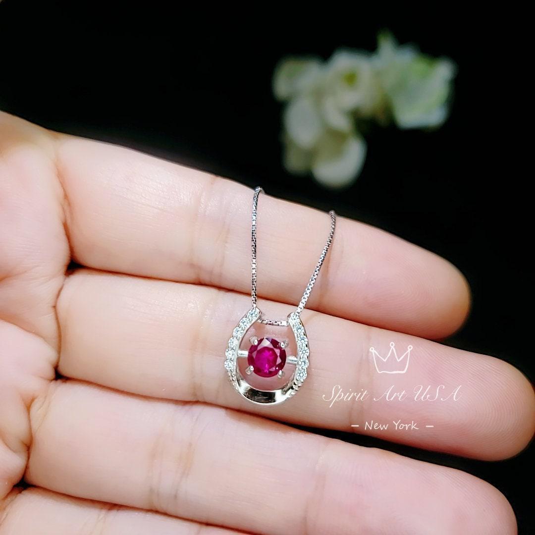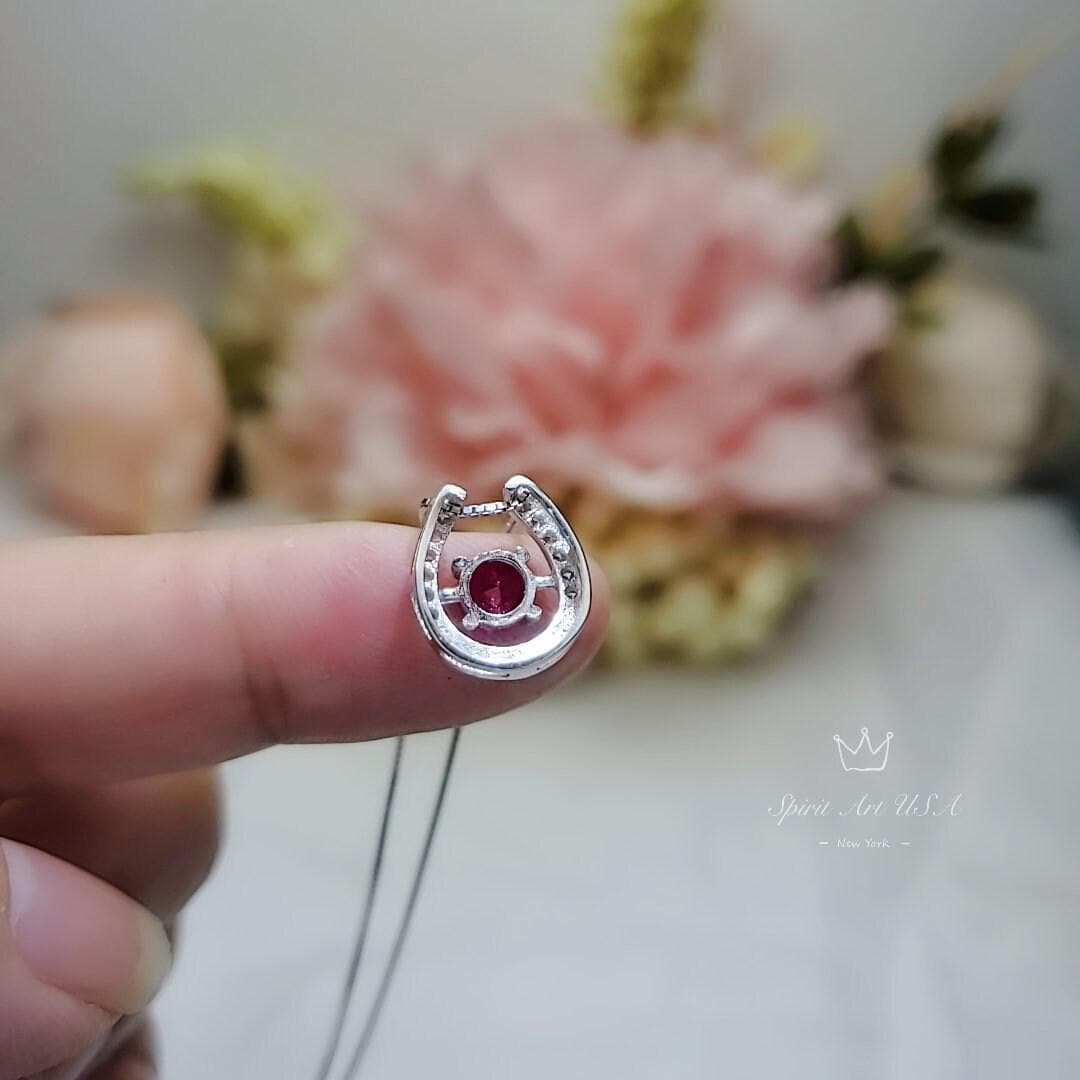 Tiny Ruby Necklace Horse shoe style round cut