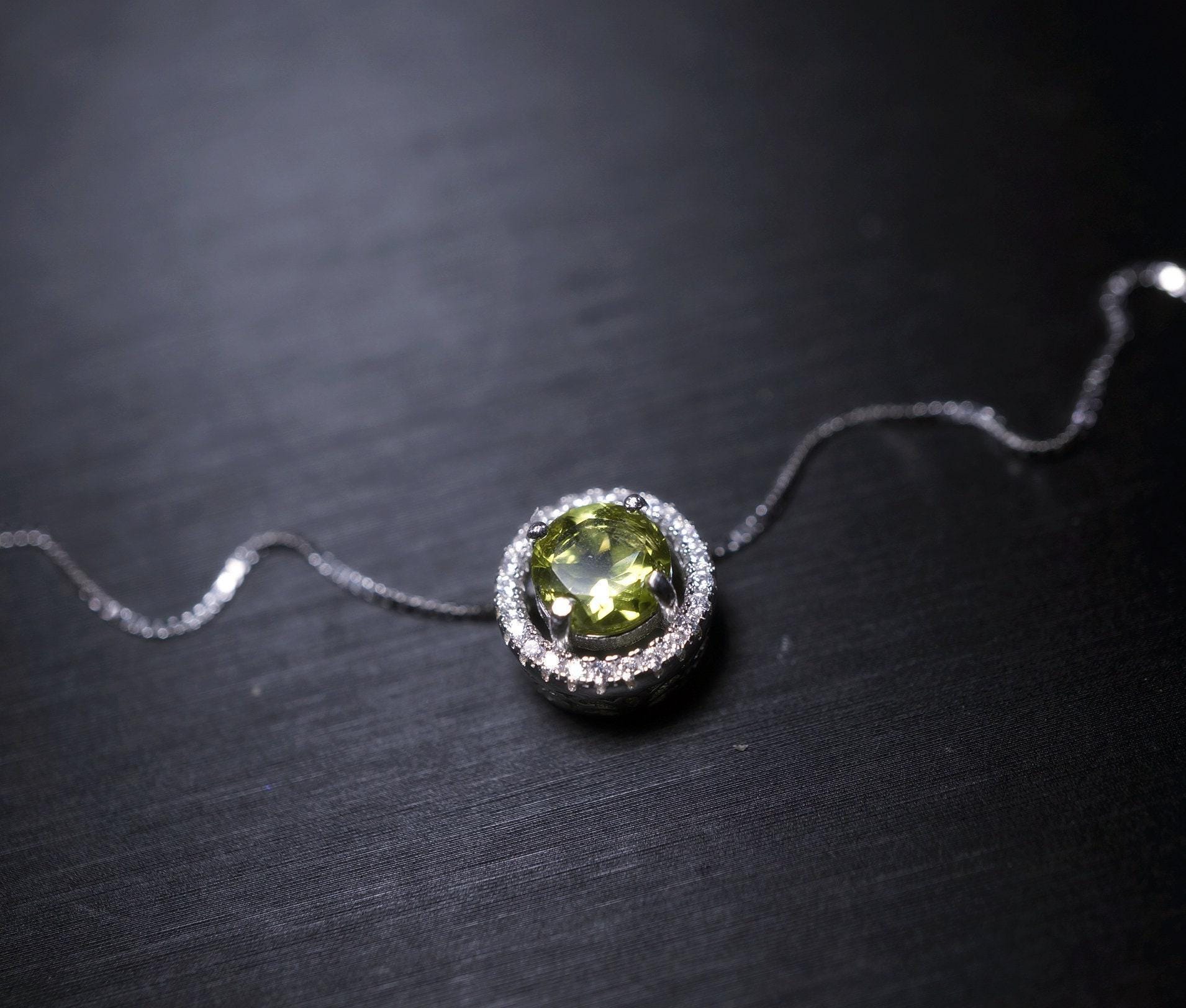 Discover the beauty of our Genuine Tiny Peridot Necklace, an exclusive design from Spirit Art USA studio, proudly registered with the USPTO. Each piece features a unique artisan design crafted with 18K Gold Plating over Solid 925 Sterling Silver, ensuring quality and elegance.