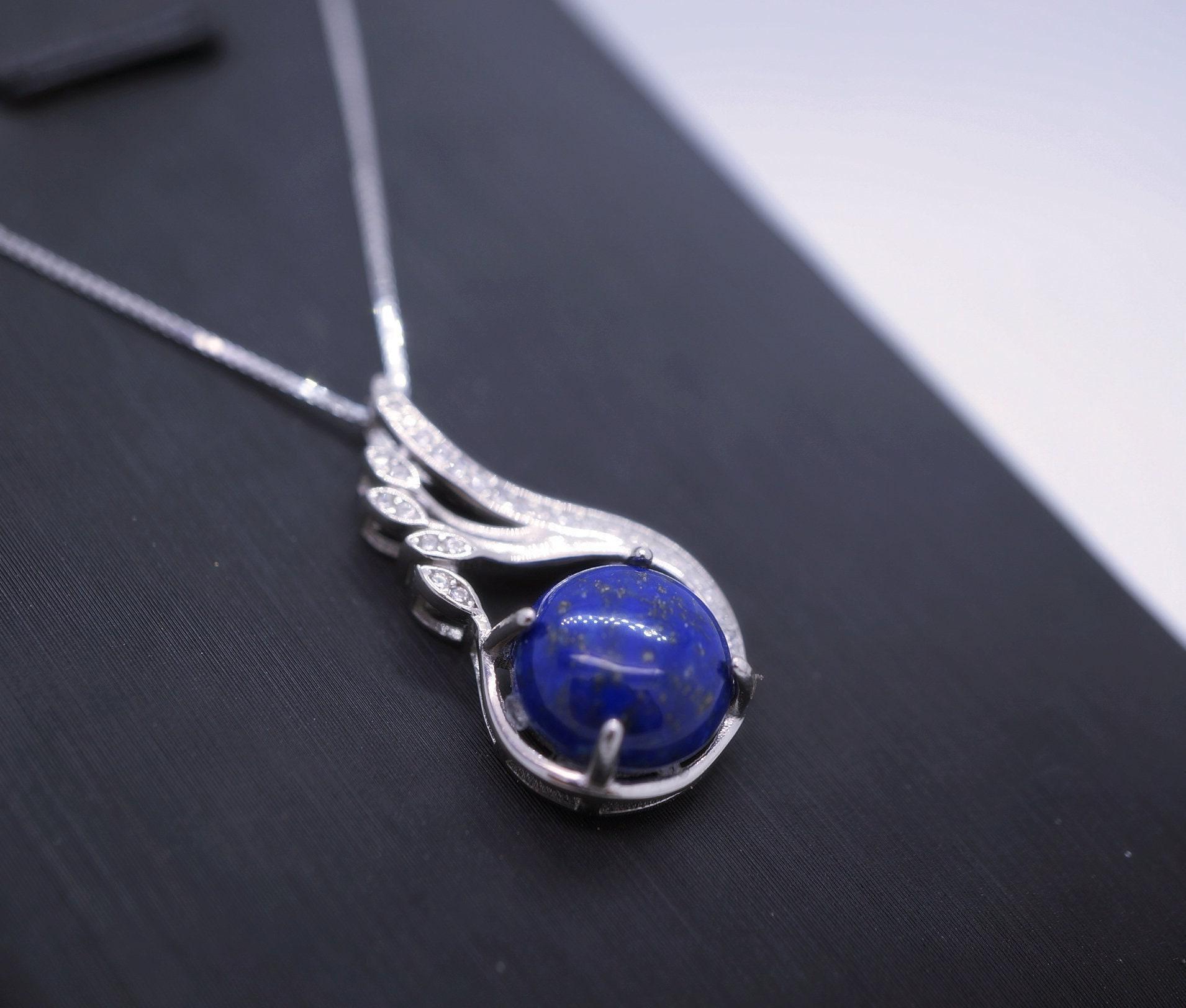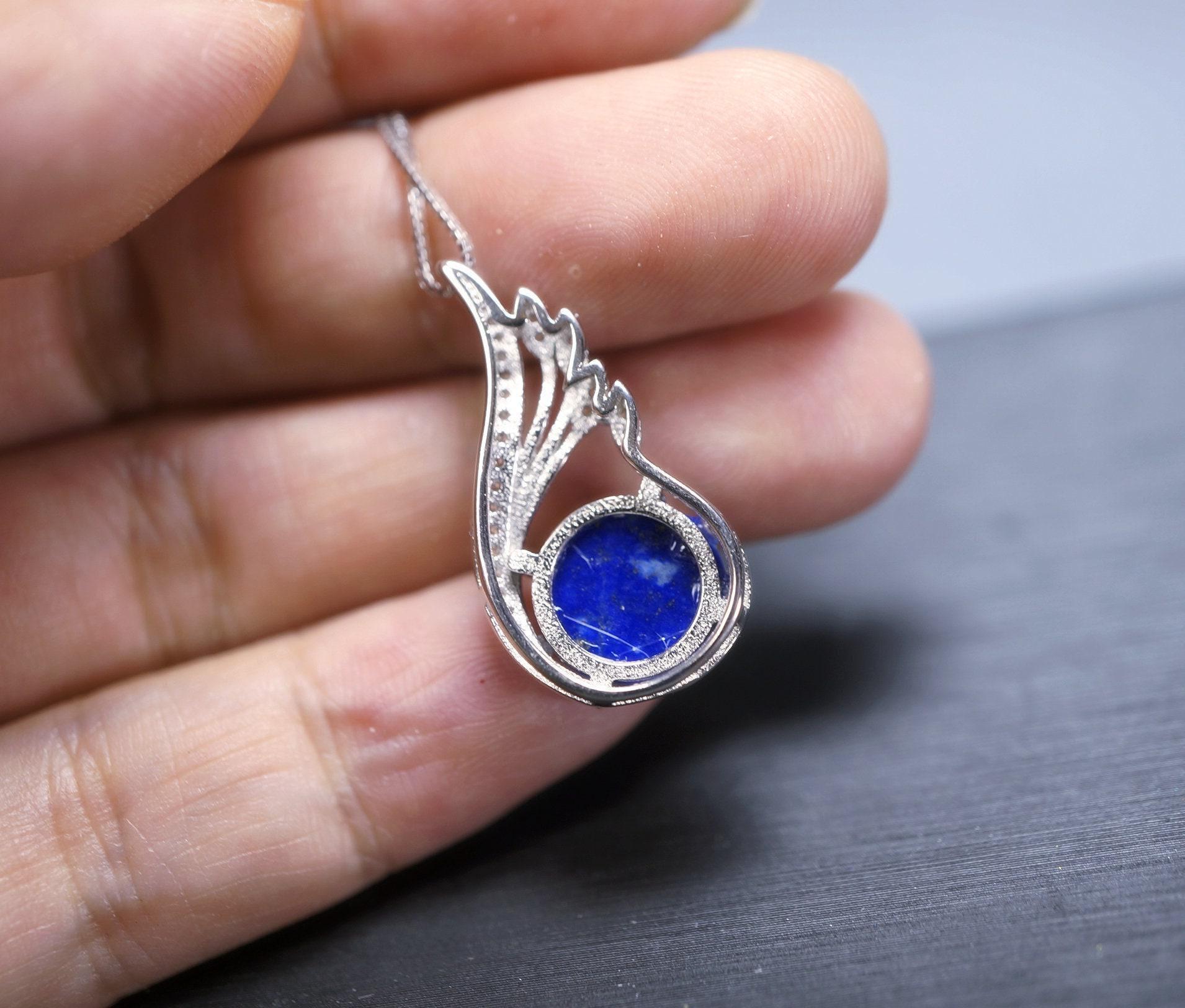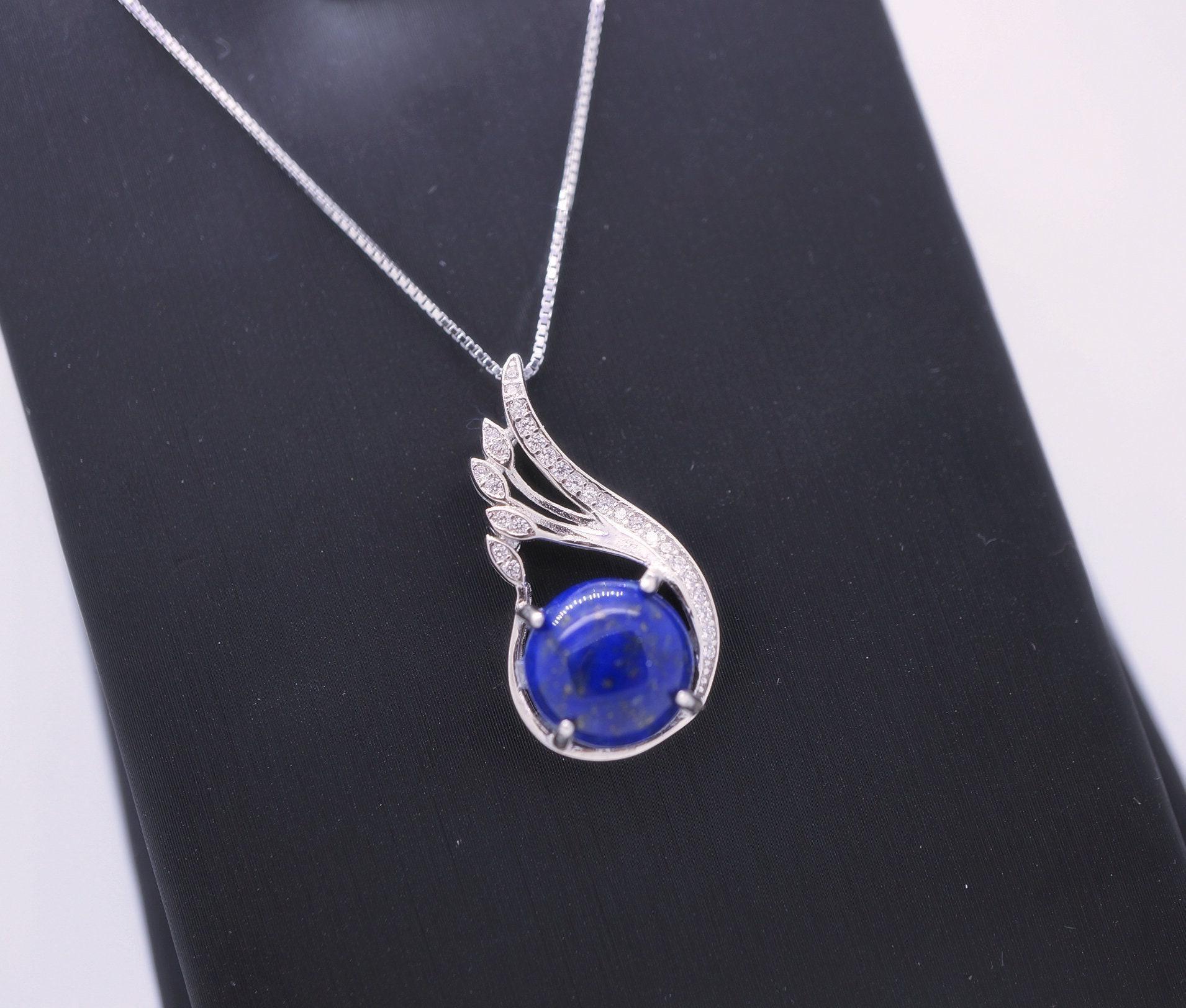 Lapis Lazuli Necklace teardrop blue stone sterling silver stone necklace