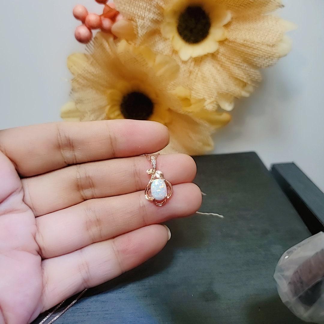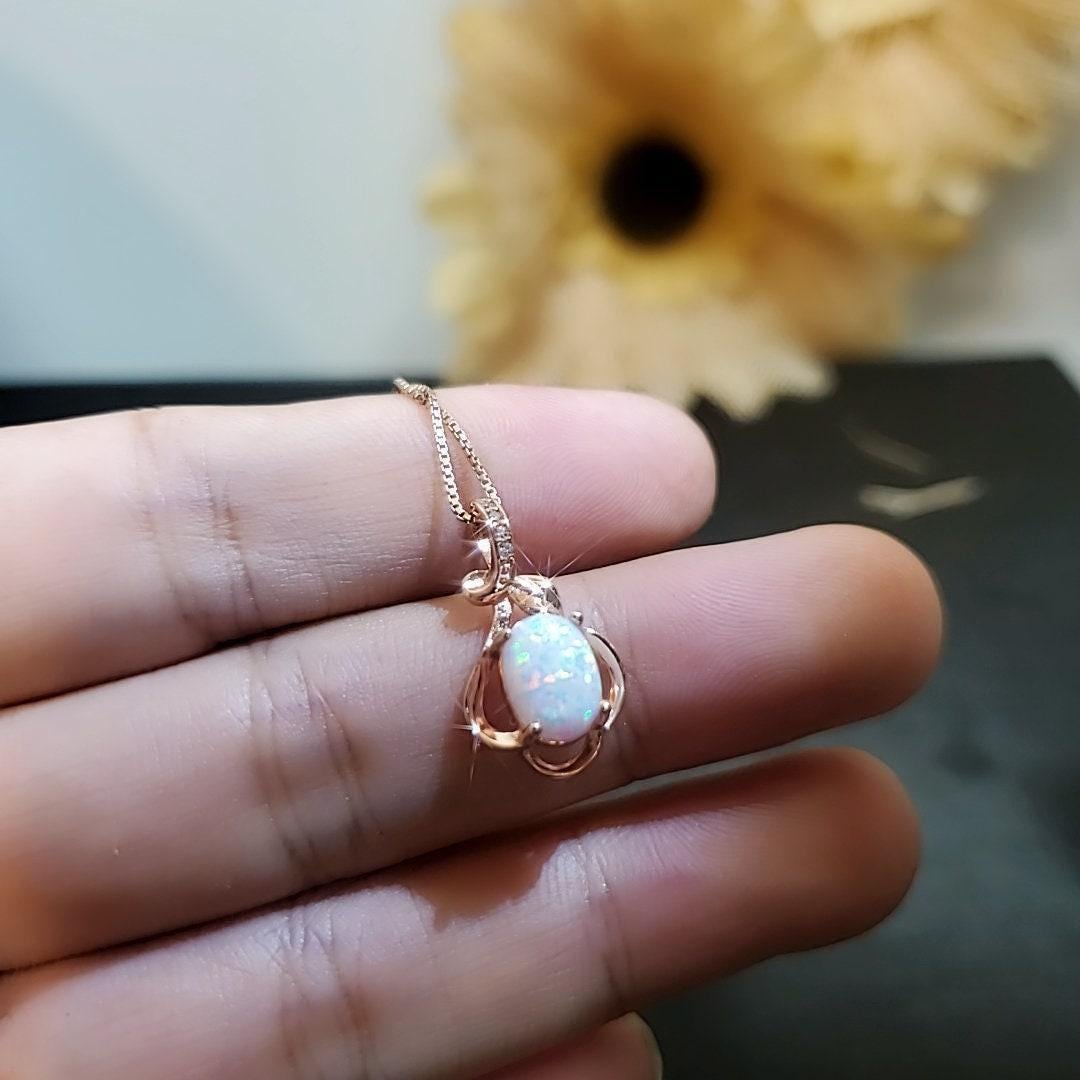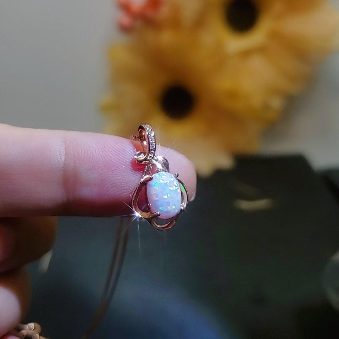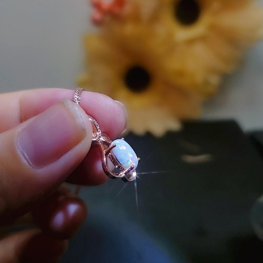 Delicate Fire Opal Necklace, Rose Gold Over Sterling Silver High quality full sterling silver Opal jewelry,