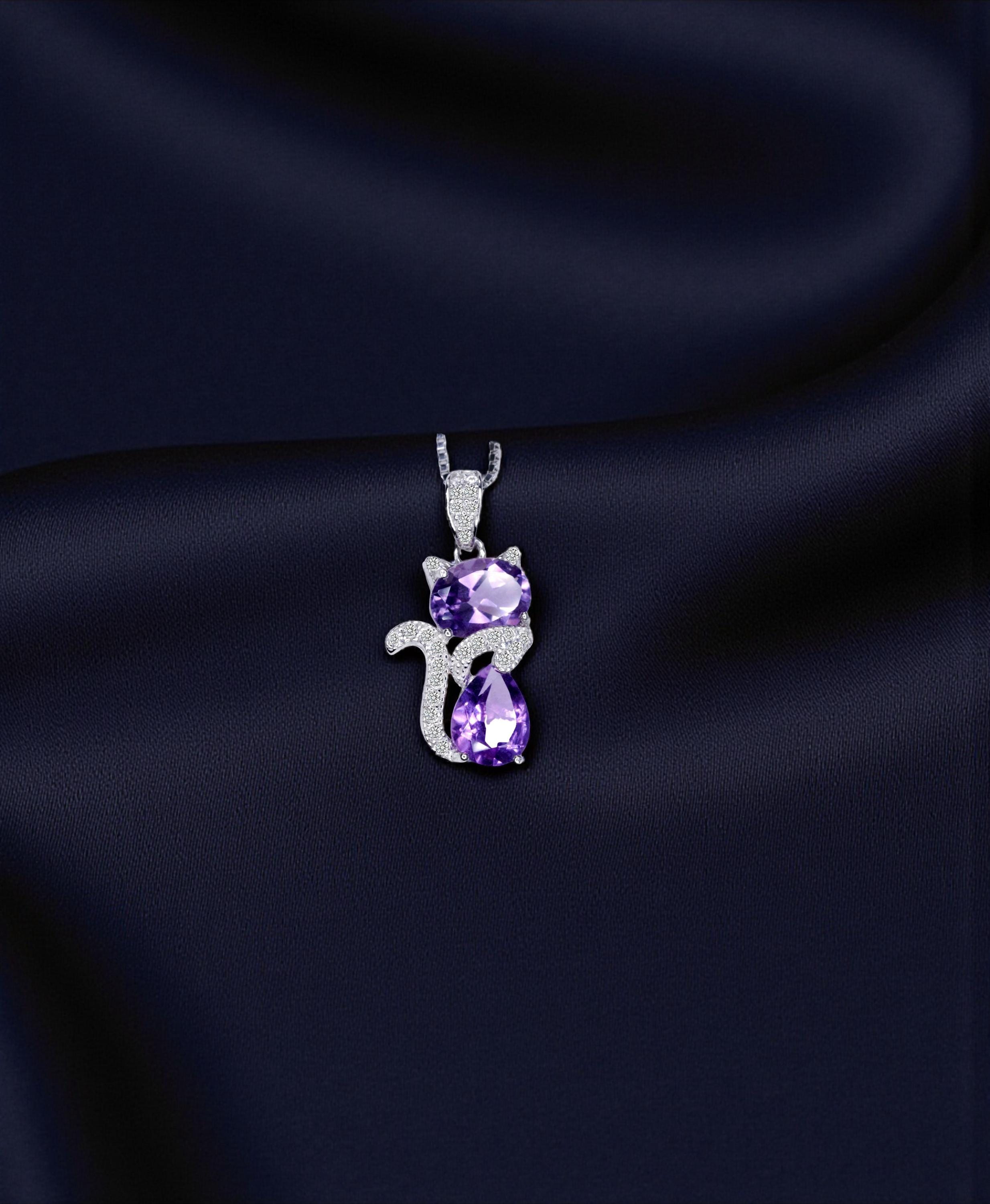 Genuine Amethyst Necklace Cat Pendant Sterling silver made.