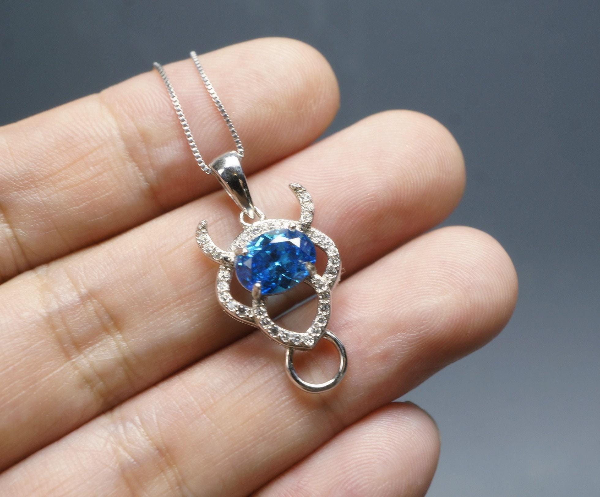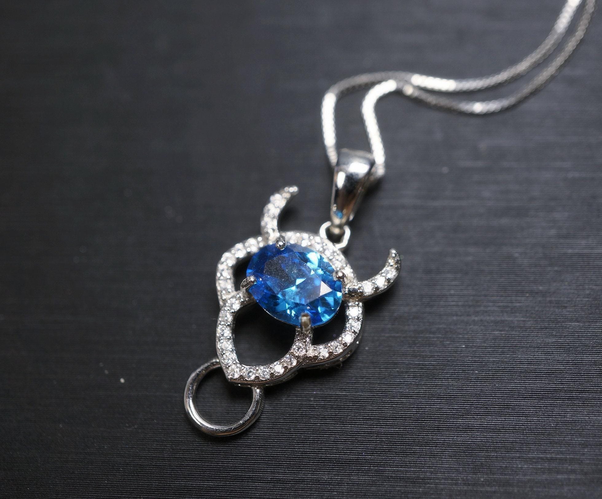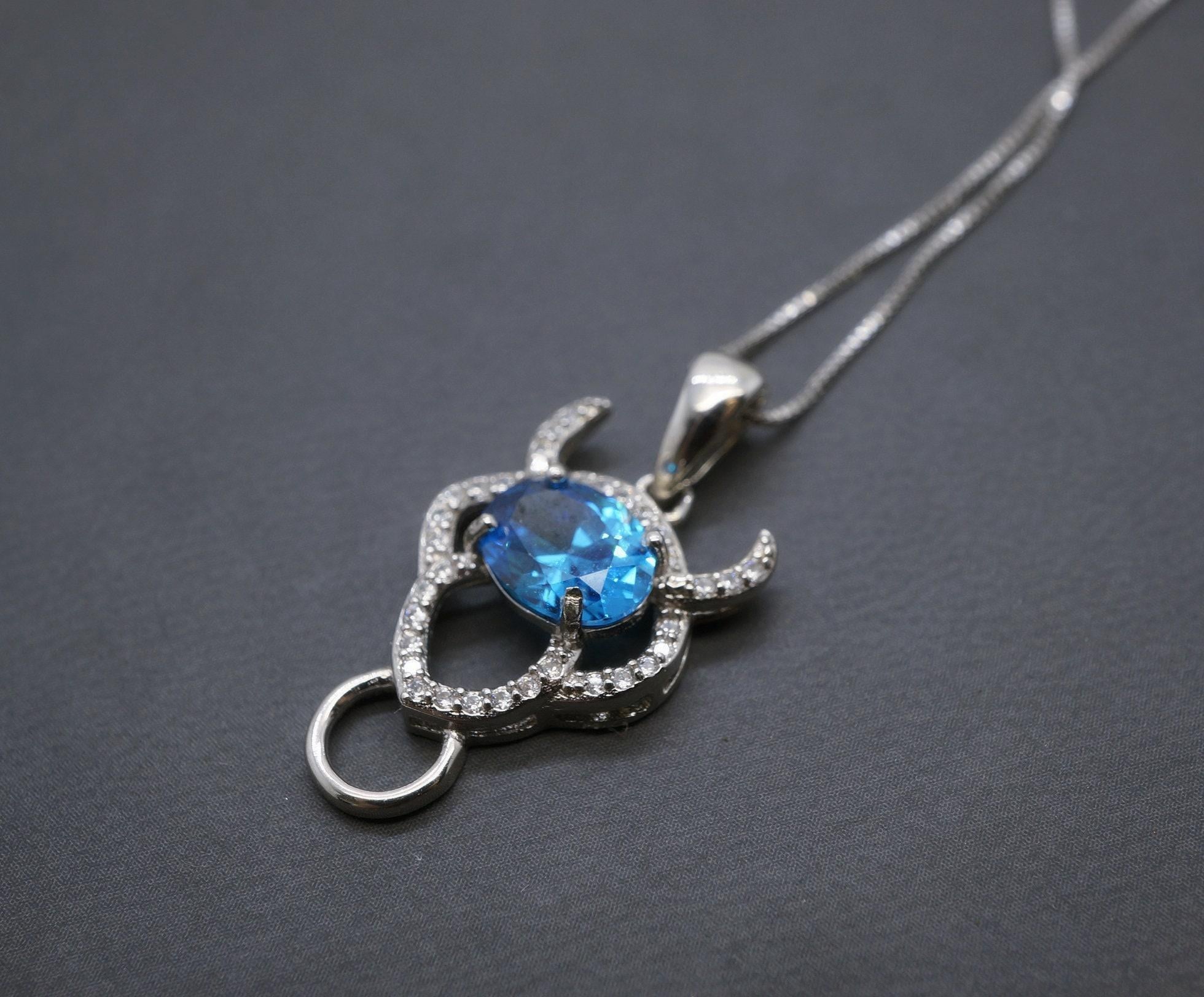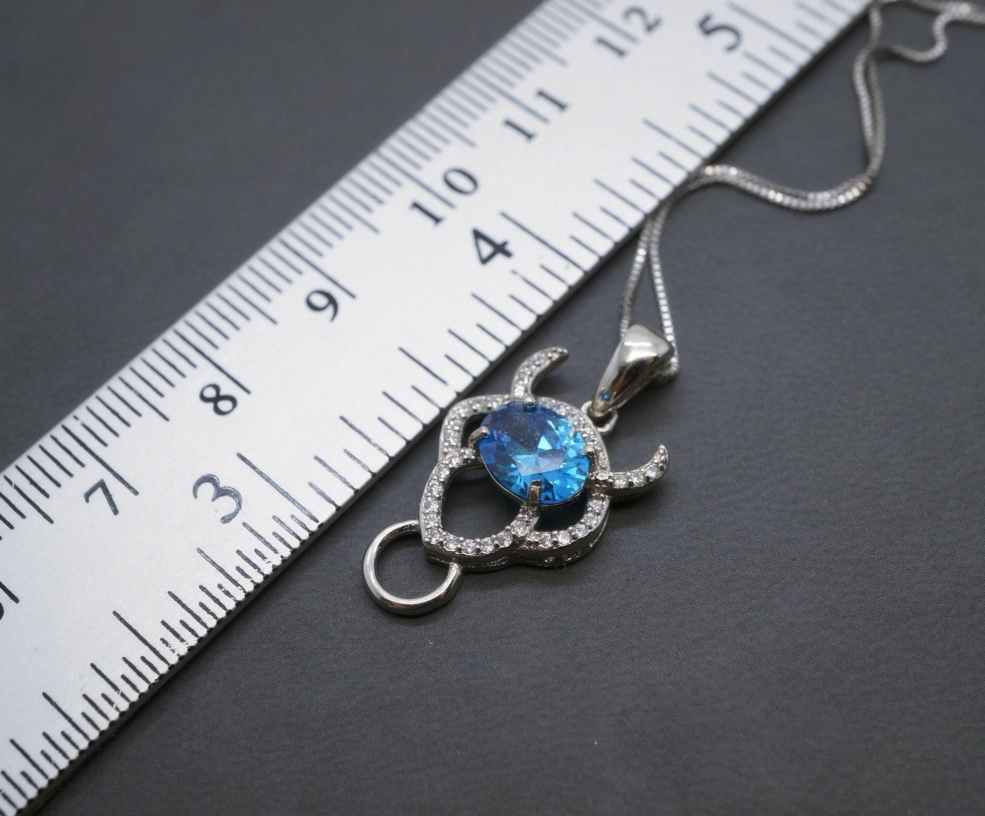 Blue Topaz Necklace - Sterling Silver Bull Ox Pendant Tauren Cow Skull - Blue Topaz Jewelry - 18kgp