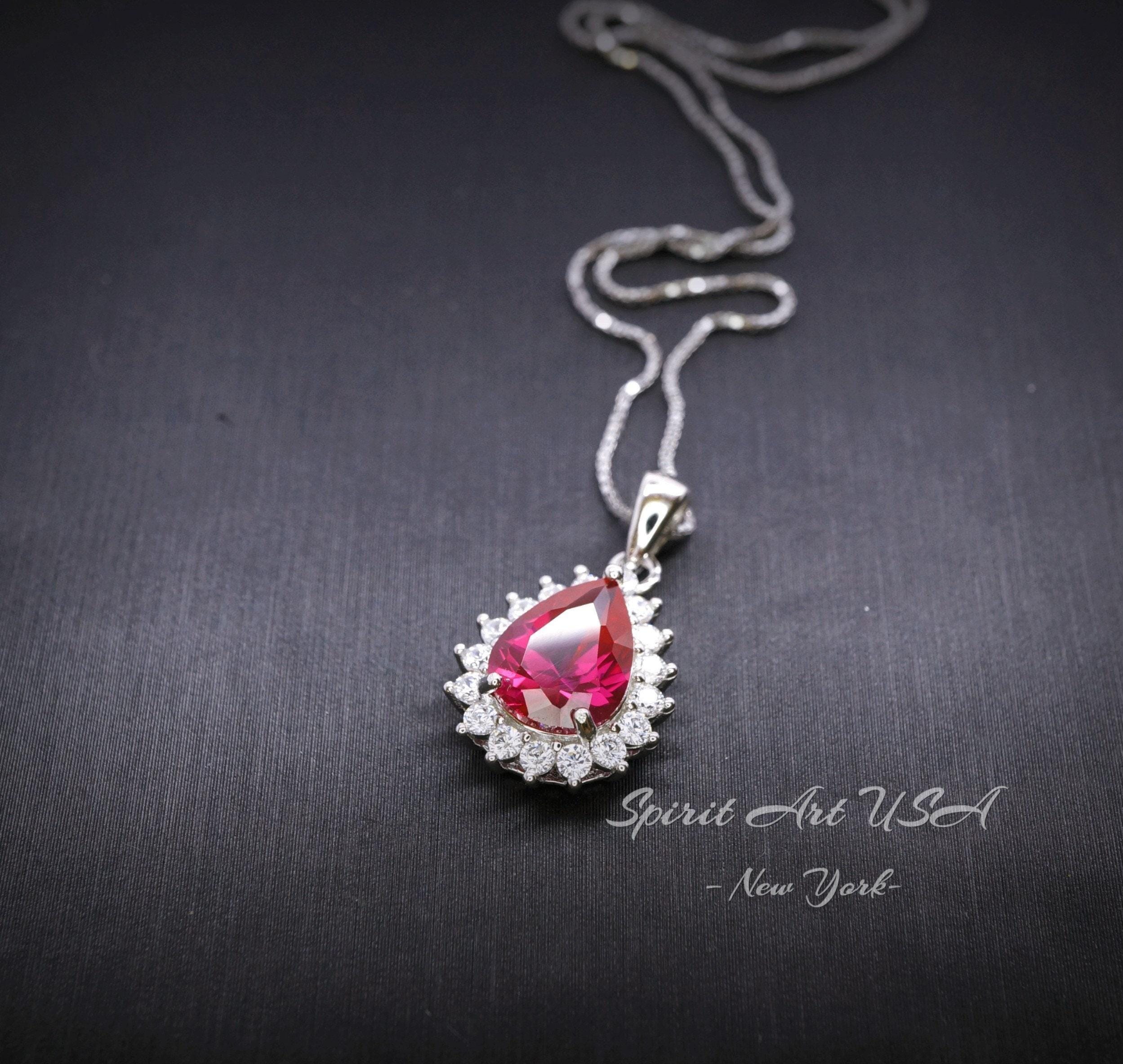 Sample Solitaire Halo Teardrop Ruby Necklace
