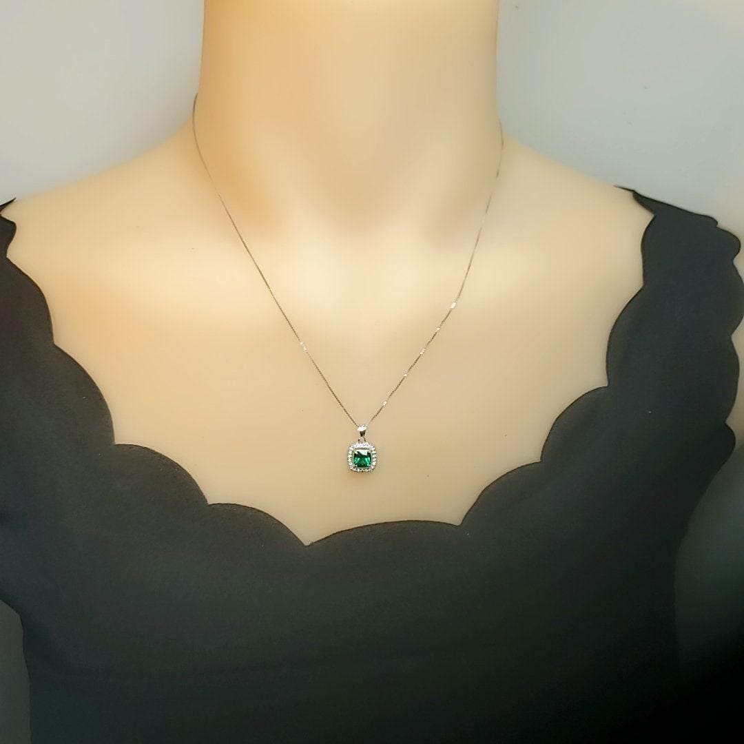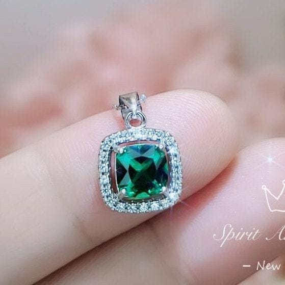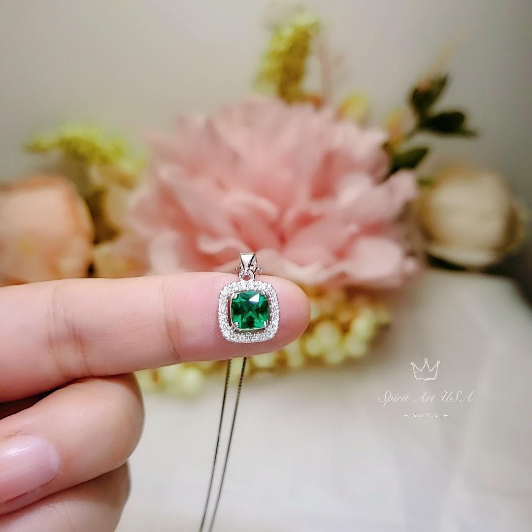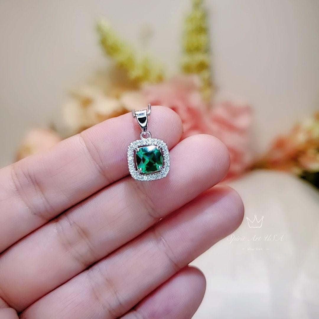 tiny 6mm green emerald pendant full sterling silver made