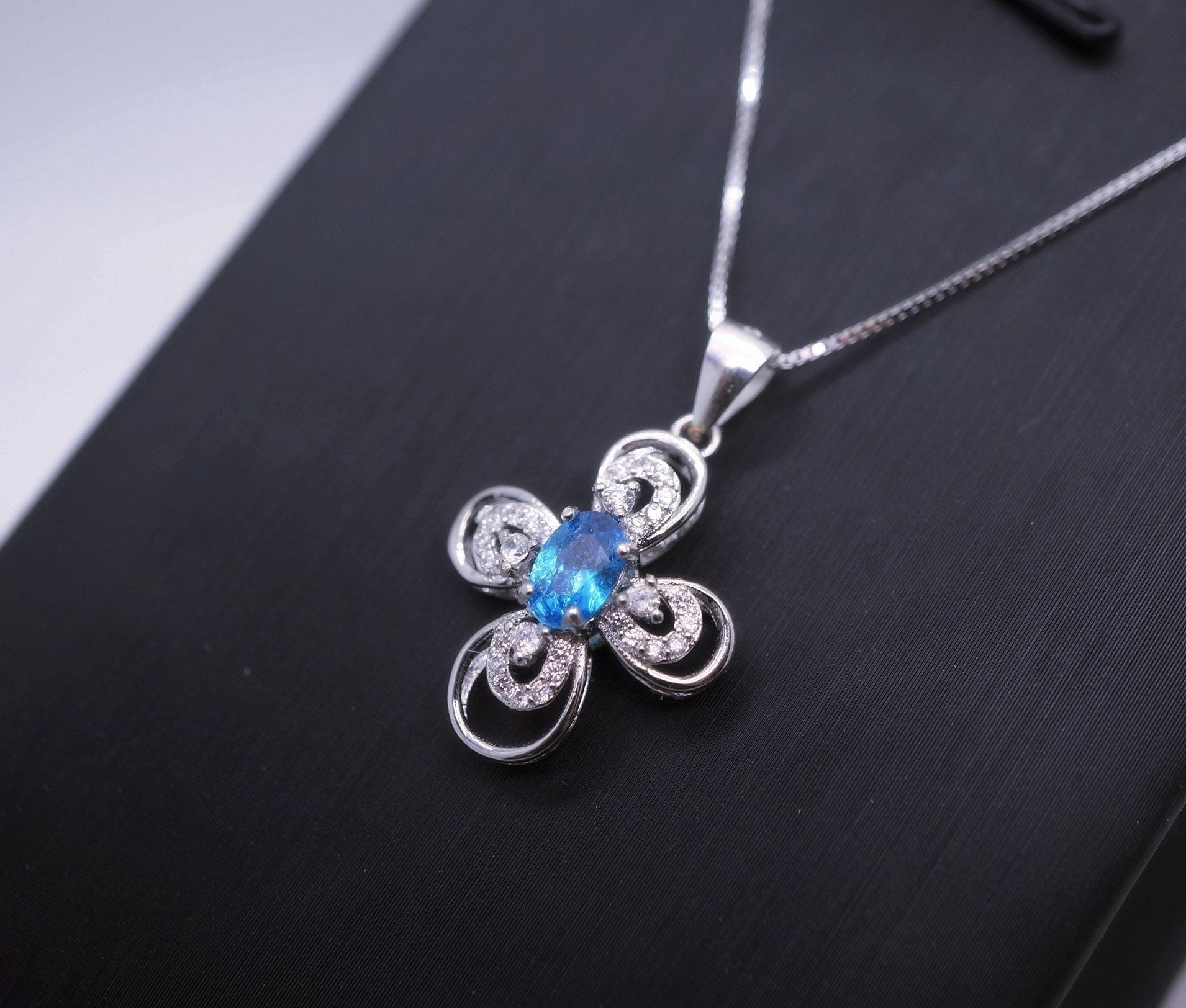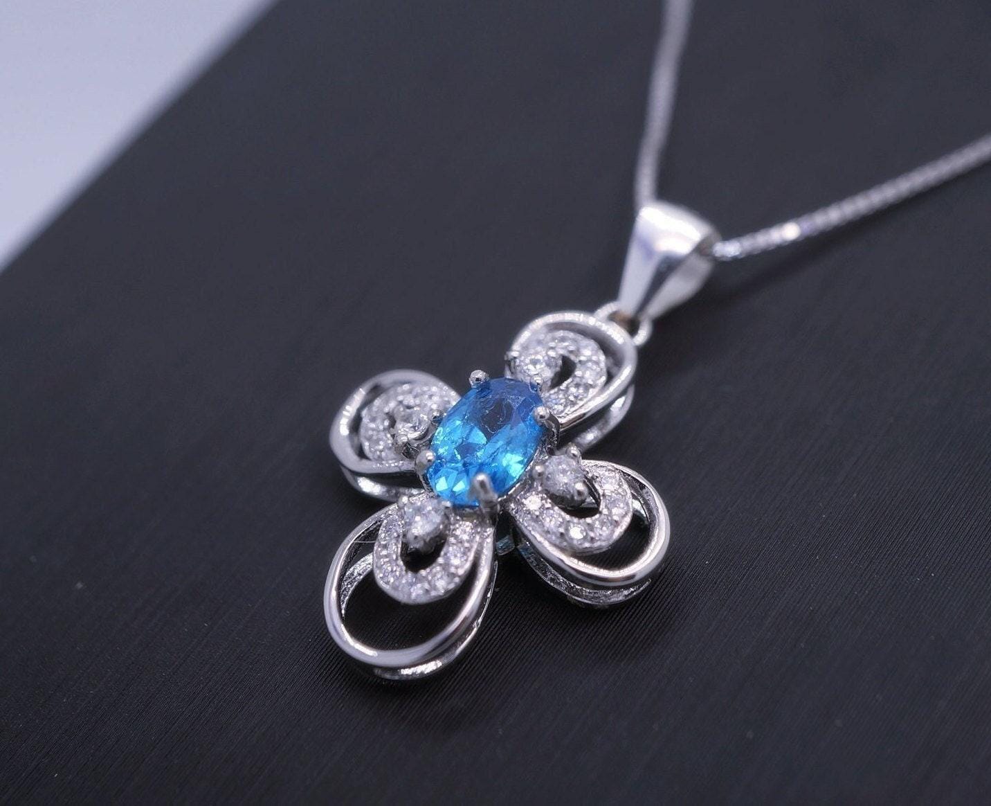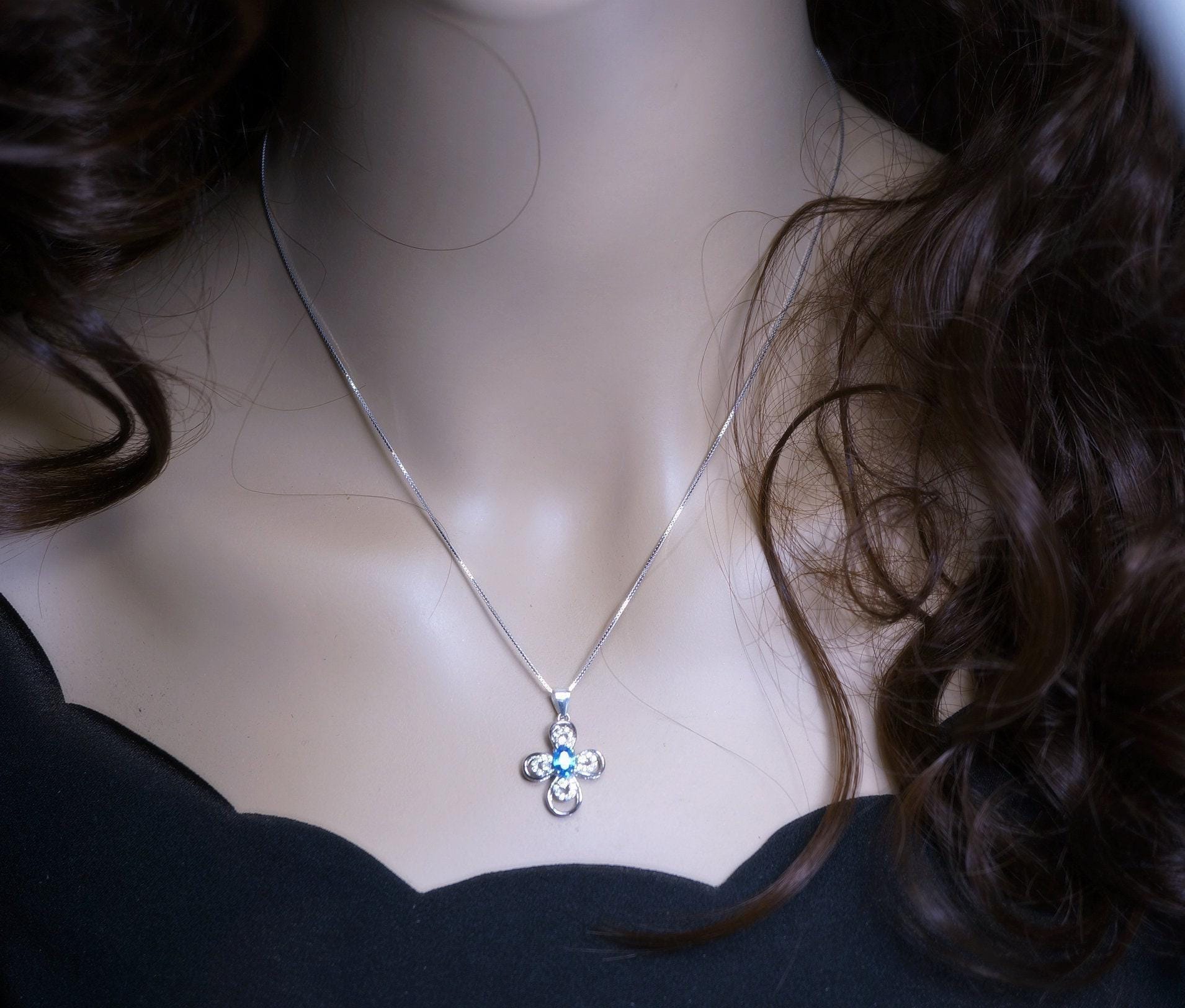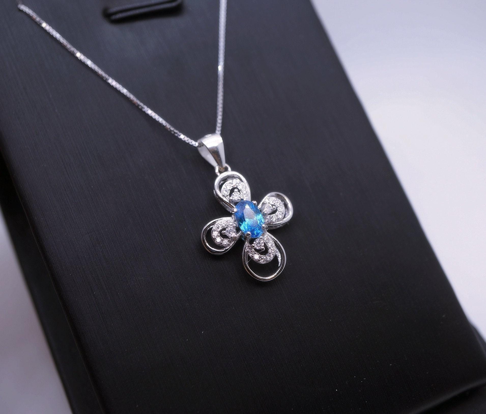 Blue Topaz sterling silver flower cross sterling silver made