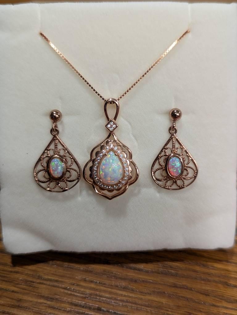 Fire Opal Jewelry gordeous Rose gold CoatedTeardrop Style