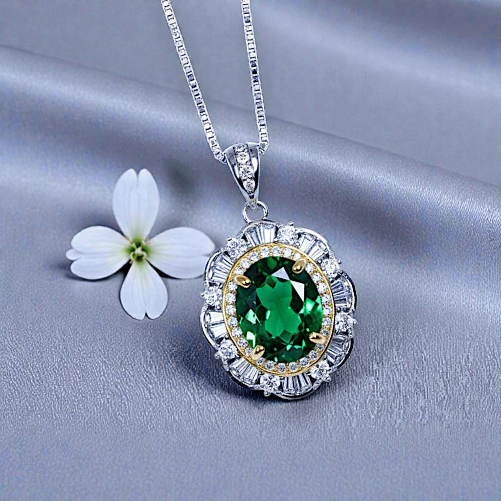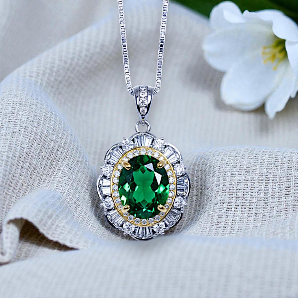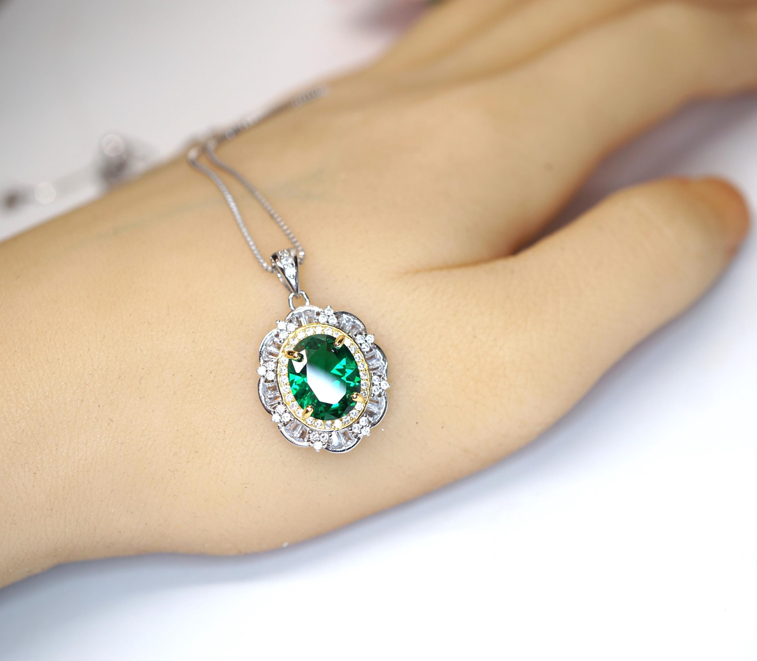 Large Emerald Jewelry Diamond Fower Style Oval Cut