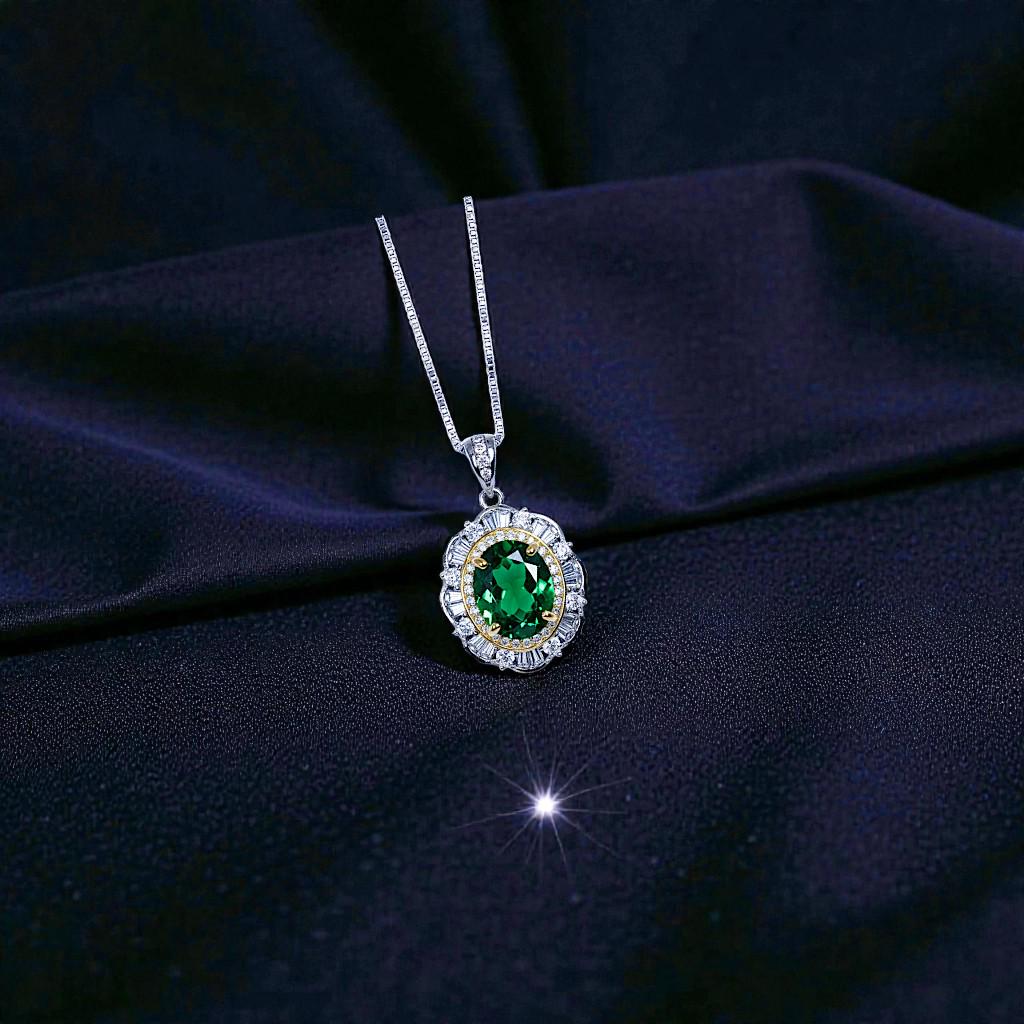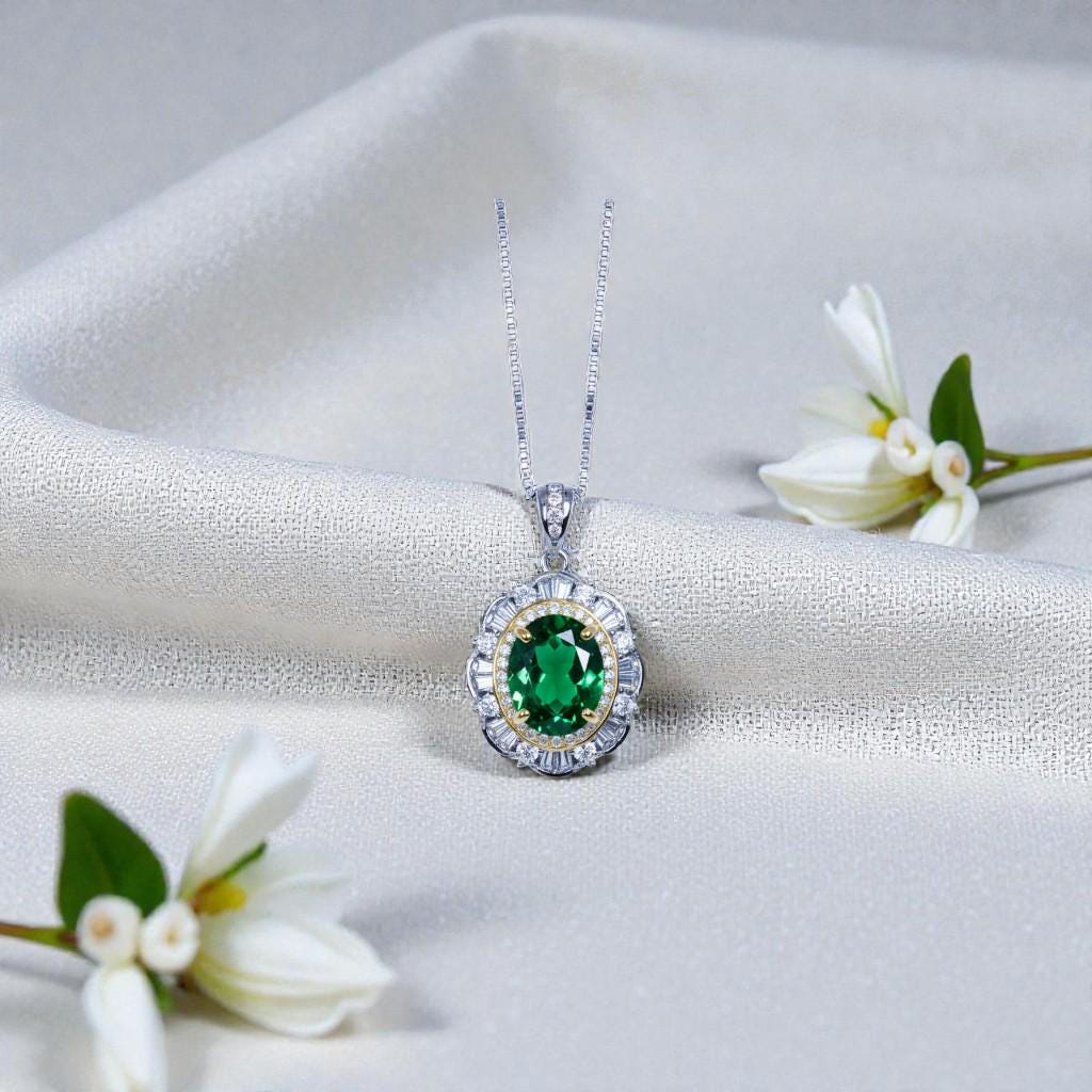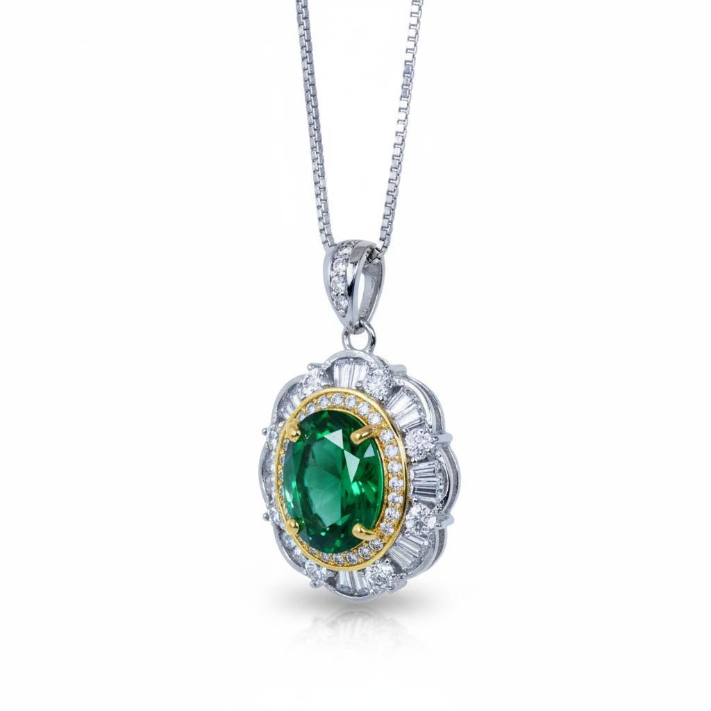 Large Emerald Jewelry Diamond Fower Style Oval Cut