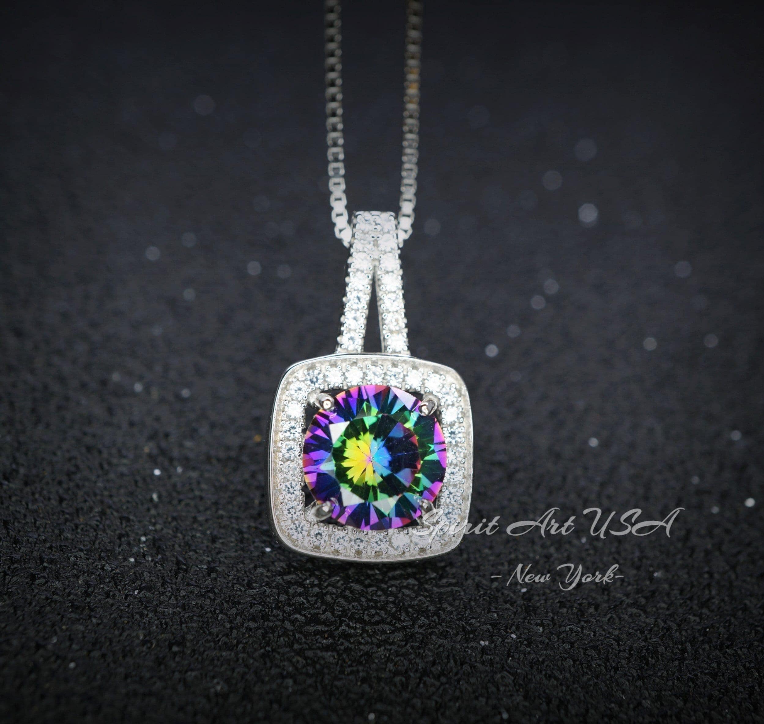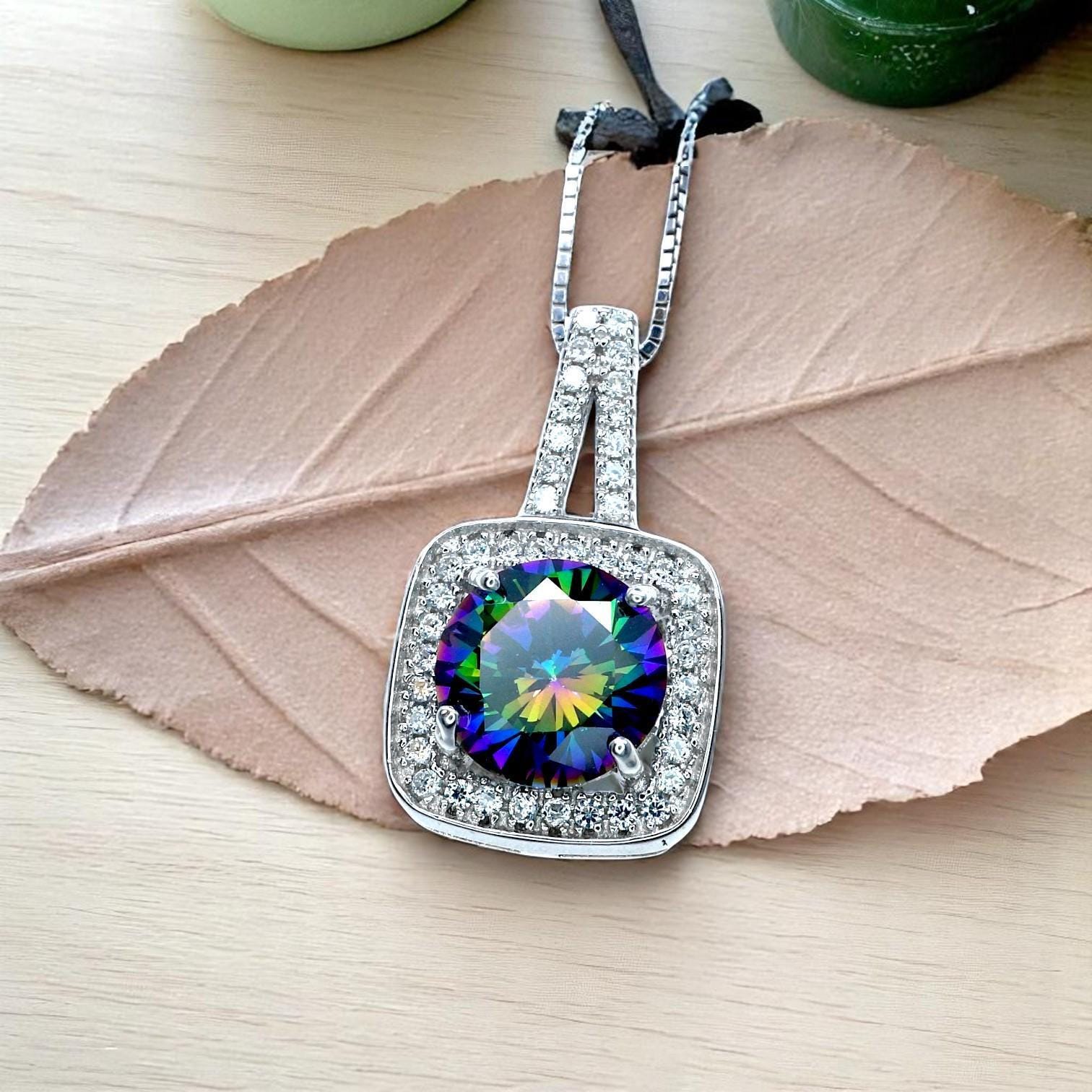 π Radiant Round Mystic Topaz Pendant Necklace β 18K Gold Plated Sterling Silver β Handmade, Meaningful, and One of a Kind