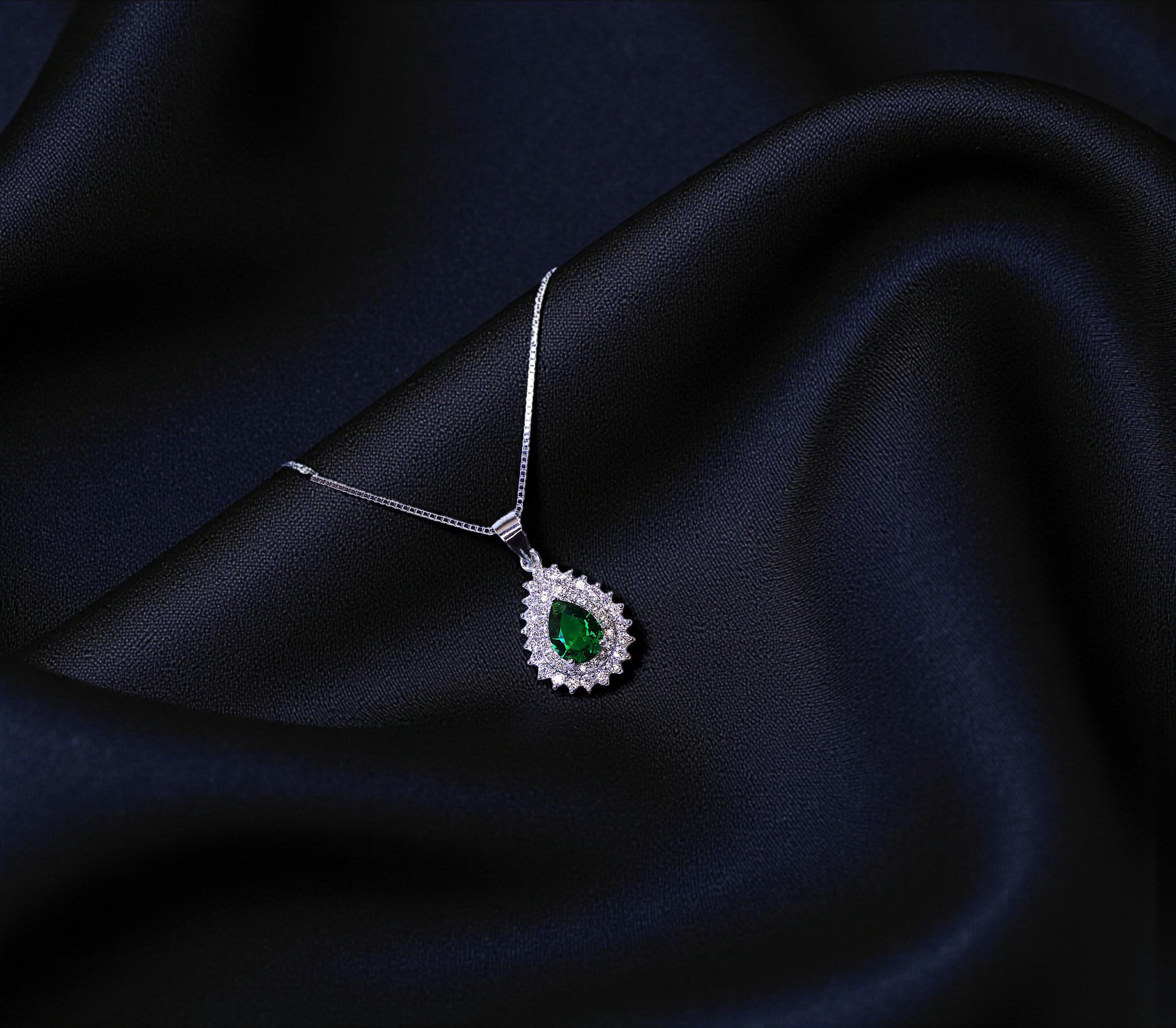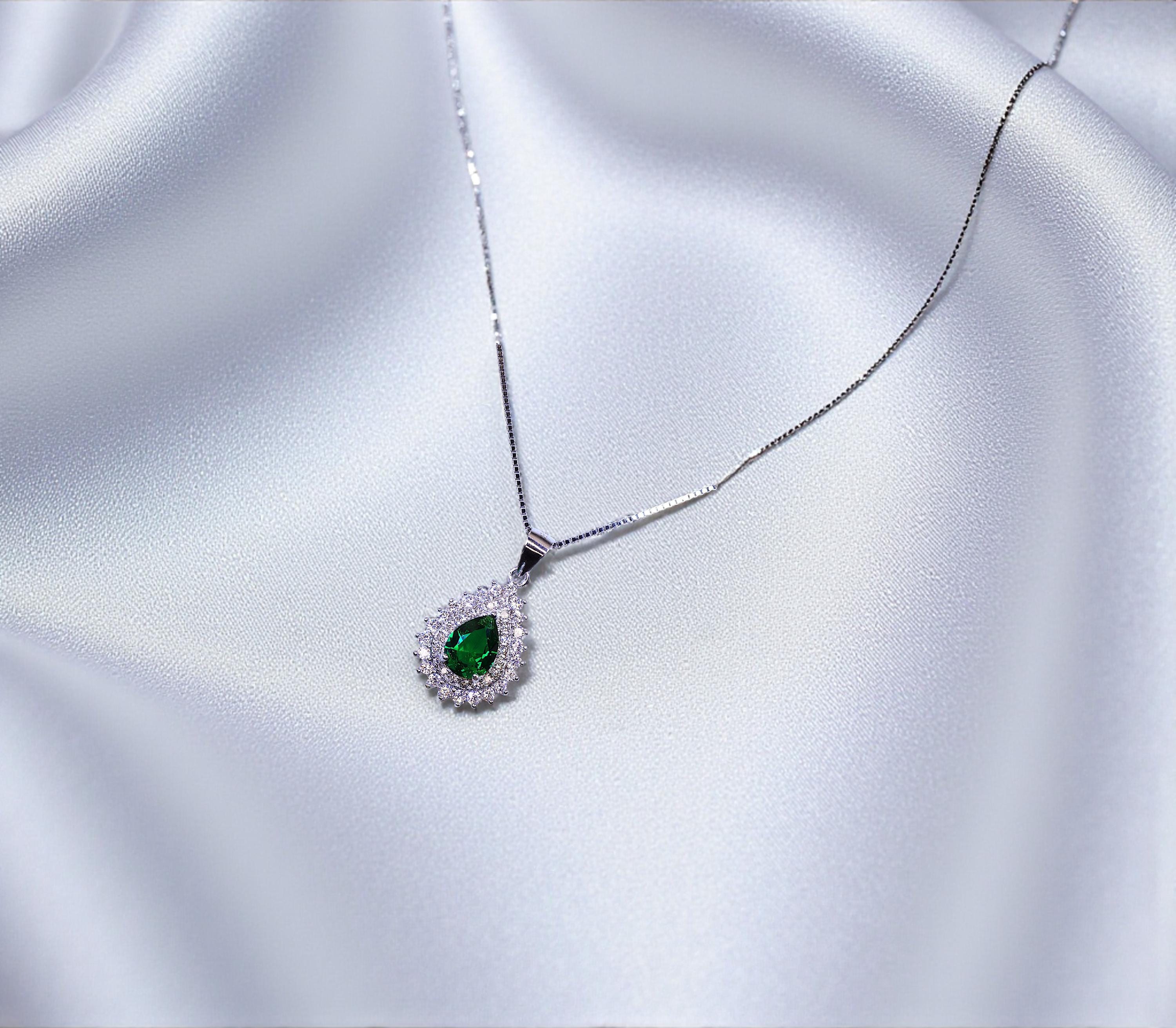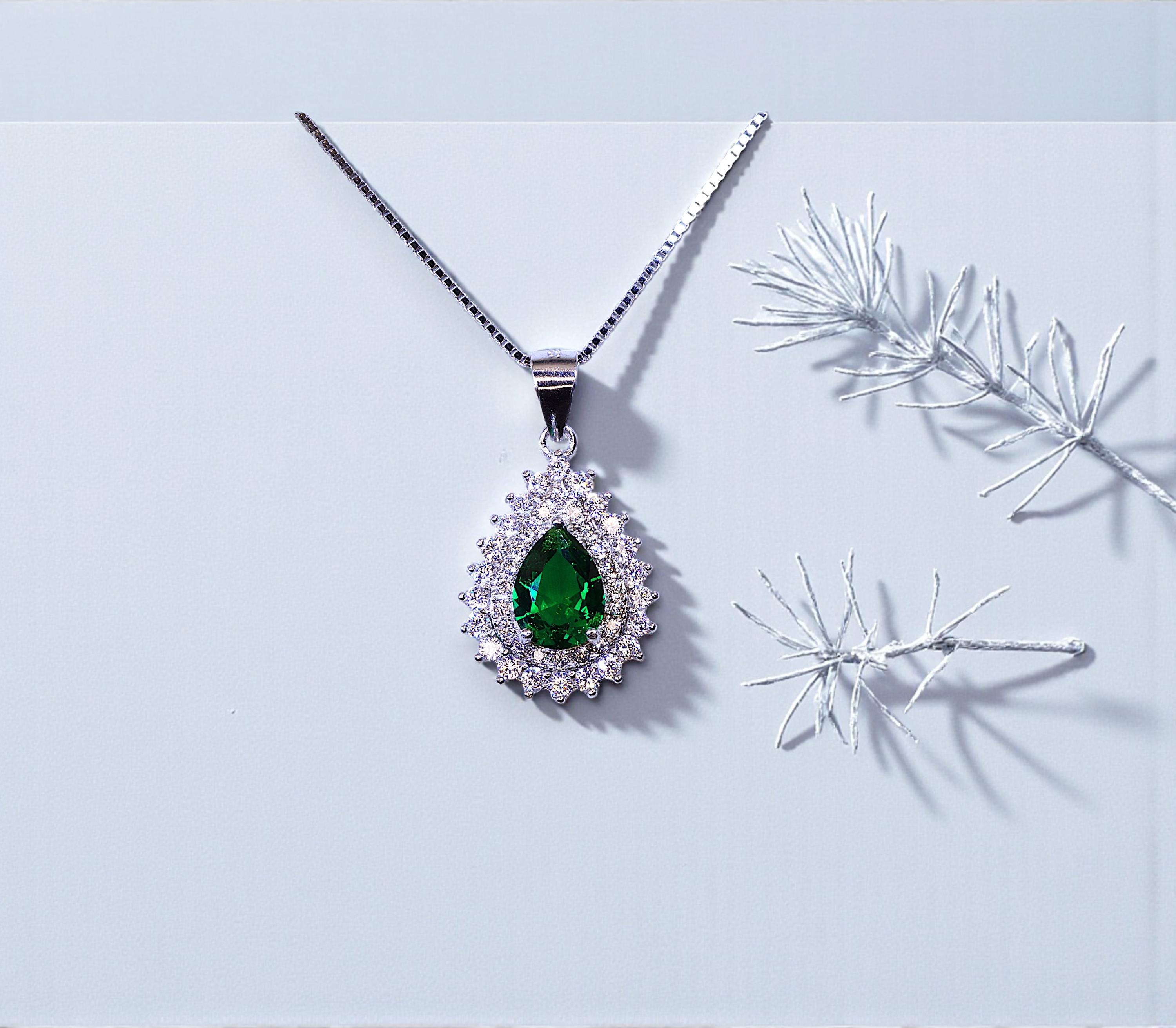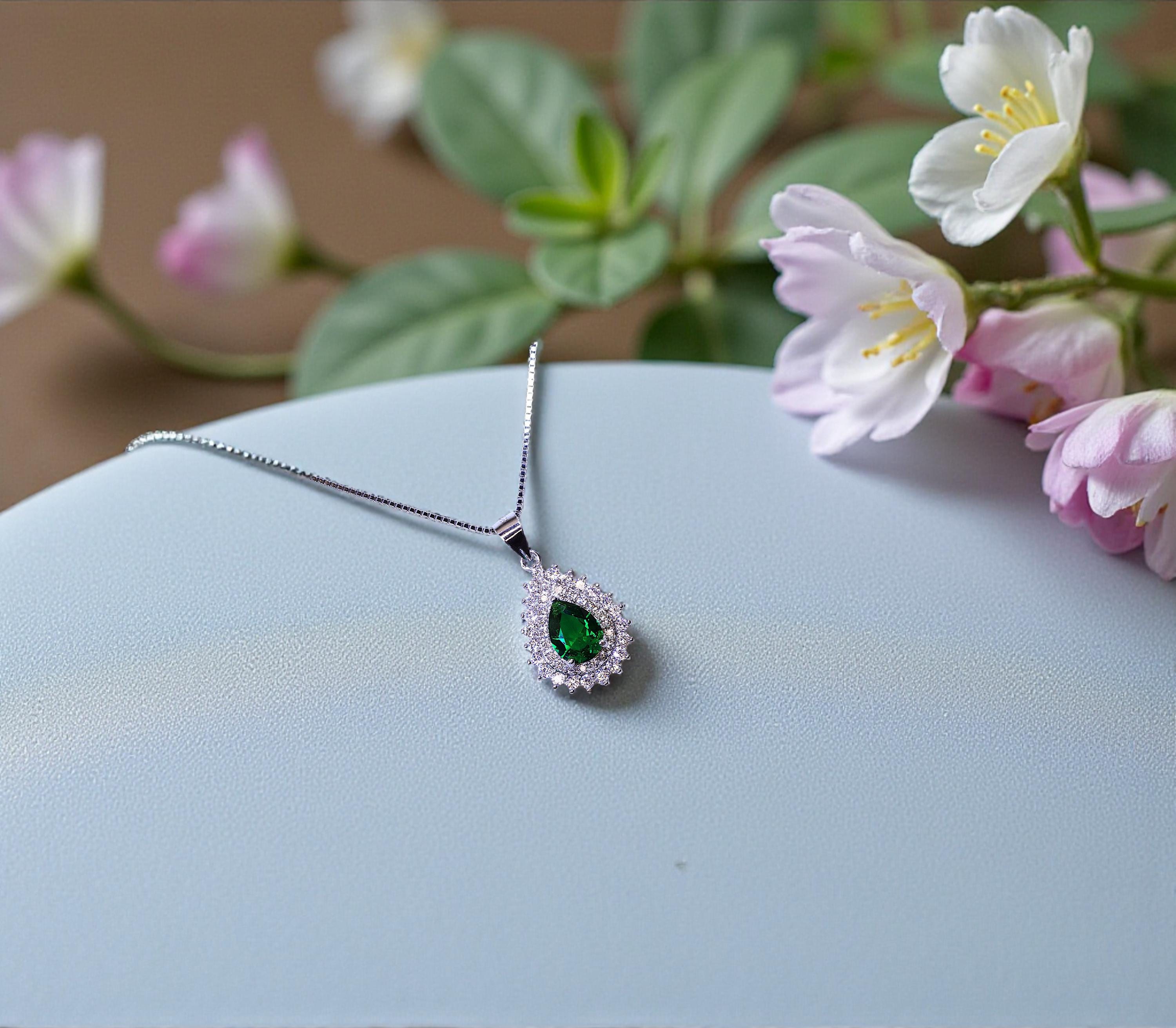 Emerald Necklace Delicate double teardrop halo Style