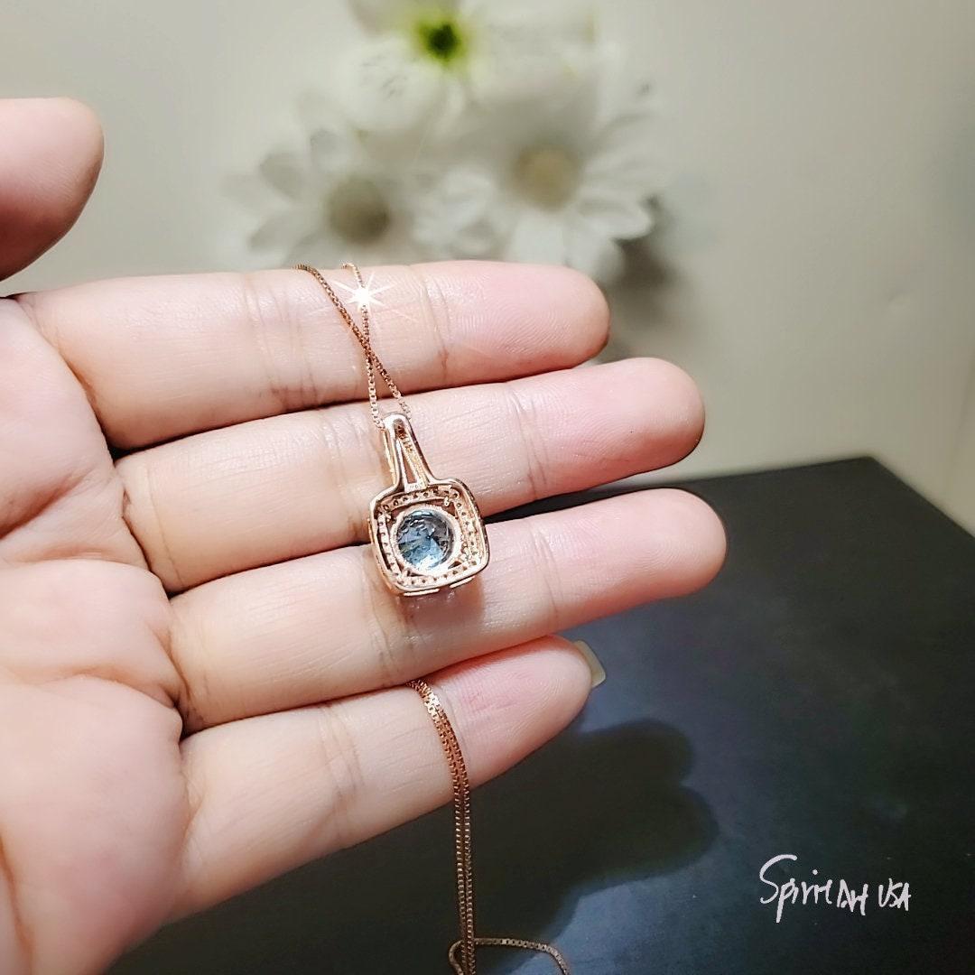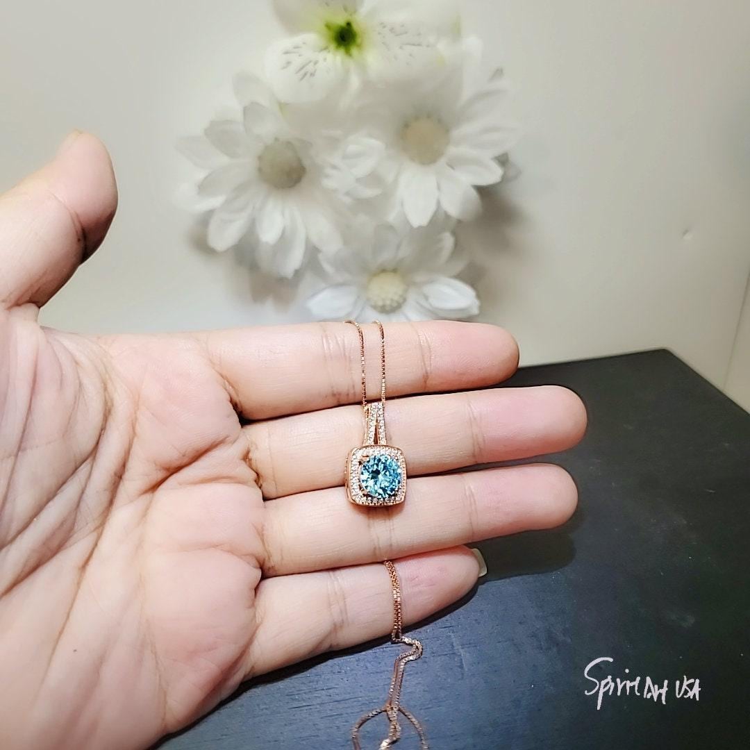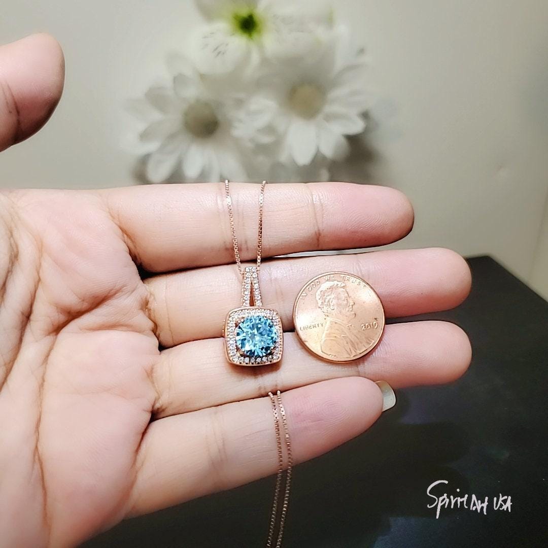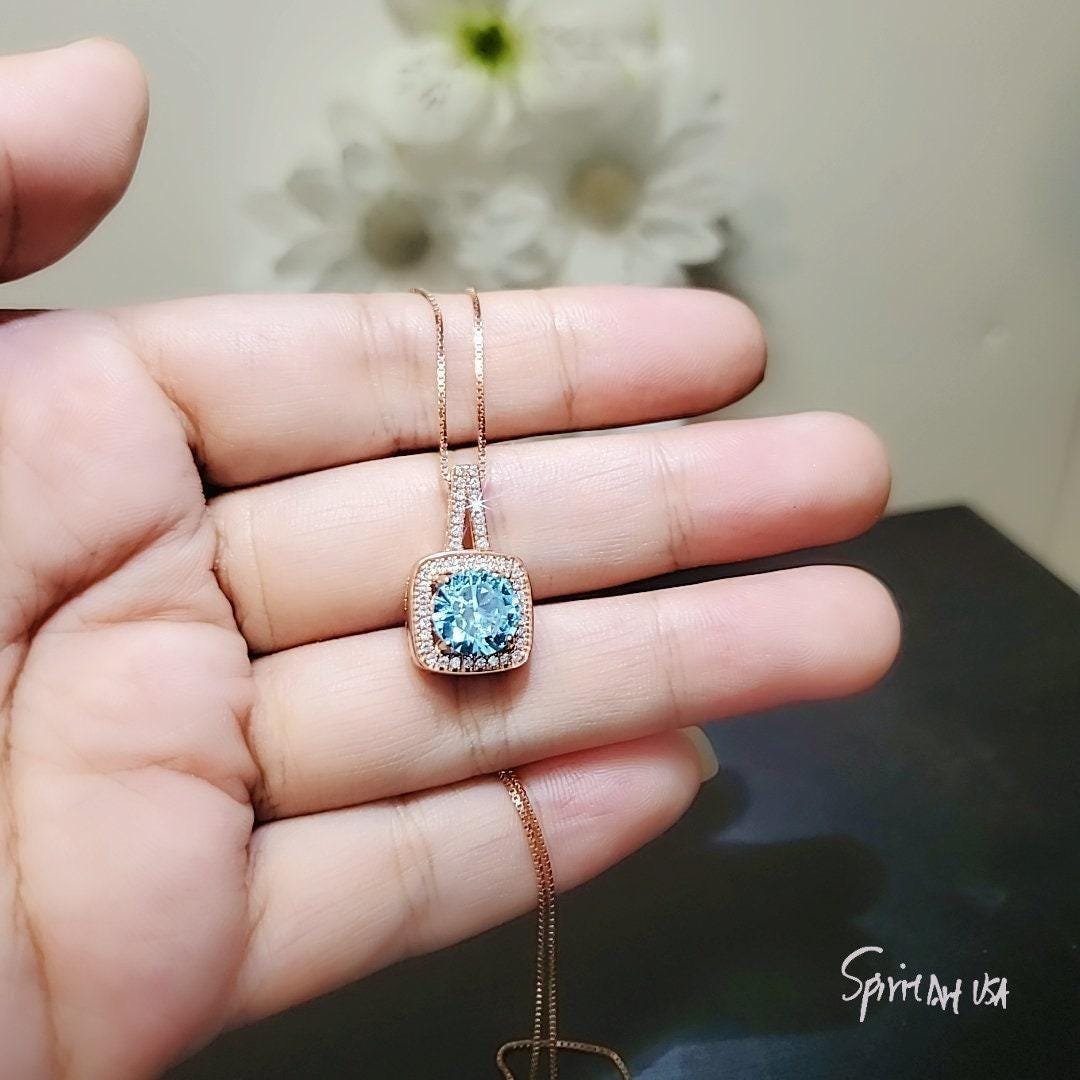Main stone:8mm Lab created blue aquamarine 2CT