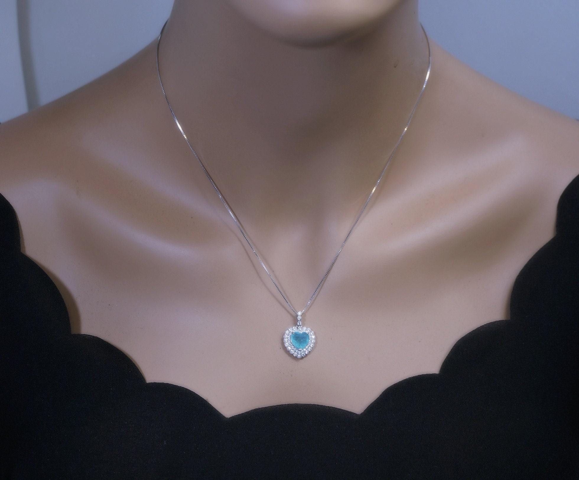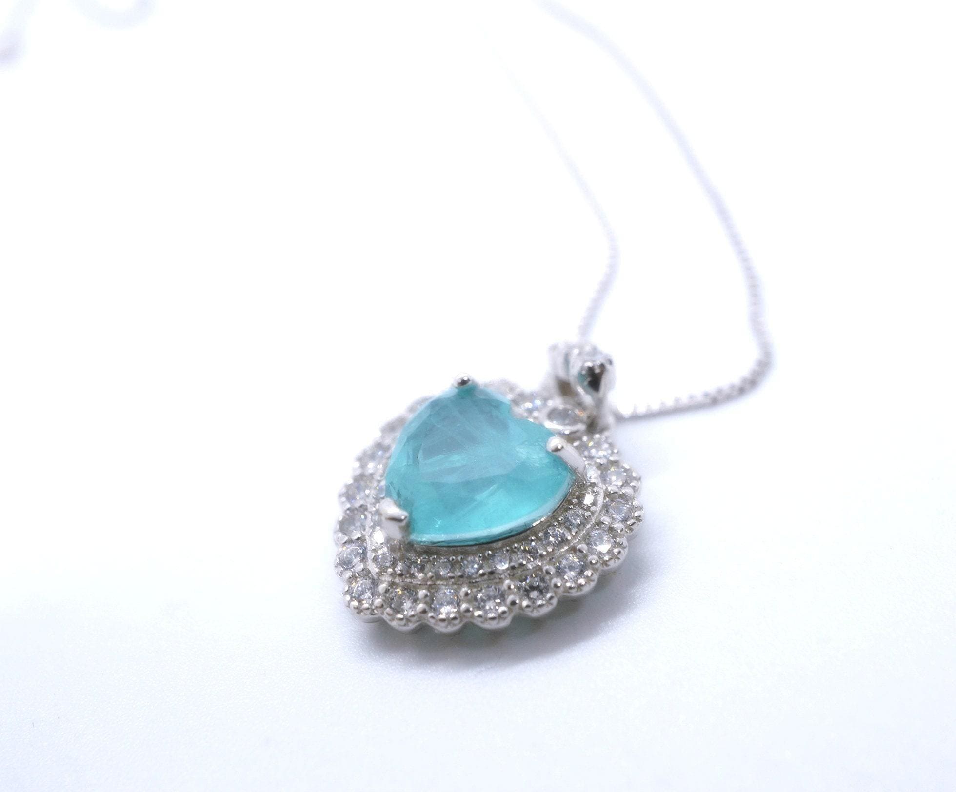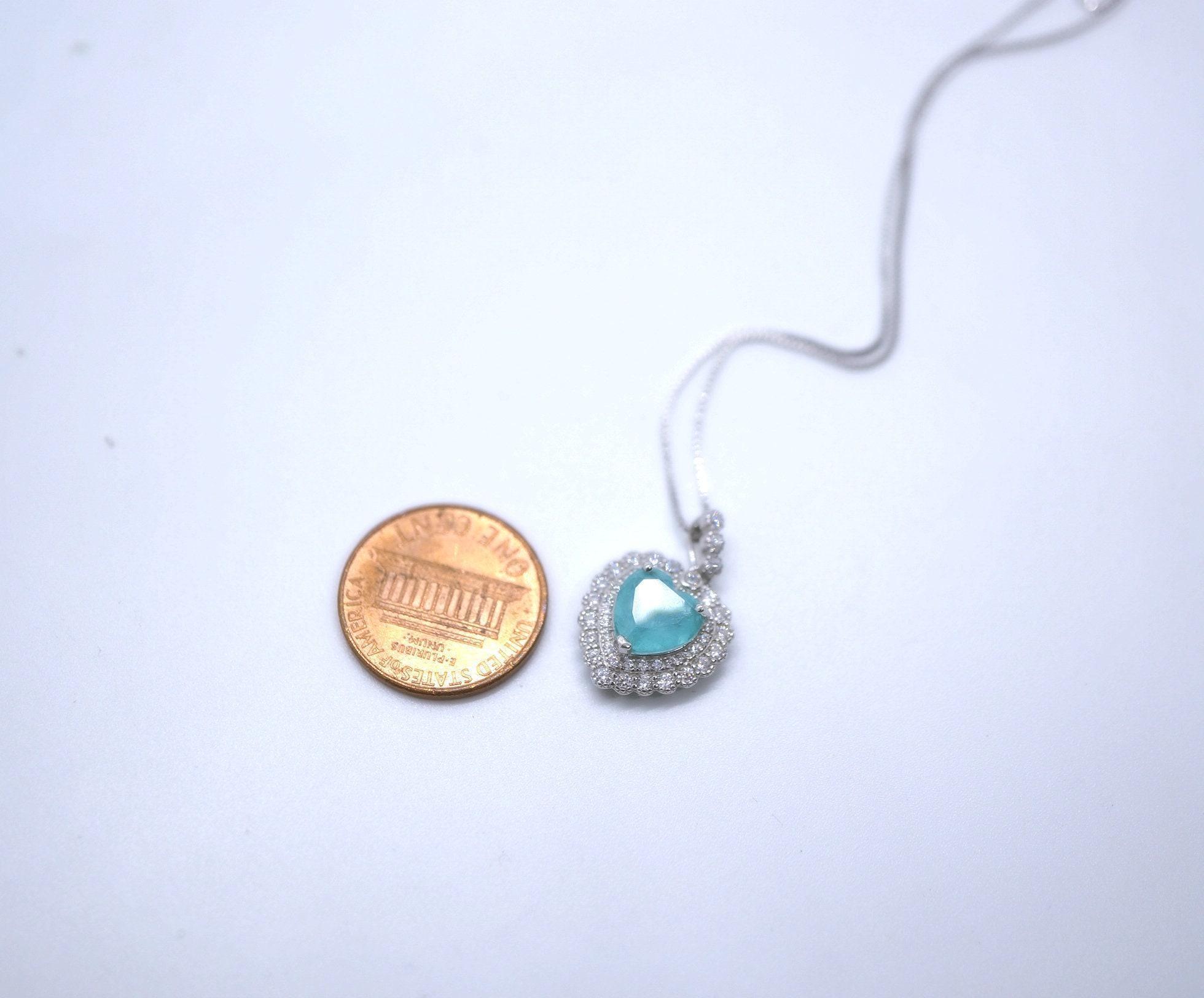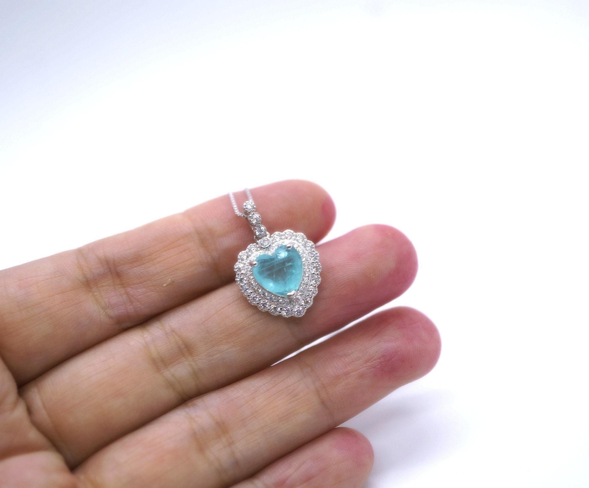 Double Halo Diamond Heart blue Paraiba Tourmaline jewelry