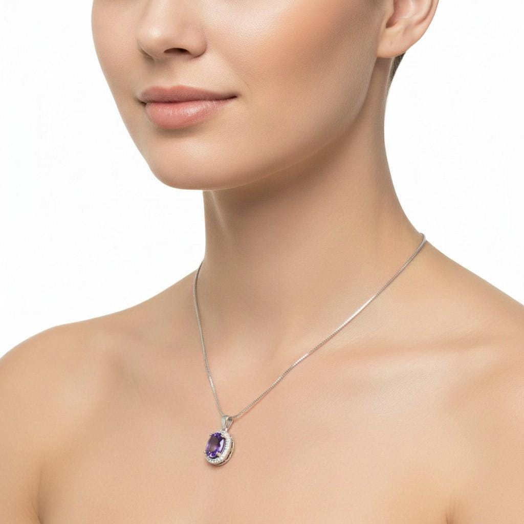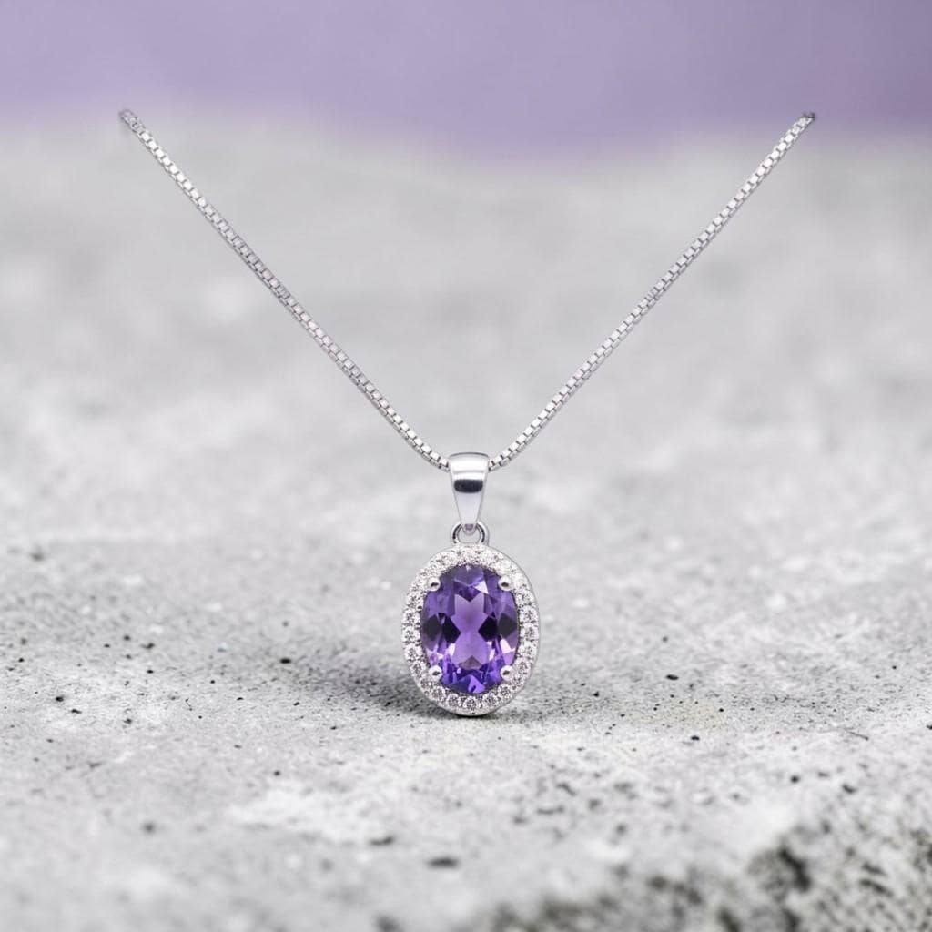 Dainty Halo Ametyst Jewelry High Quality unique Artisan design full sterling silver made
