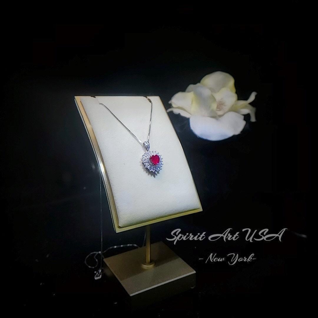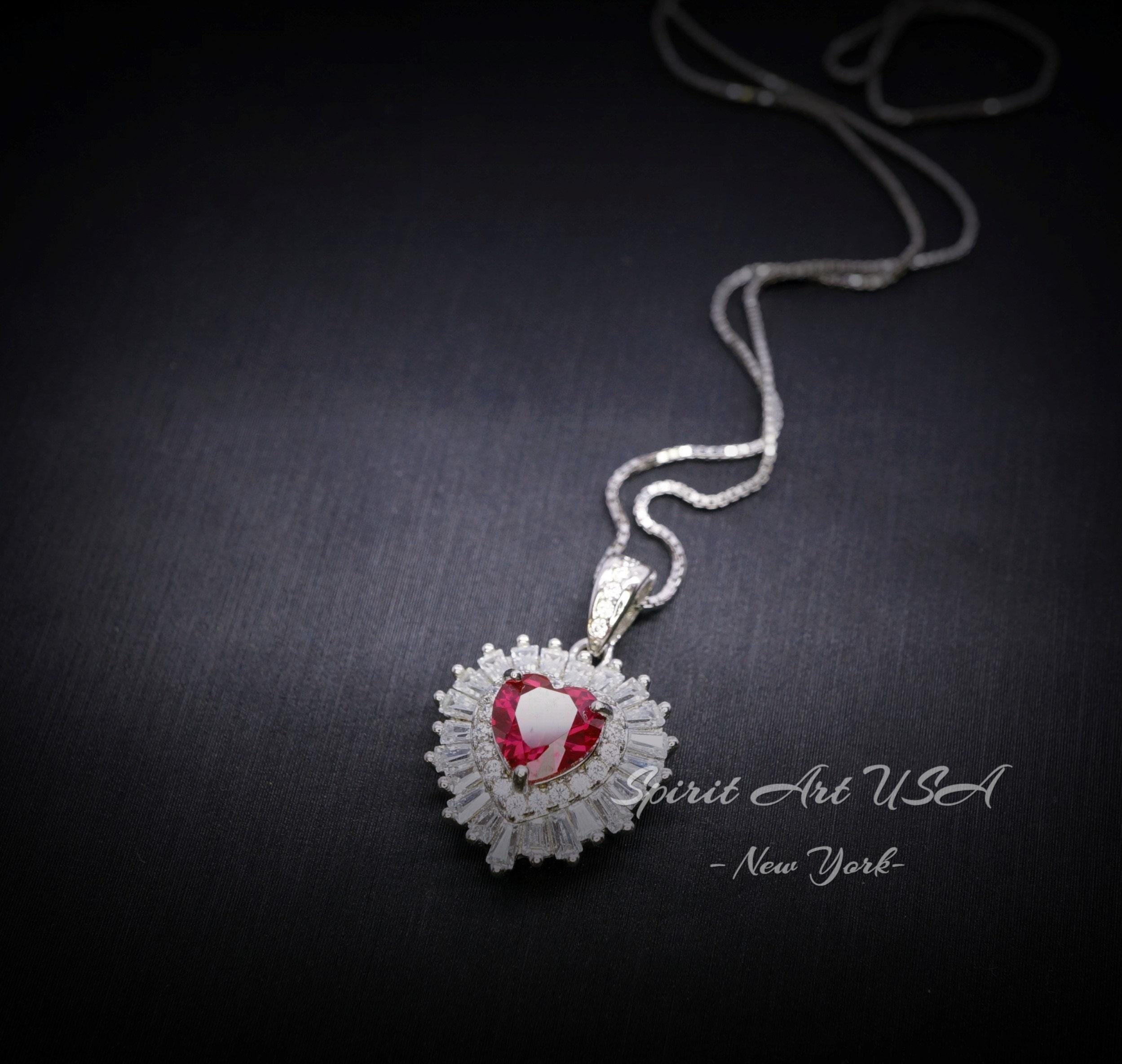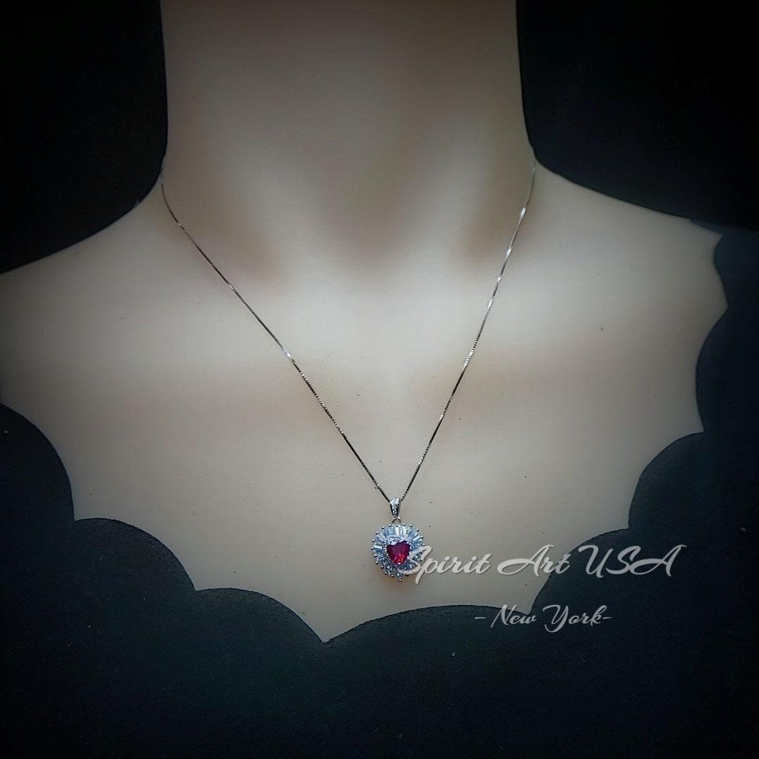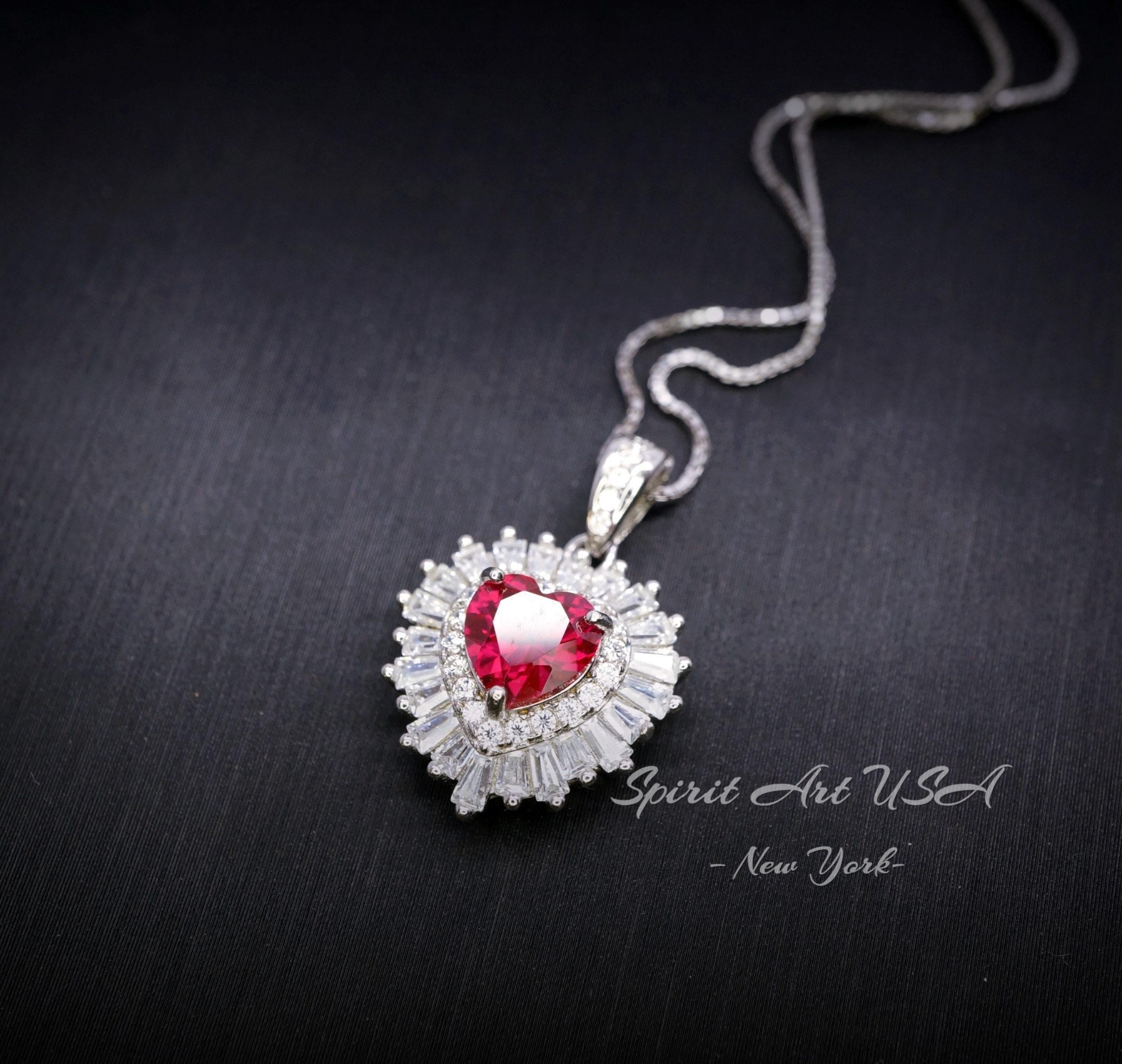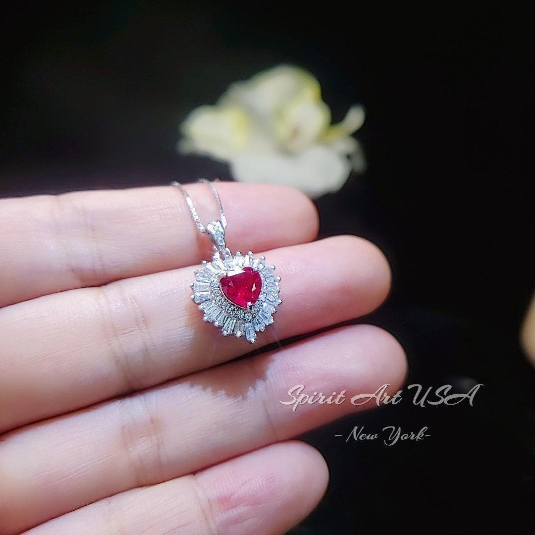 Tiny Red Ruby Jewelry Minimalist Double halo Heart Style