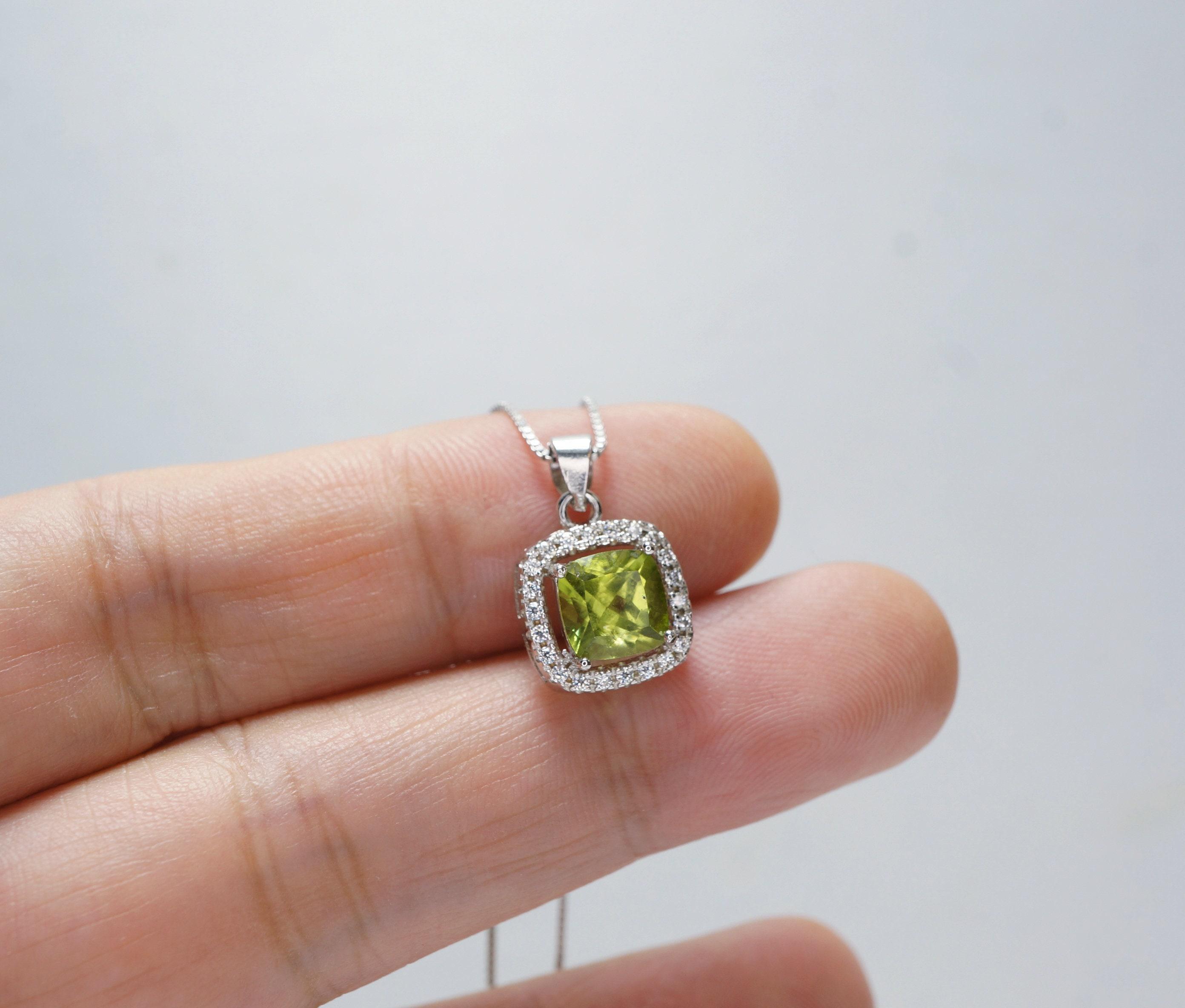 Discover the exquisite charm of our Tiny Square Peridot Necklace, an artisan-designed piece crafted from high-quality 925 sterling silver. This stunning necklace features a genuine 6mm green peridot gemstone, renowned for its vibrant hue and striking beauty. The pendant, including the sleek bail, measures 15mm, making it a perfect dainty accessory for everyday wear or special occasions.