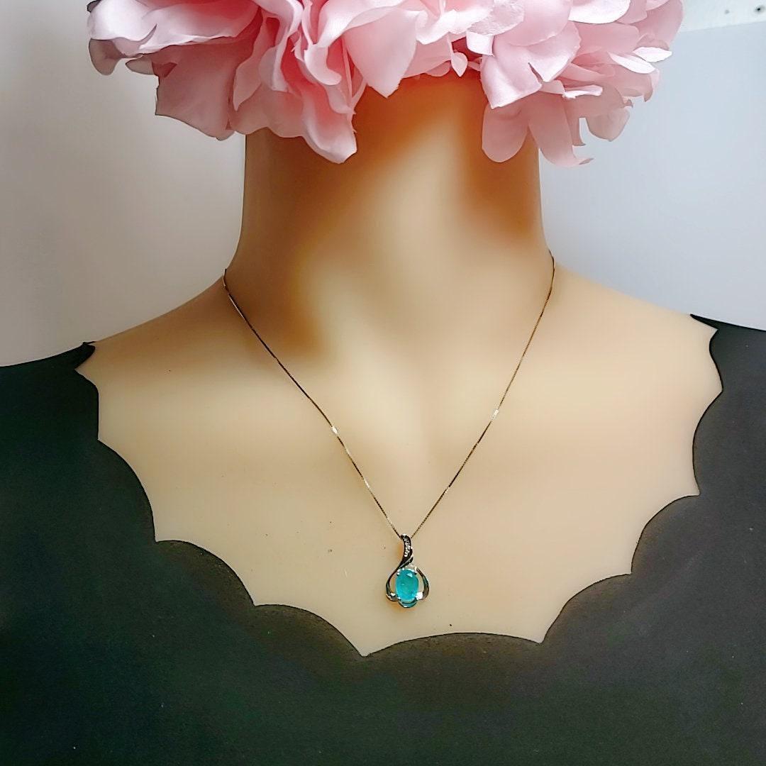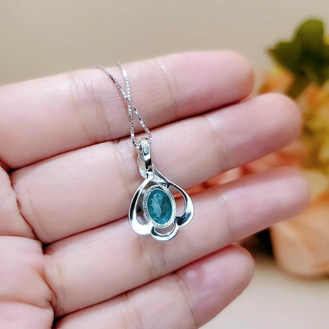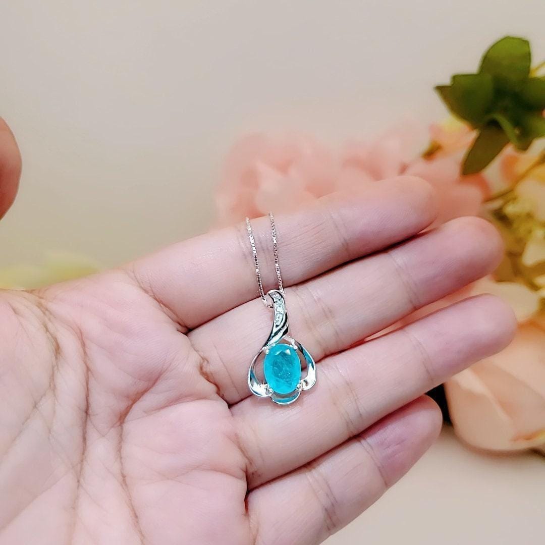 This is a lovely little pendant. The neon blue stone is beautiful and the silver around is beautiful