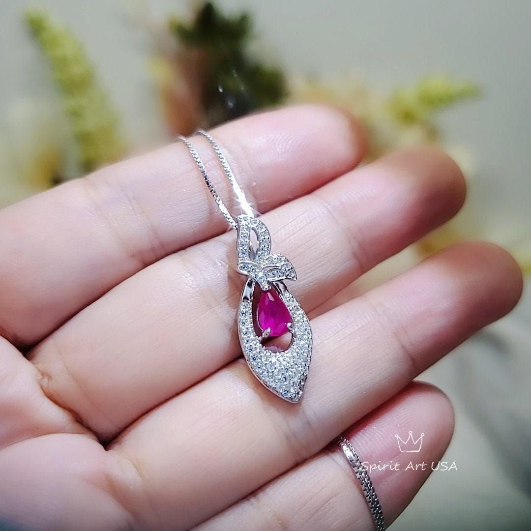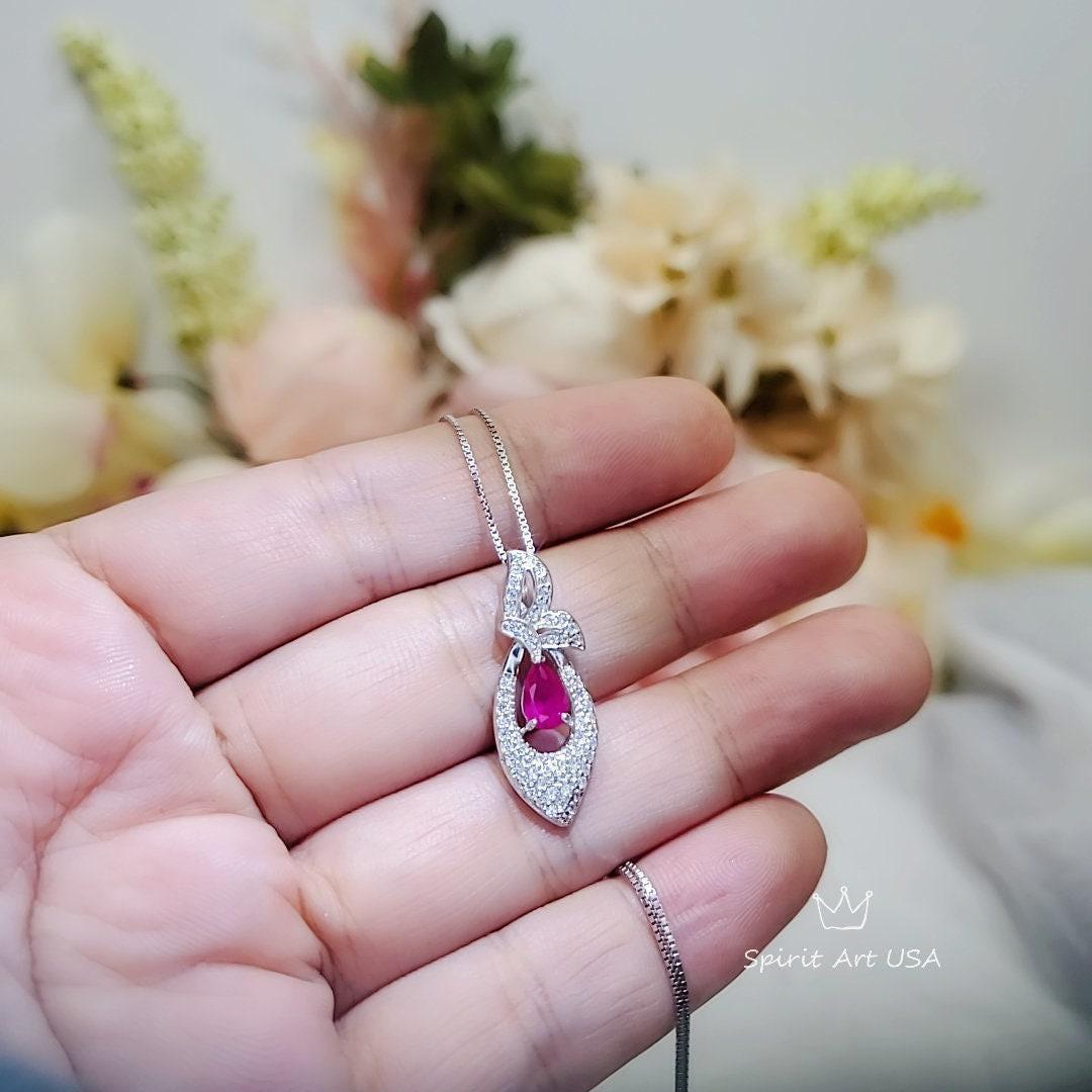Tiny Ruby Gemstone Jewelry Minimalist butterfly style with pear cut